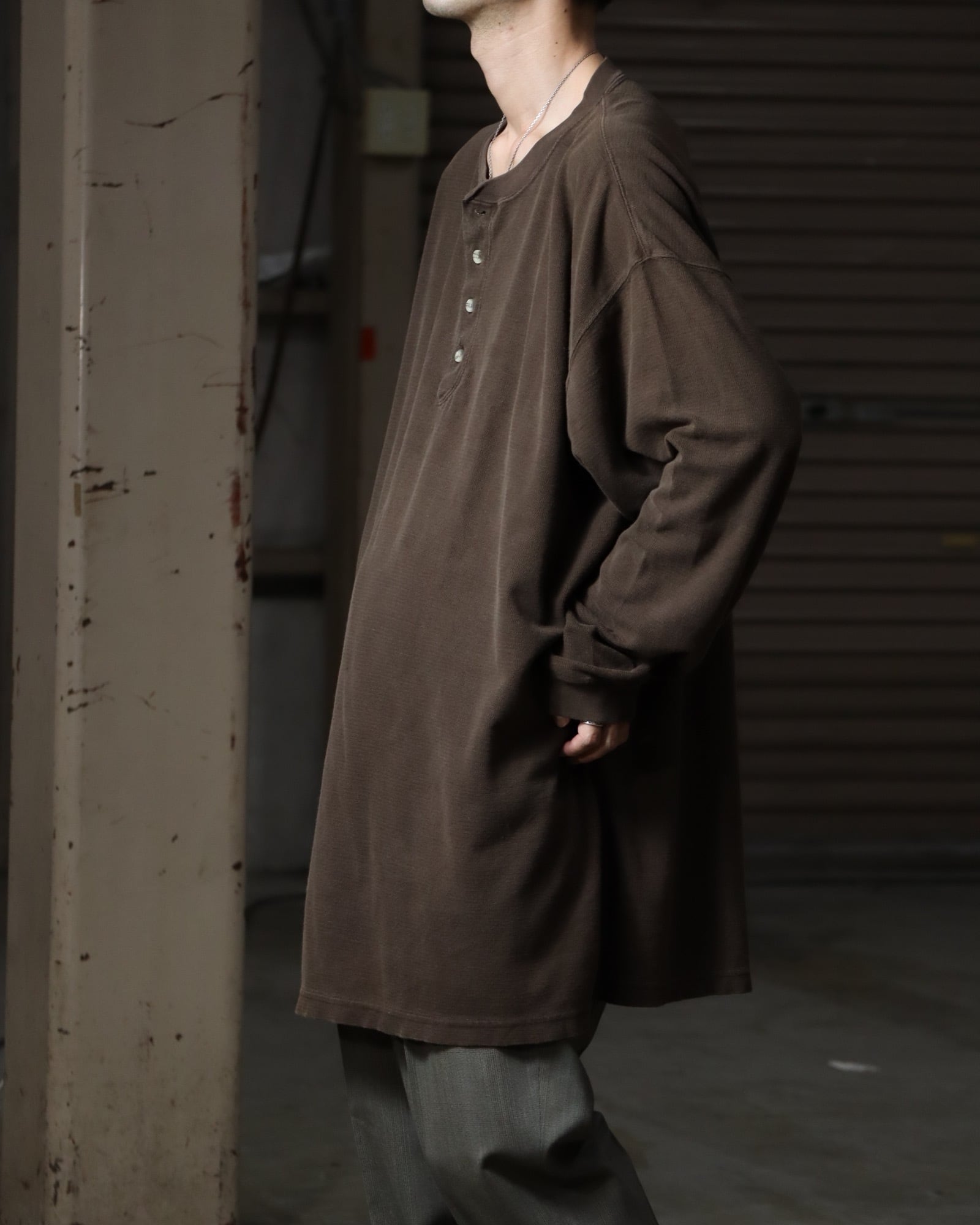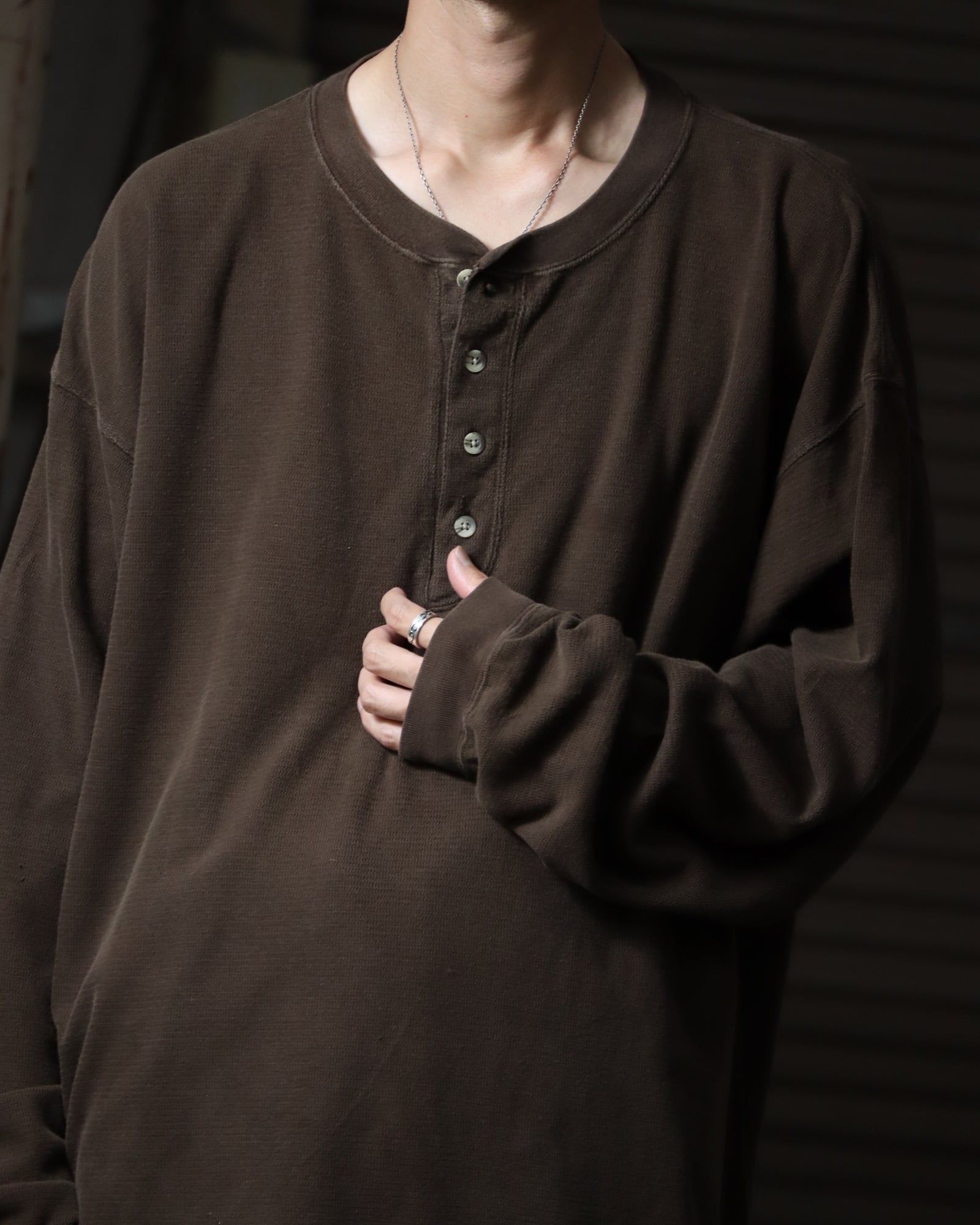 ▼Item / henry-neck super oversized l/s thermal top brown