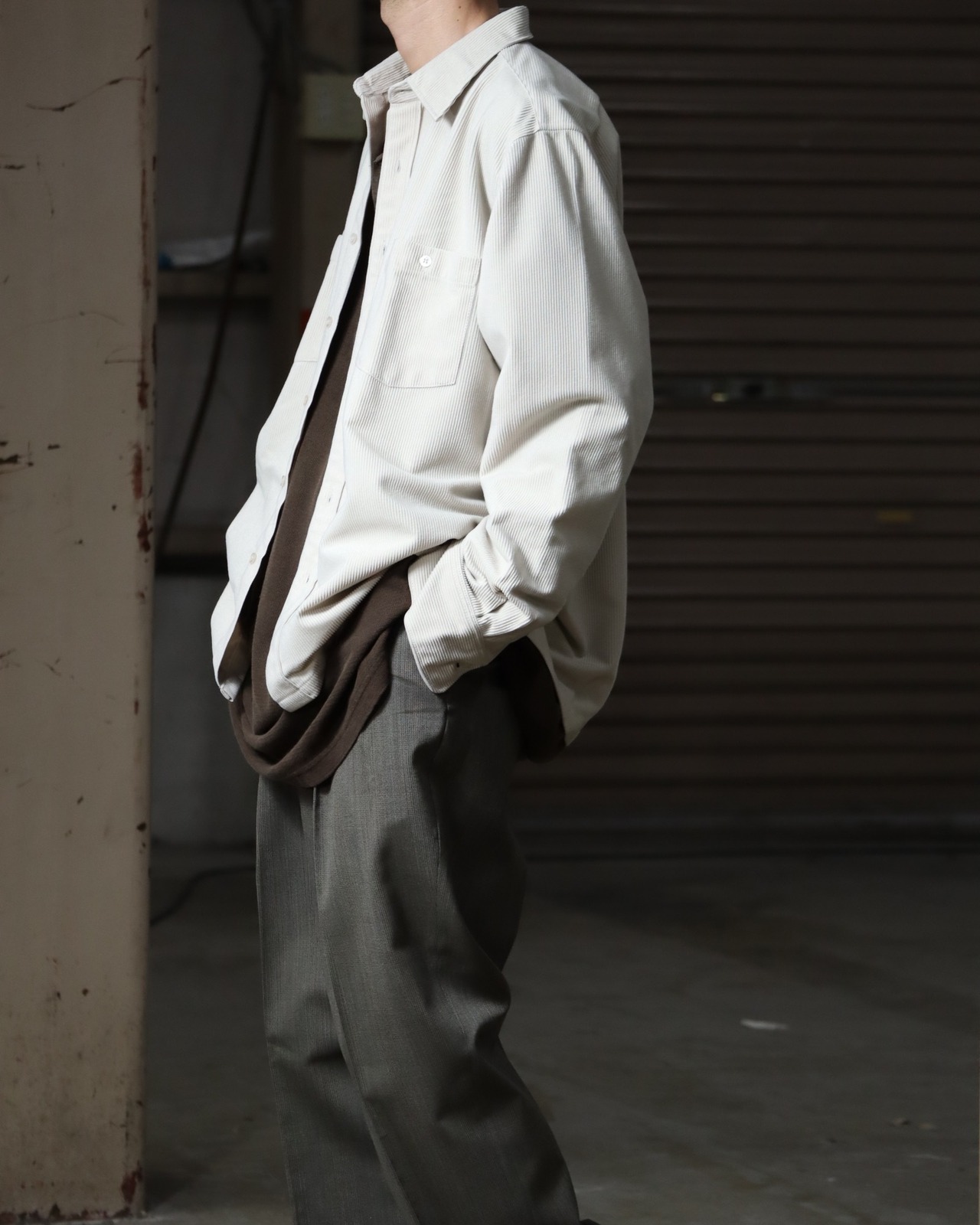 ▼Item / écru color chunky corduroy double pocket l/s shirt