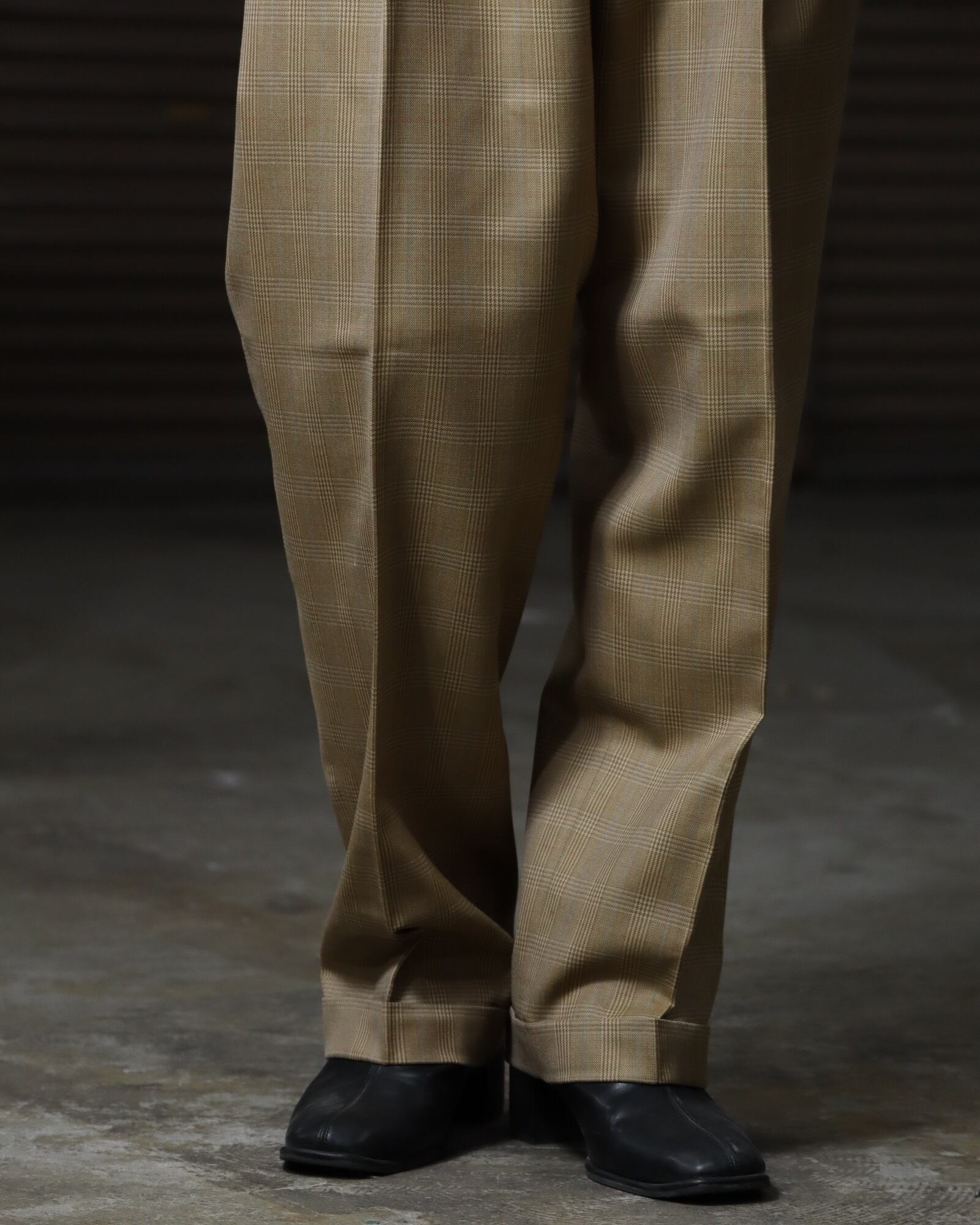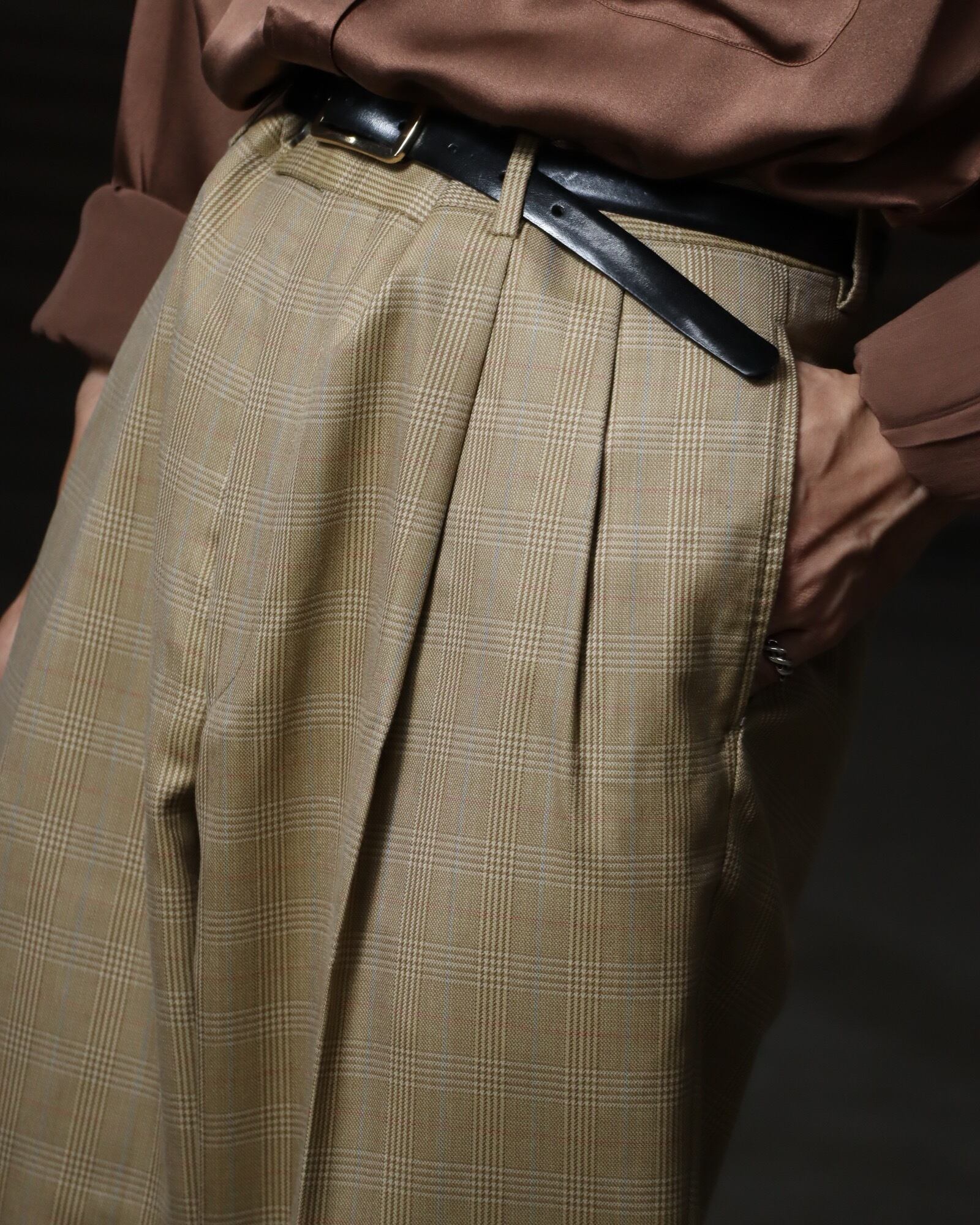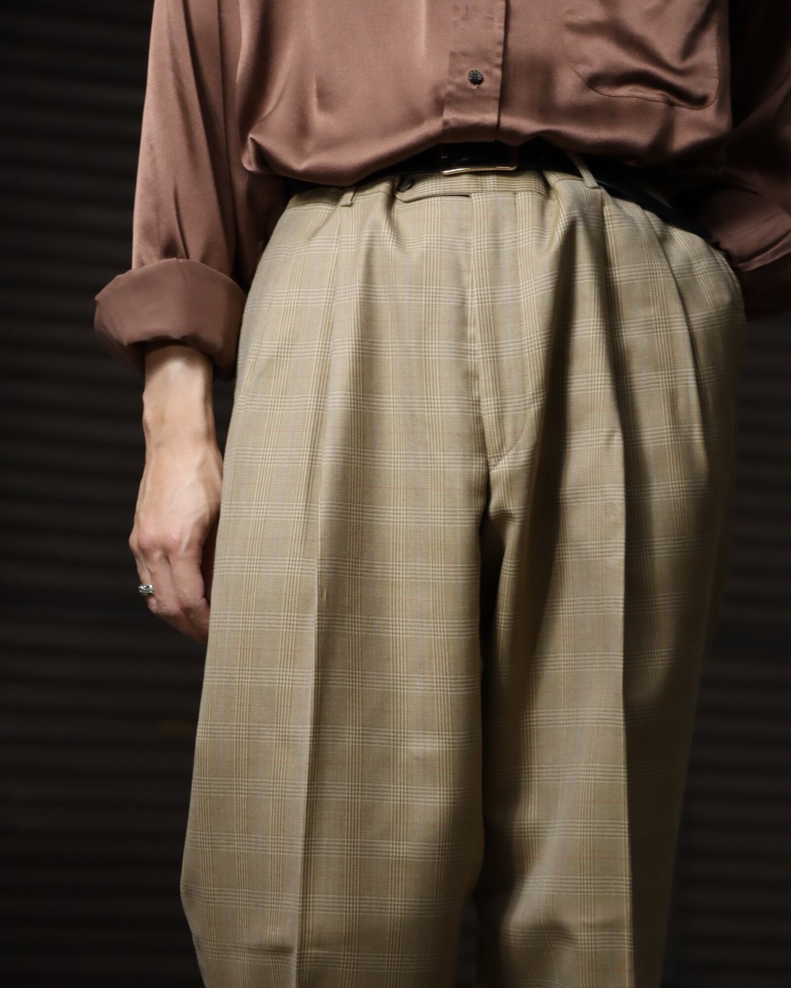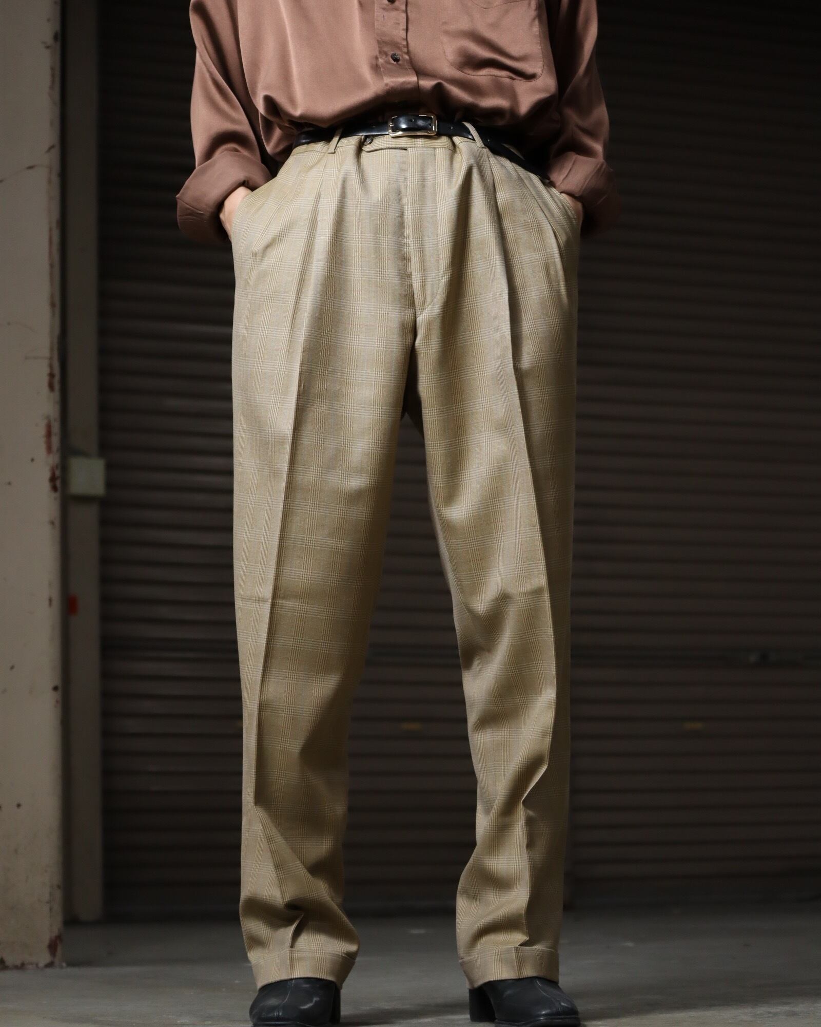 ▼Item / 1990s plaid 2tuck wide-straight wool slacks