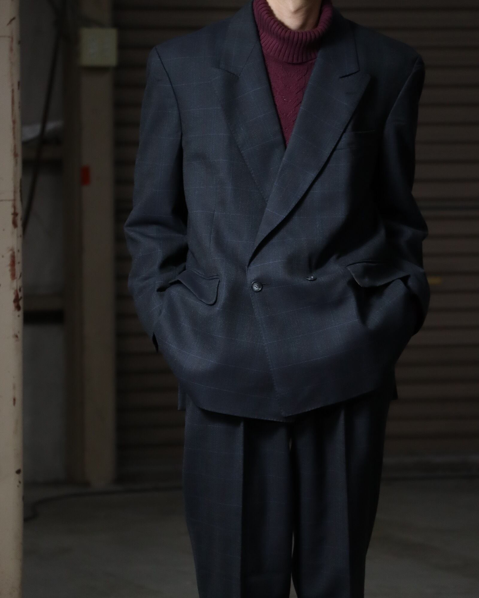 1990s- Euro, 2pieces set up made in France, double × 2tuck / virgin wool