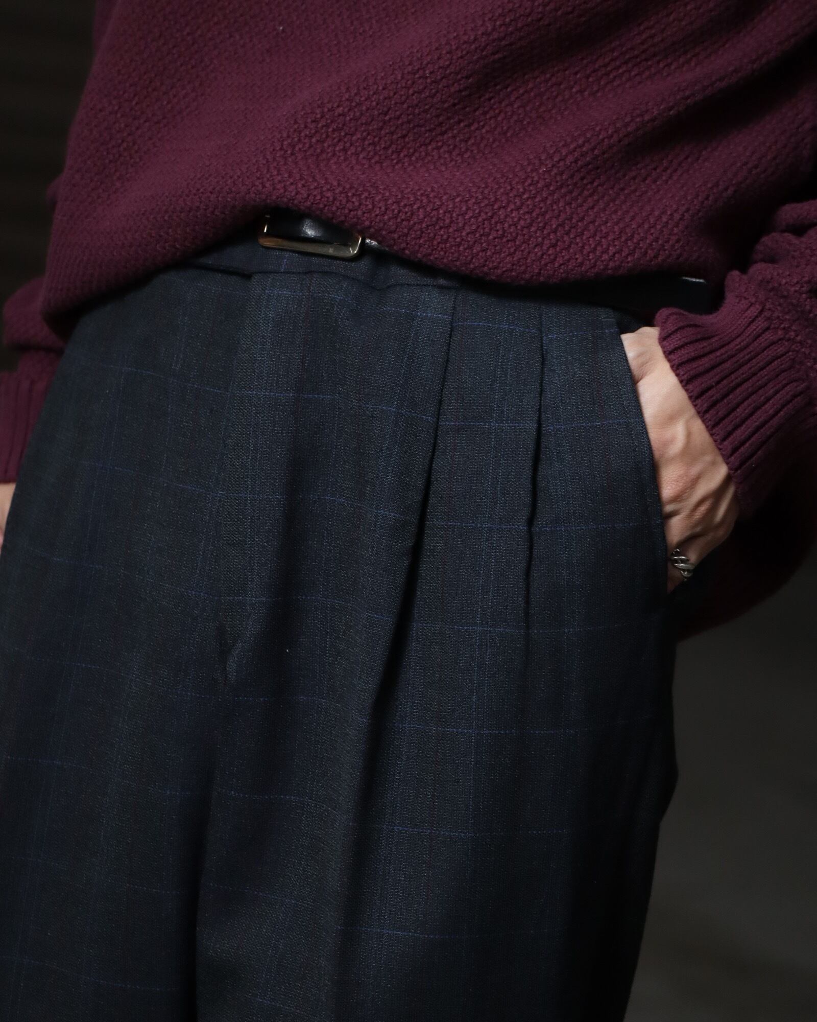 ▼Item / 1990s- Euro, 2pieces set up made in France, double × 2tuck / virgin wool