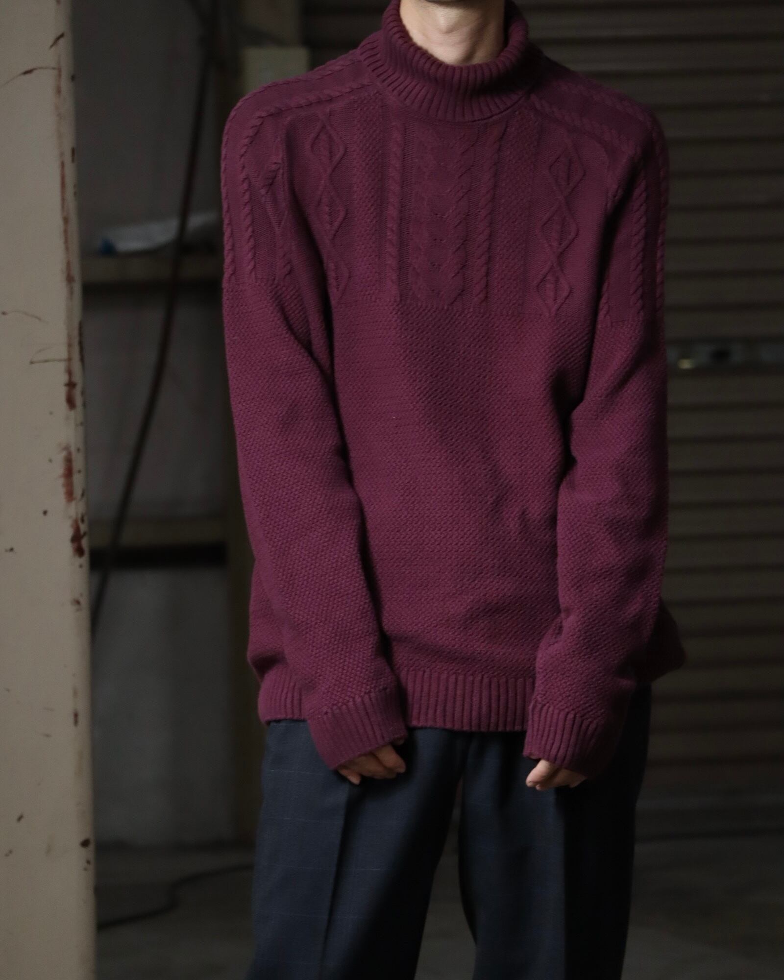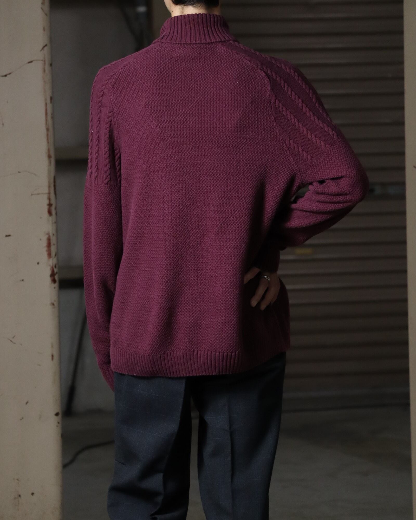 turtleneck × raglan sleeve cotton cable knit sweater