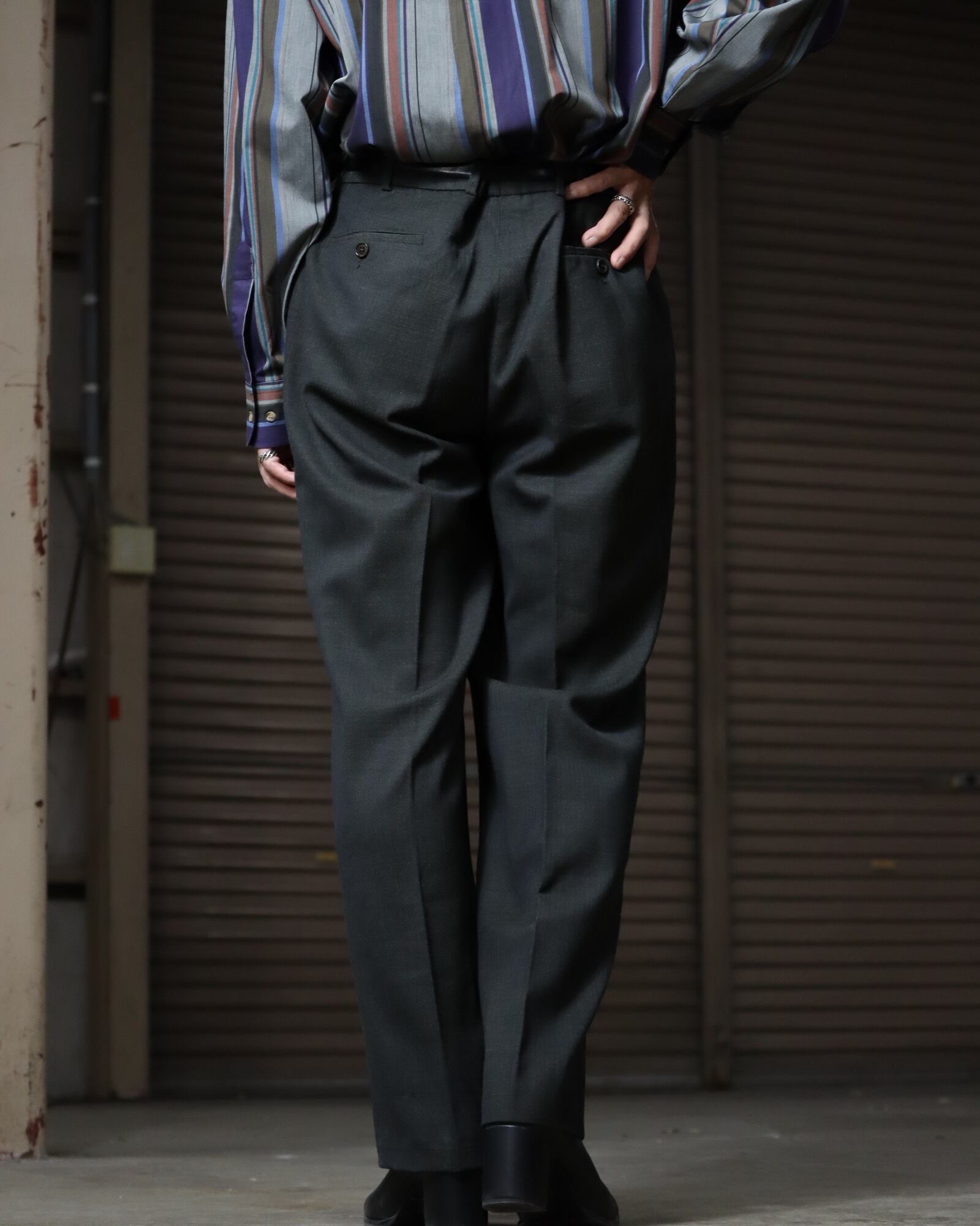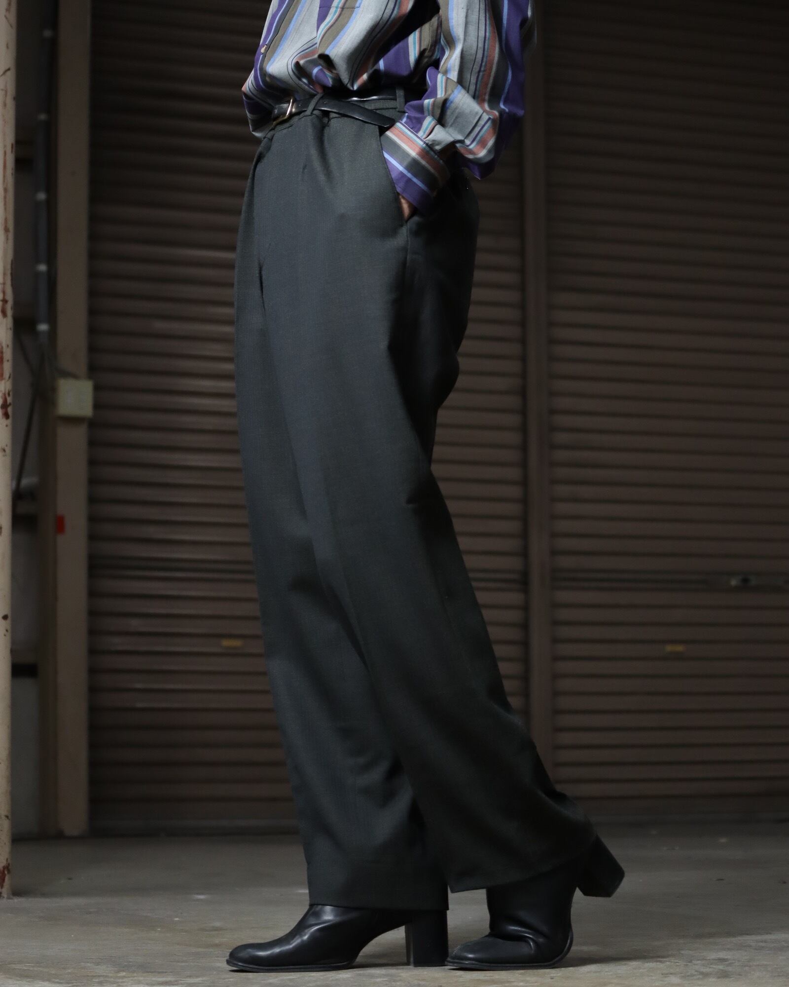 ▼Item / herringbone wide-straight wool blend slacks charcoal