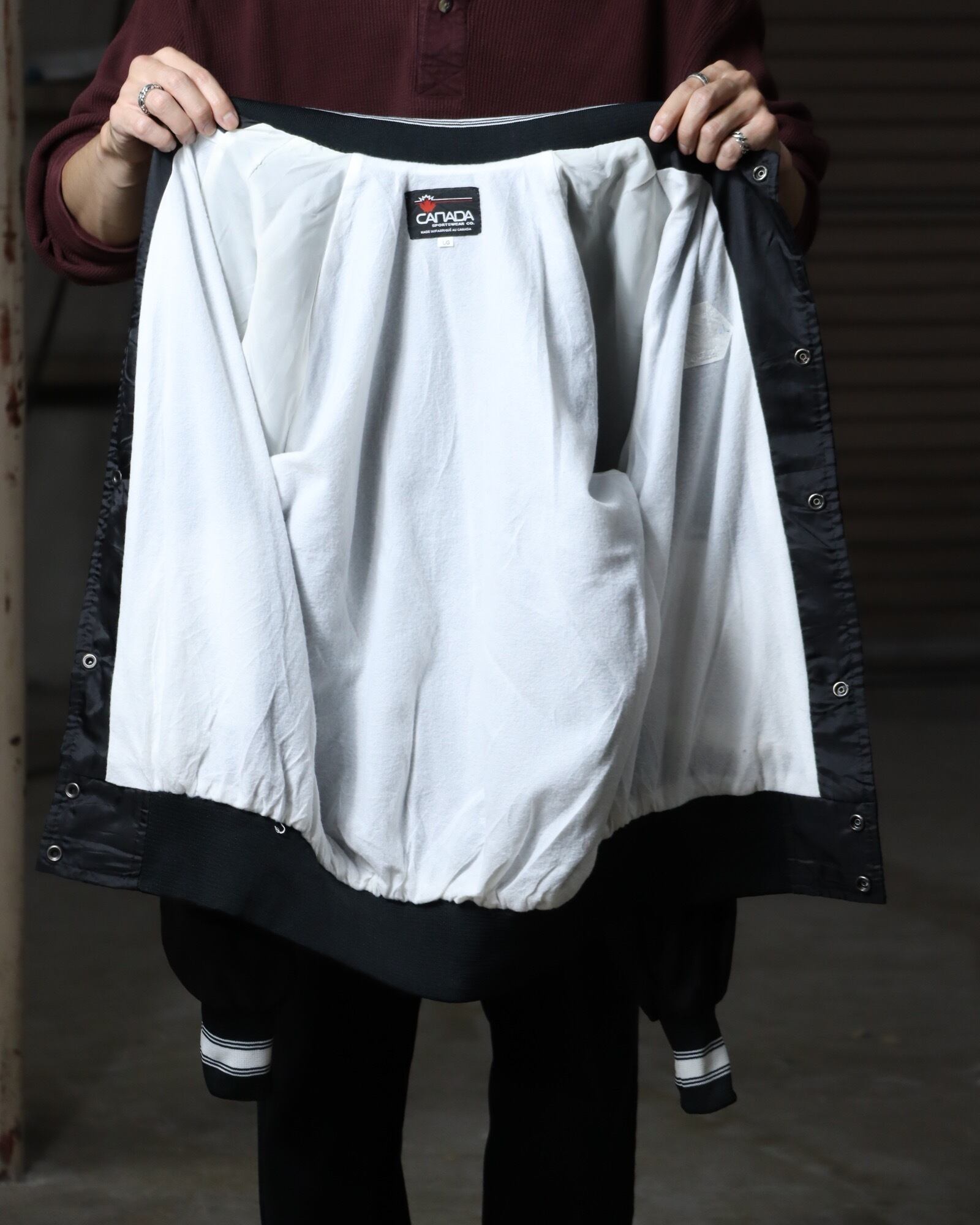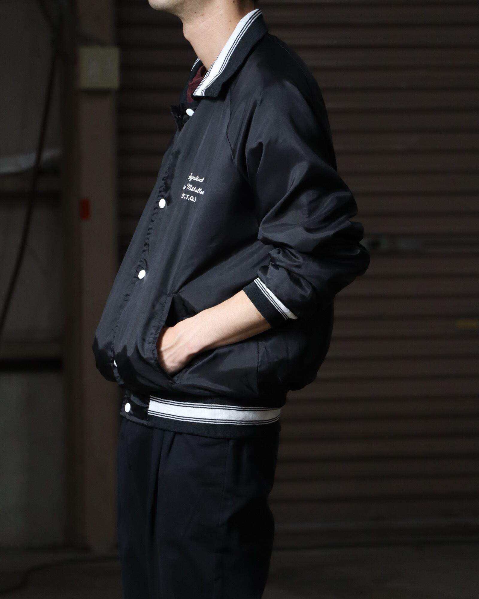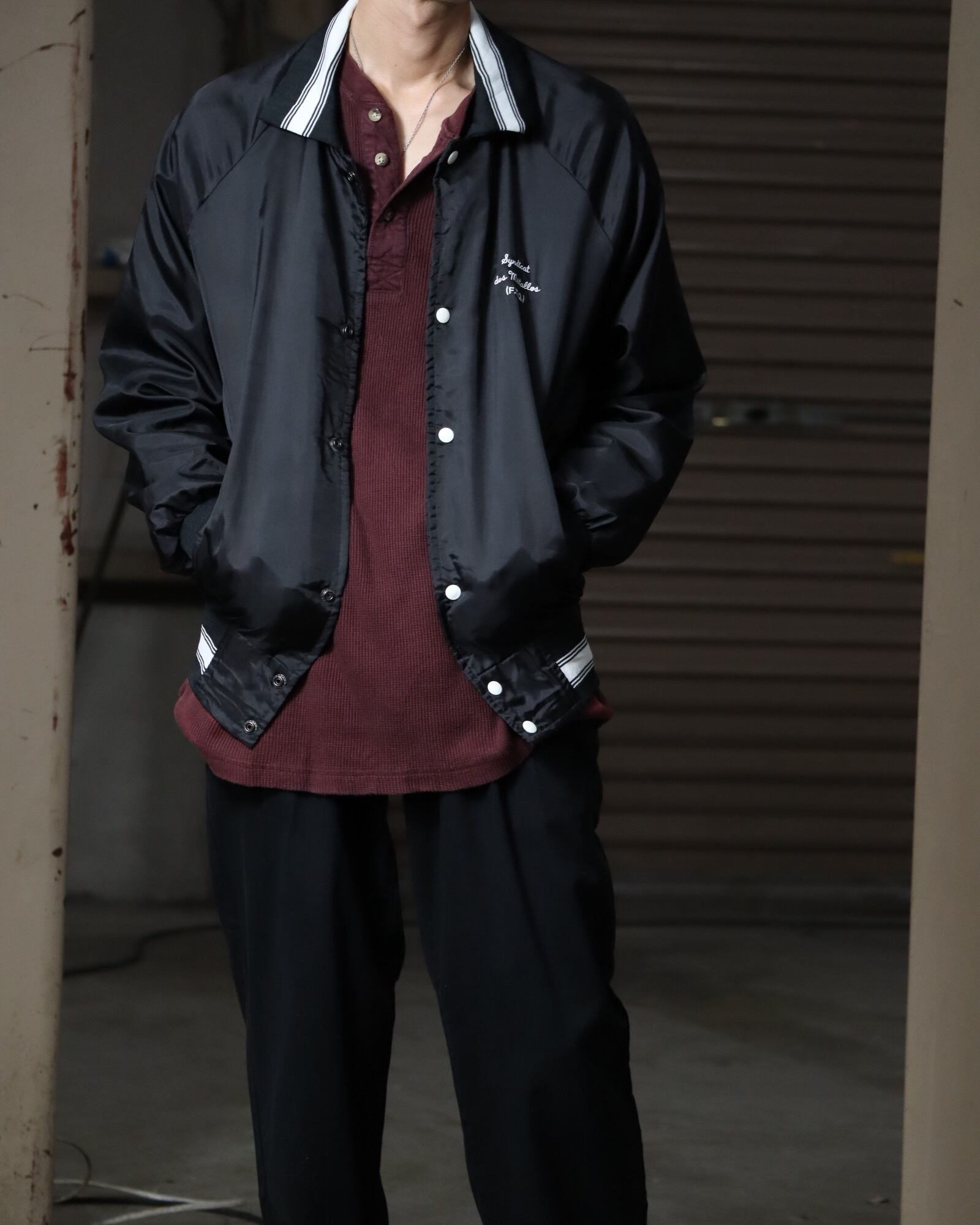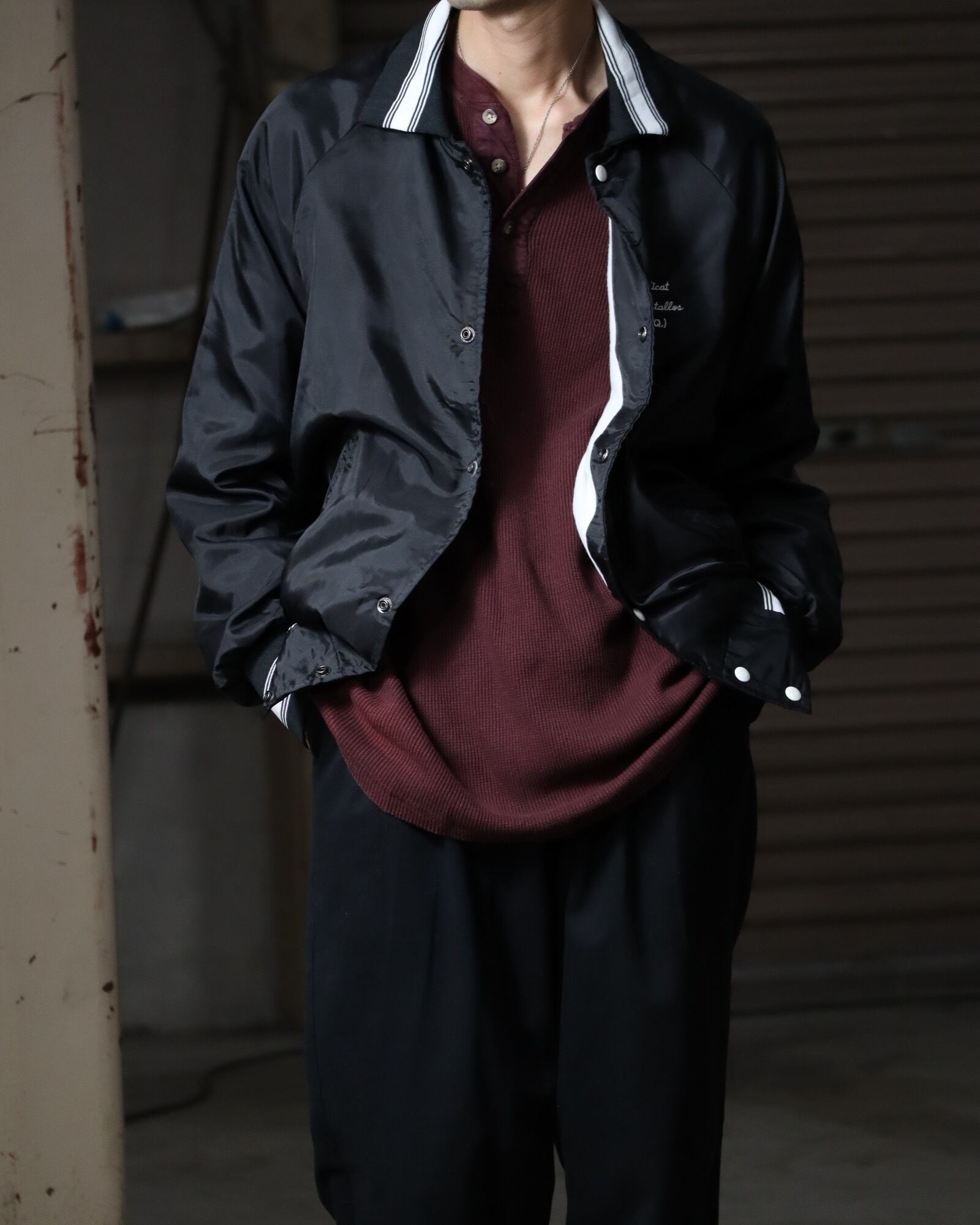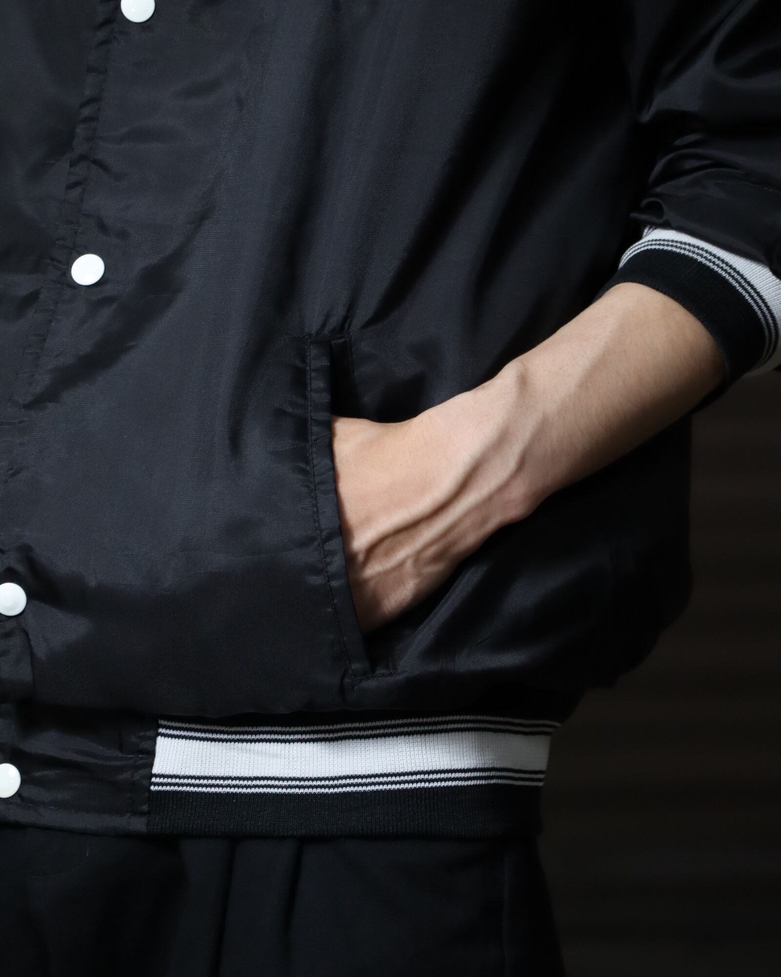 ▽Detail / 襟・袖・裾リブ、ボタンフロント、刺繡ロゴ、ラグランスリーブ