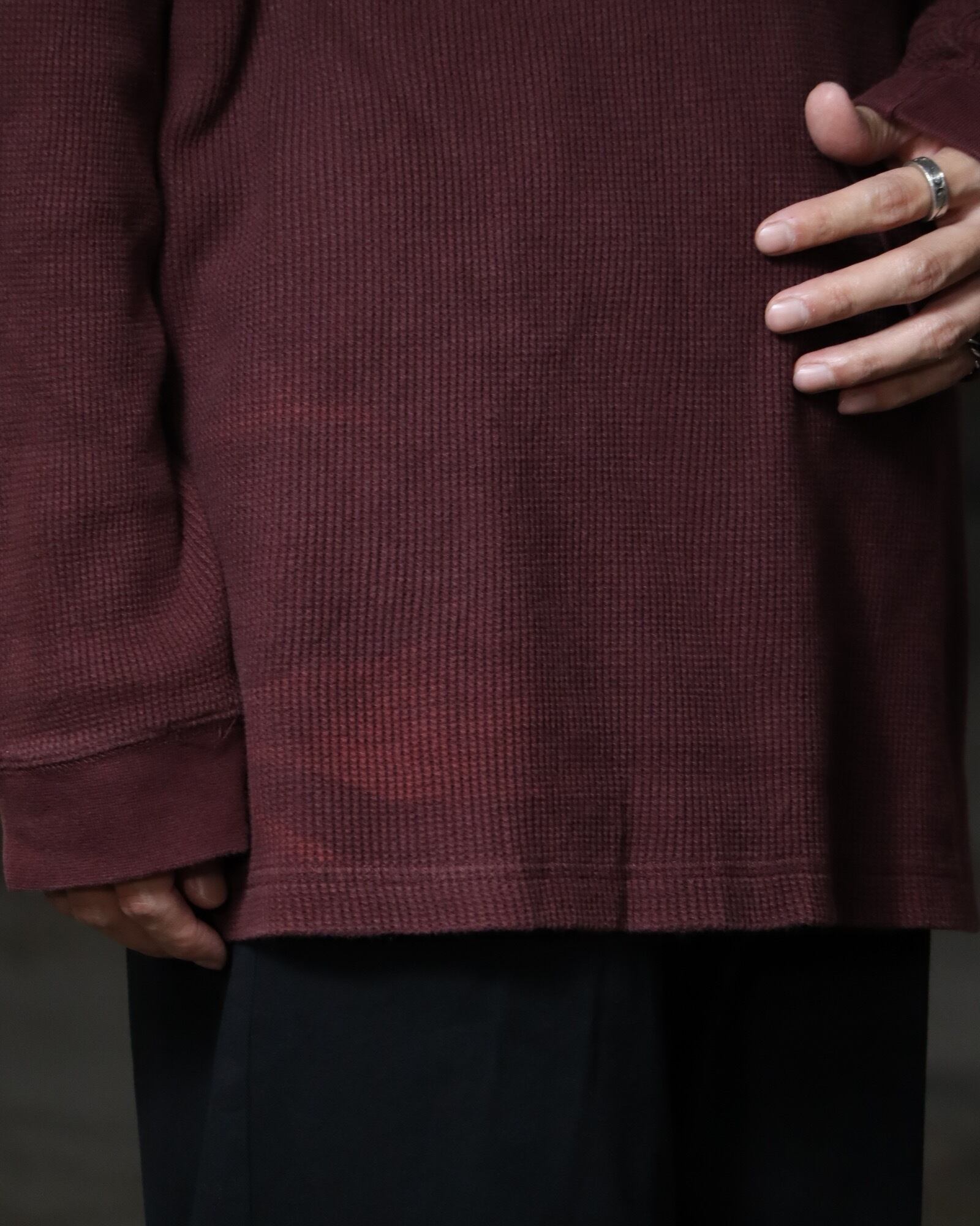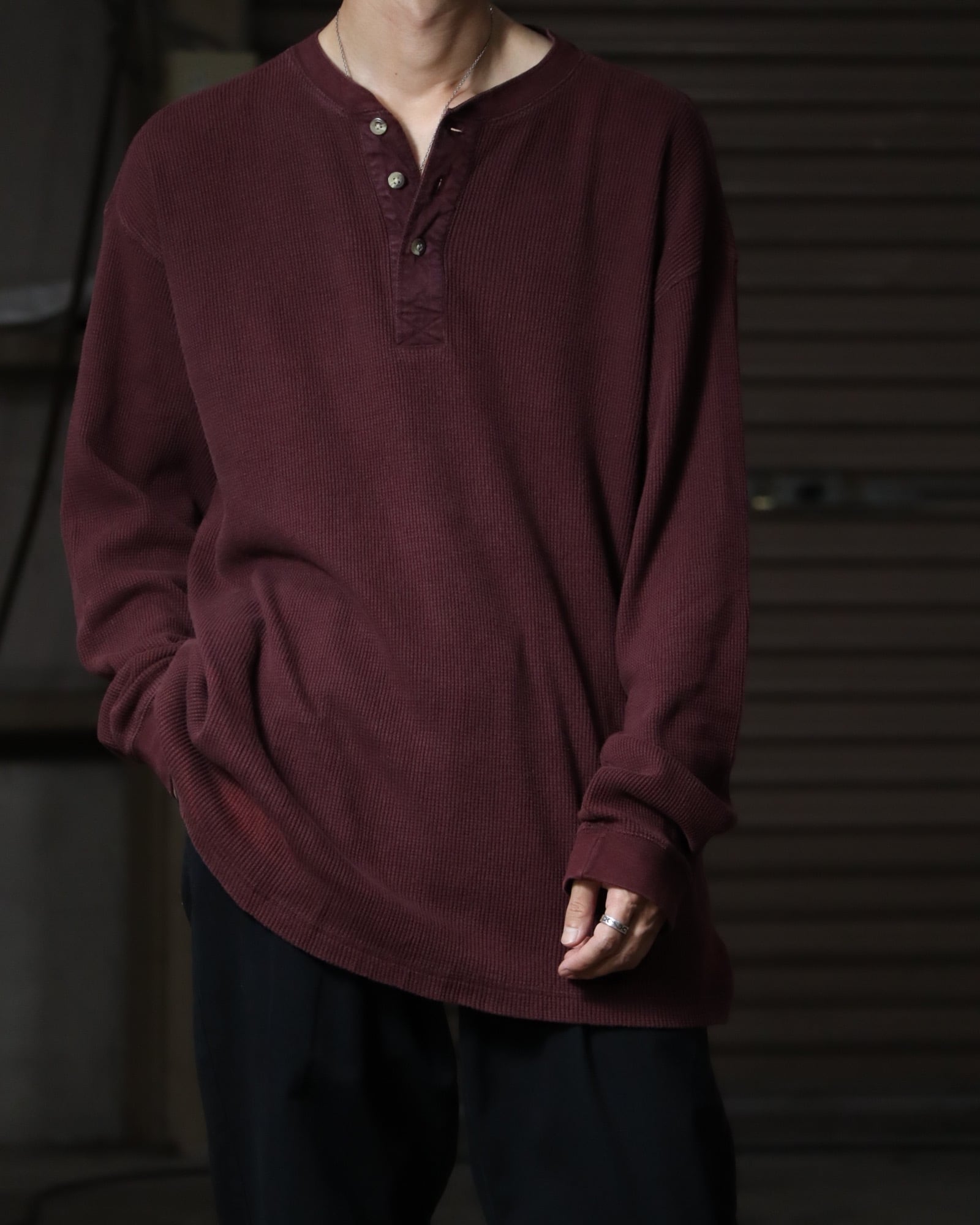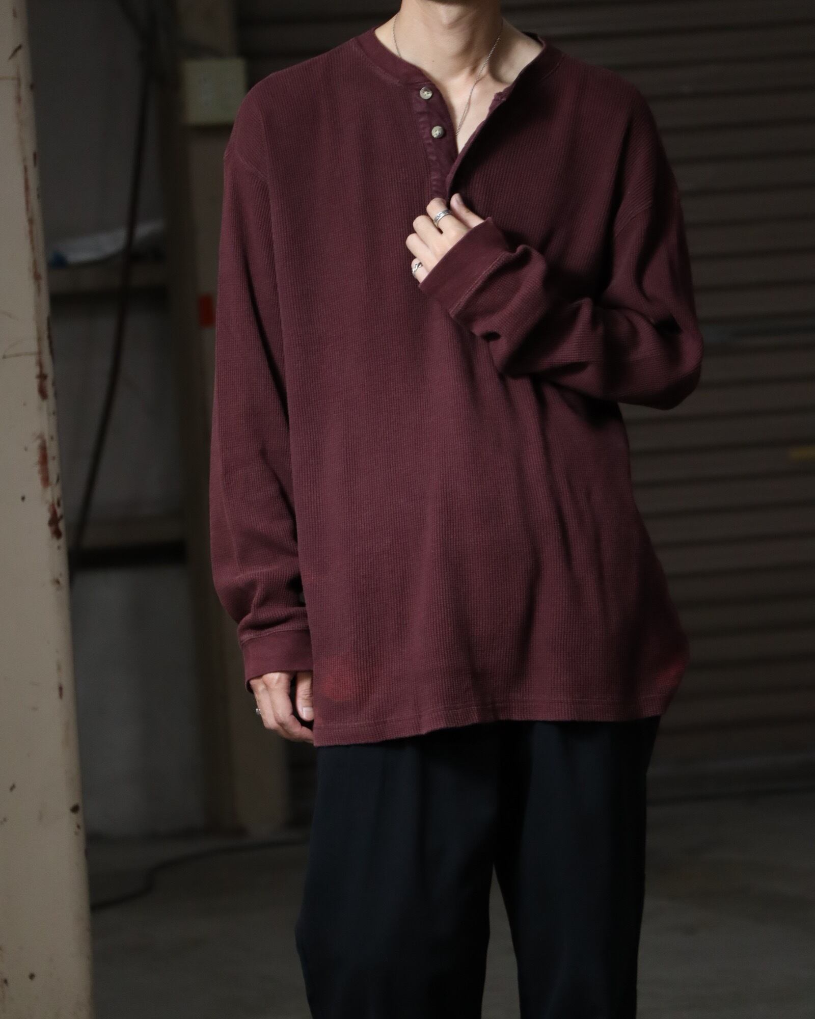 ▼Item / henry-neck oversized l/s ribbed thermal top bordeaux