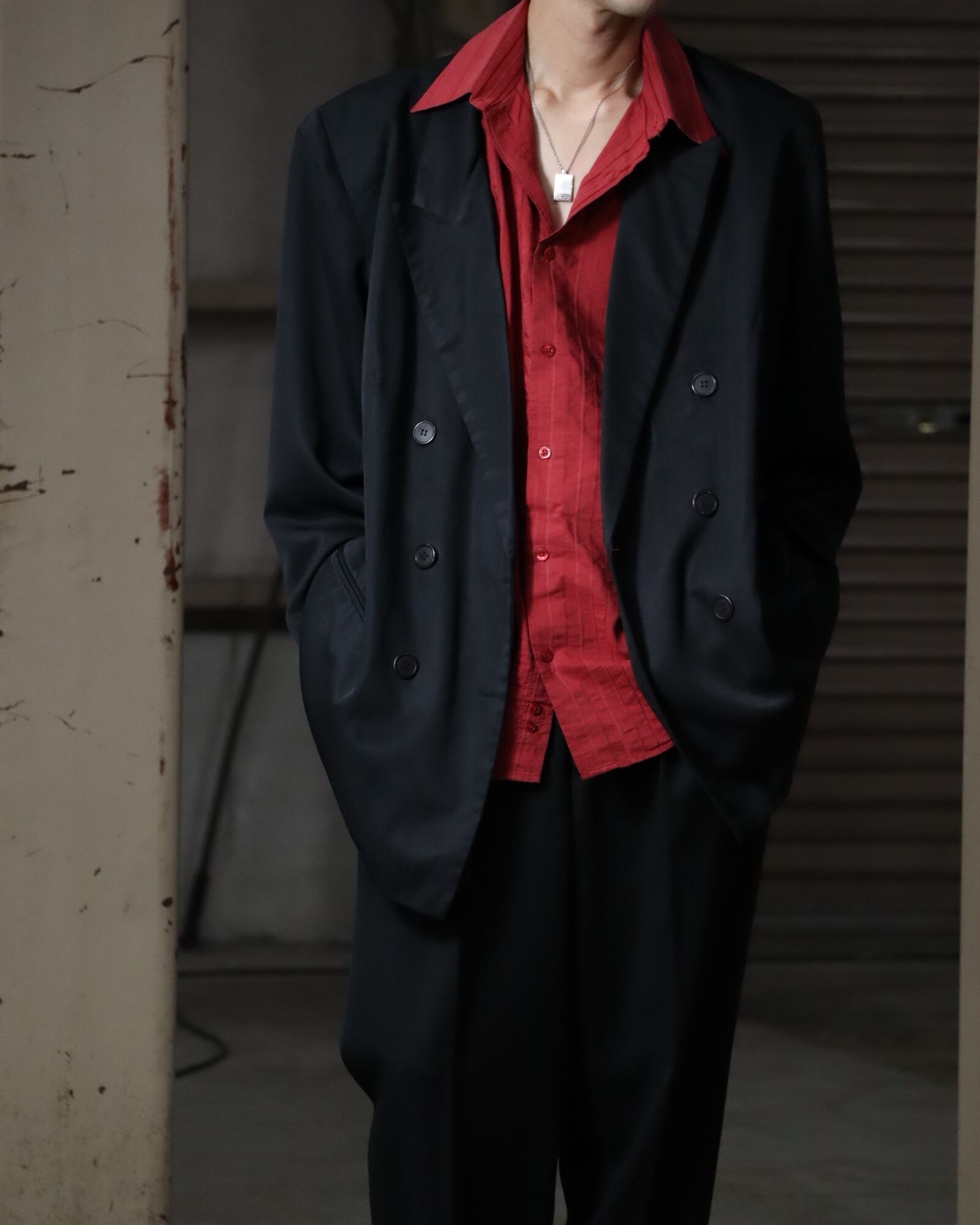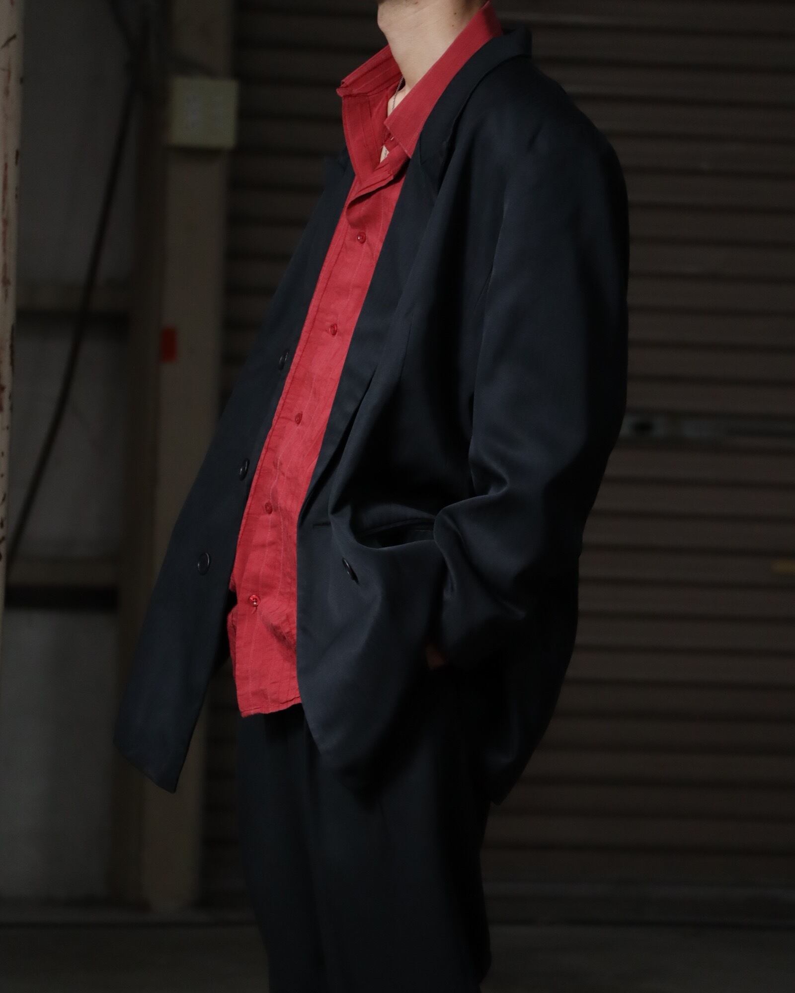 ▼Item / shadow stirpe oversized double breasted tailored jacket black made in USA