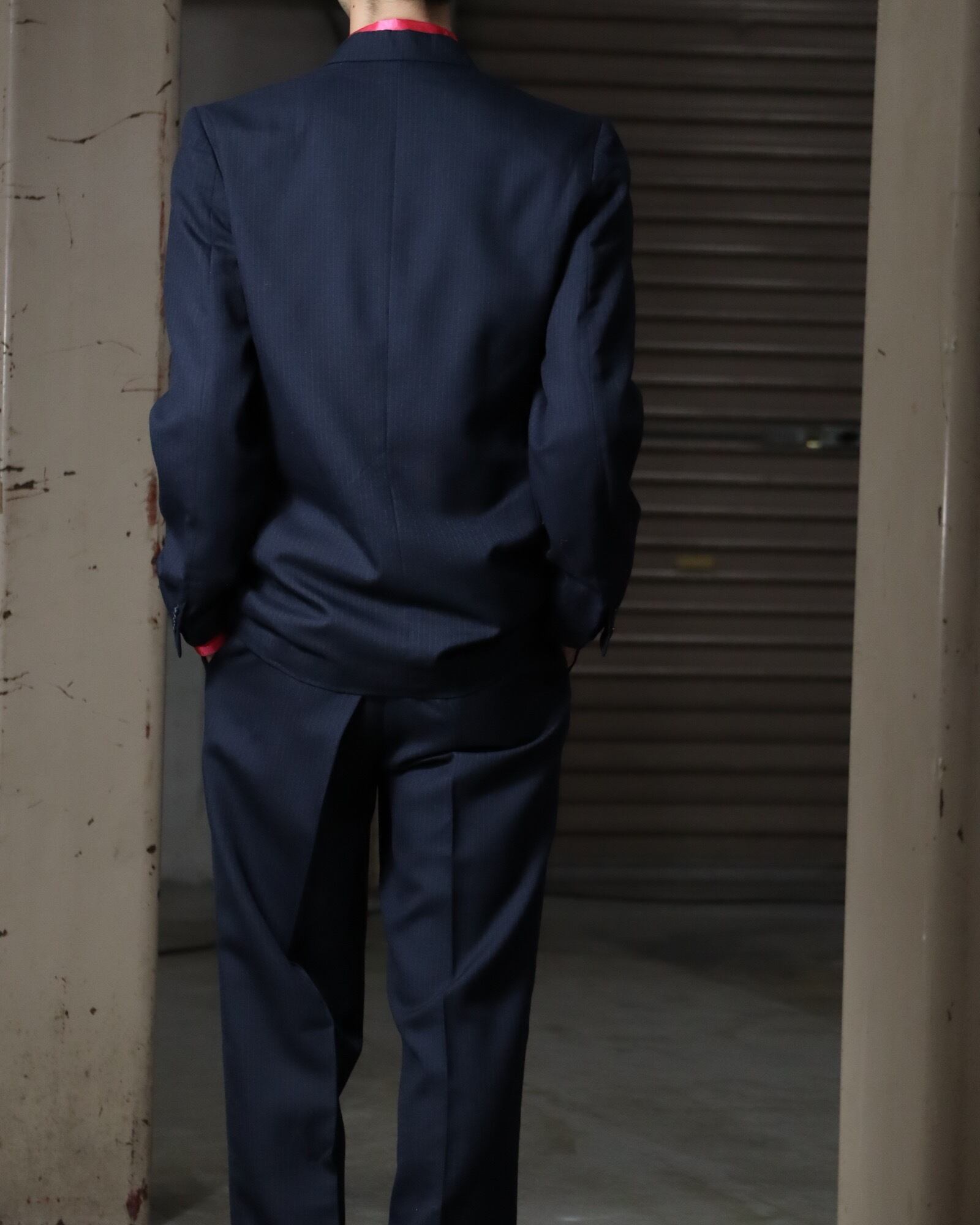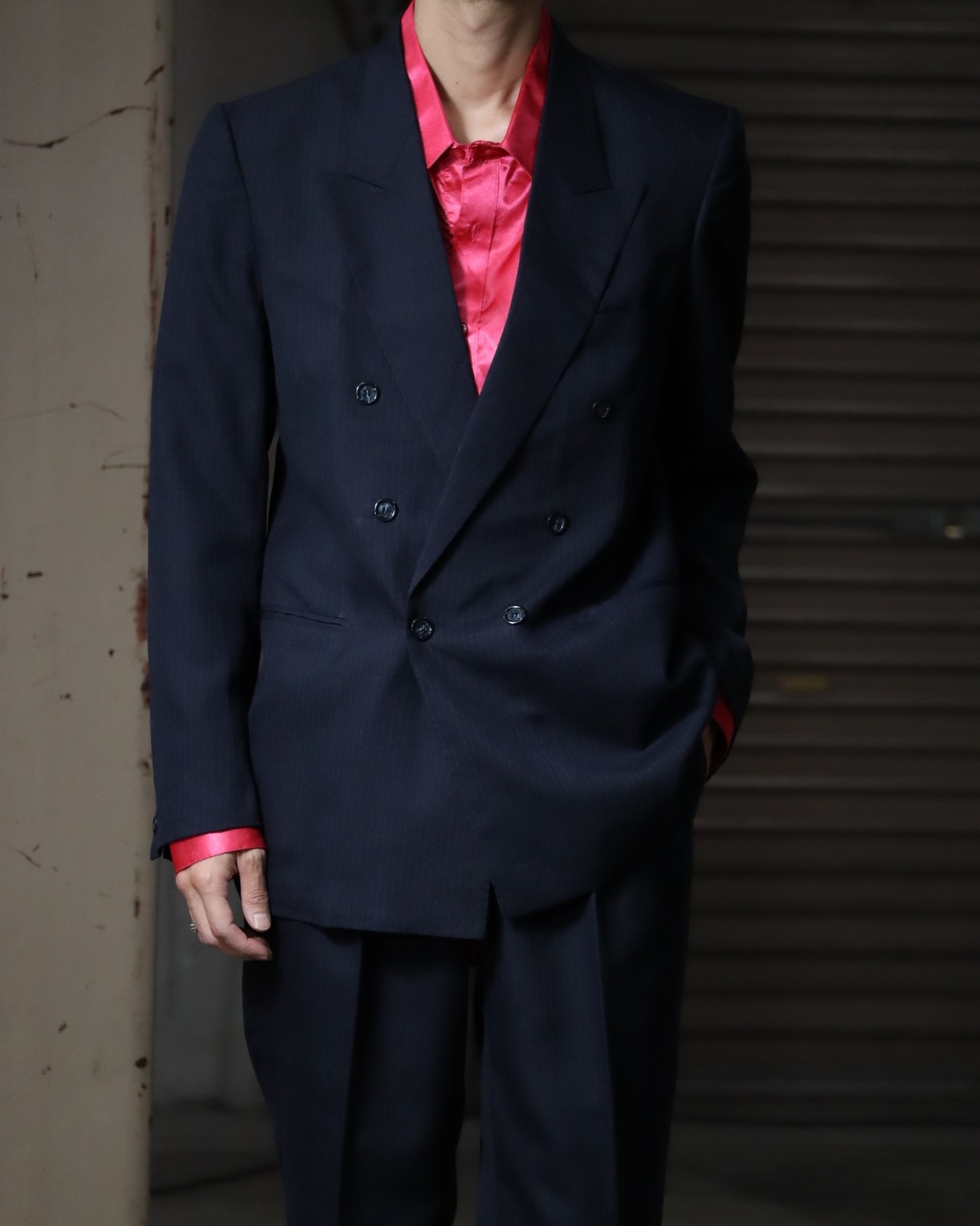 1980s 2pieces set up, pin stripe double breasted × 2tuck slacks