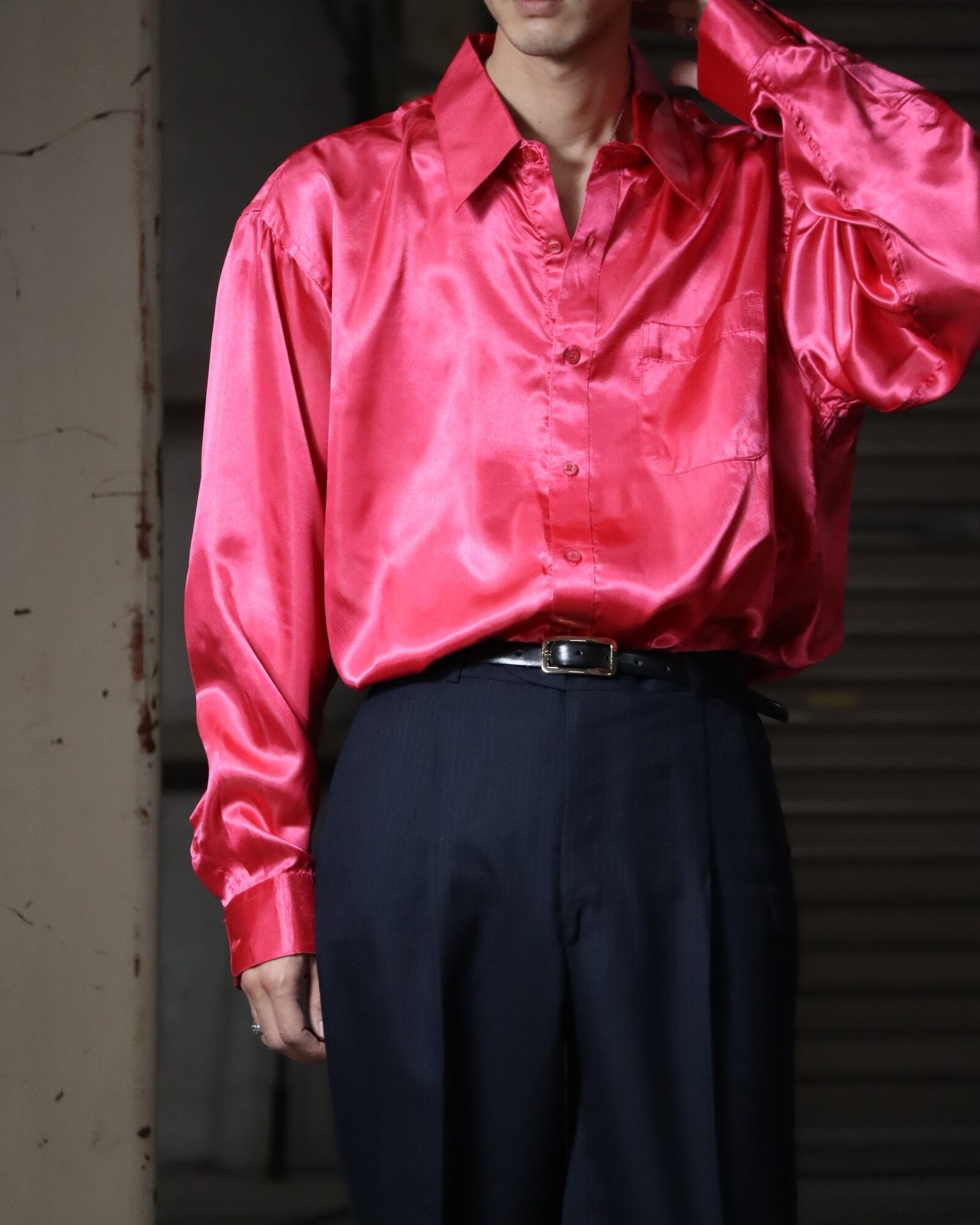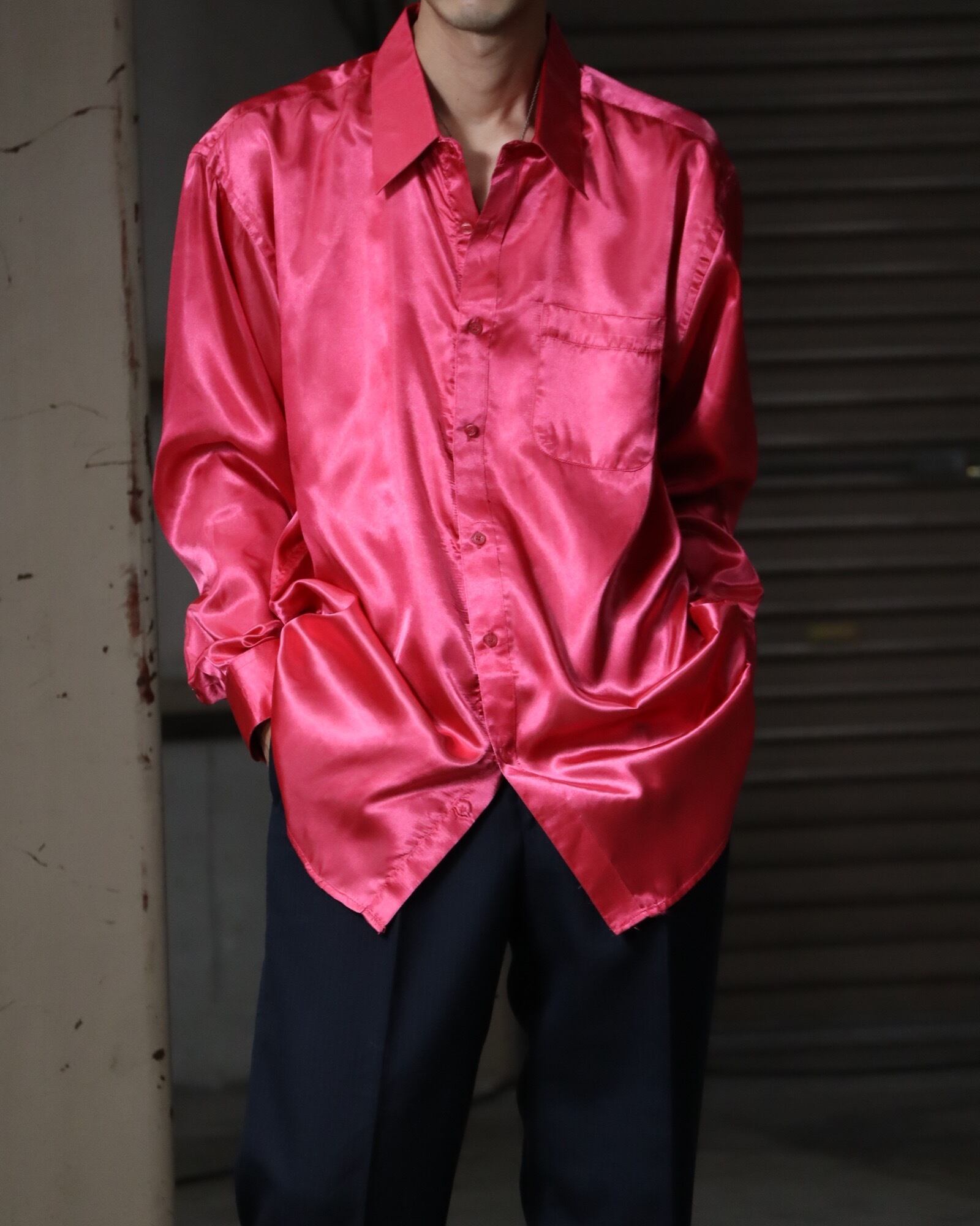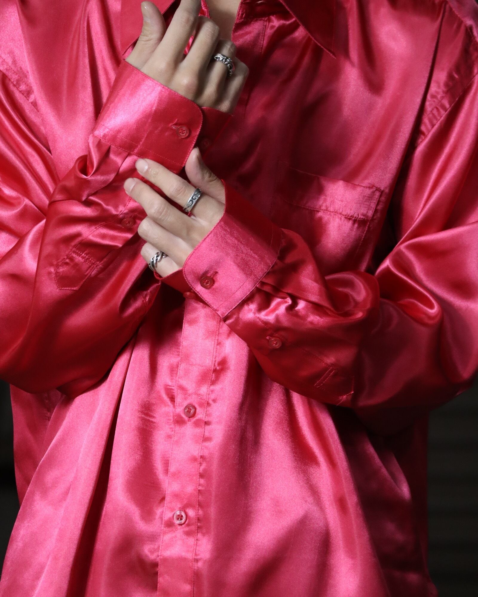 ▼Item / shiny satin oversized l/s shirt metallic pink