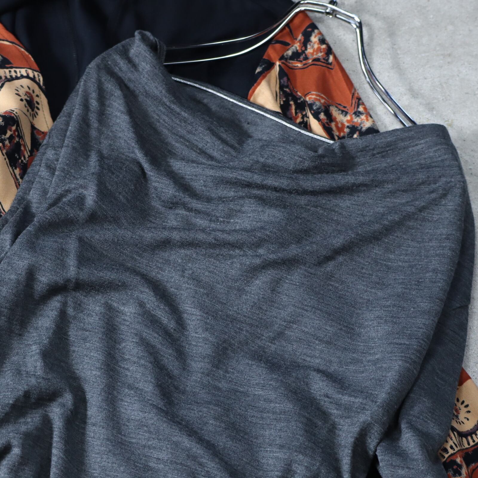 ▼Item / draped neck toromi l/s pullover top gray