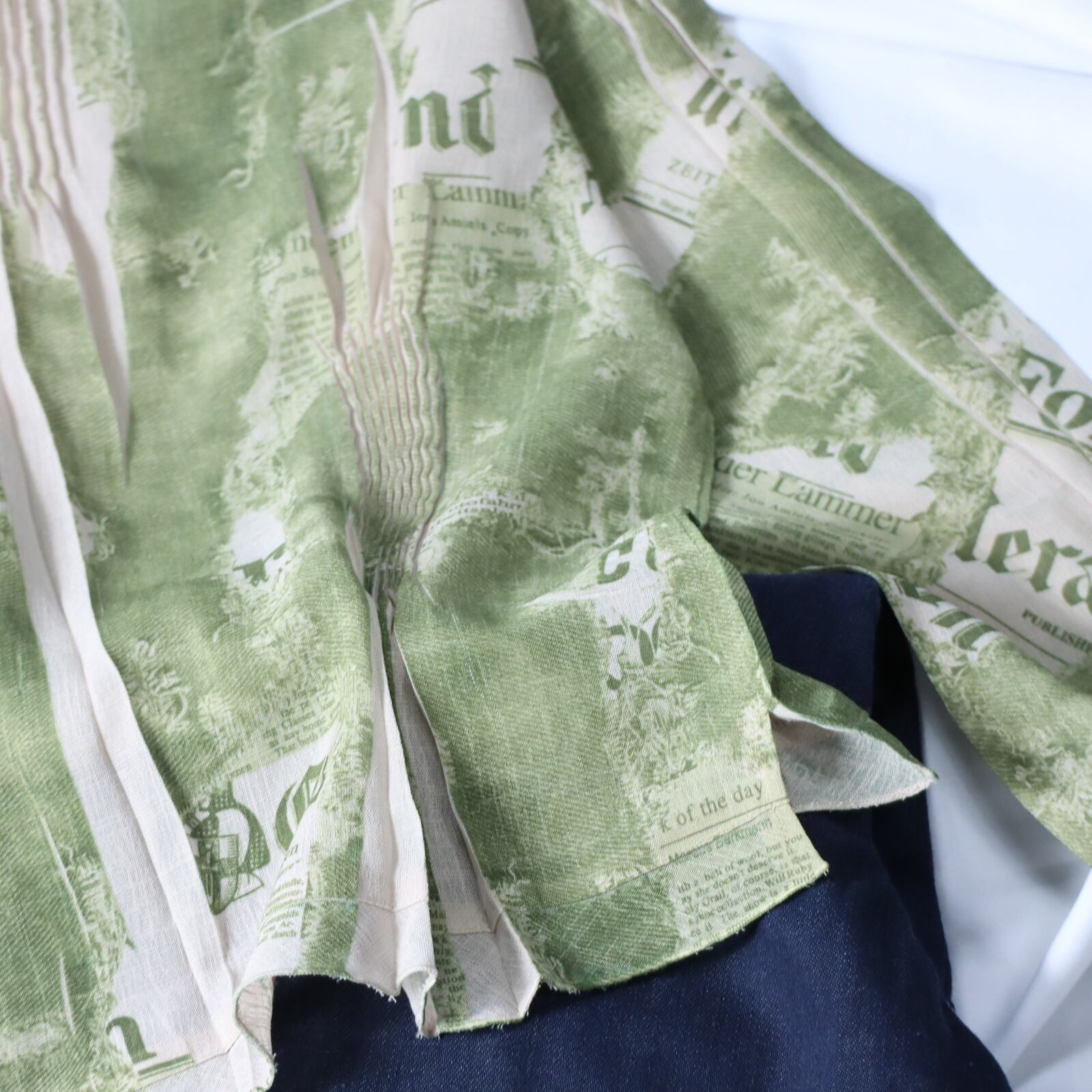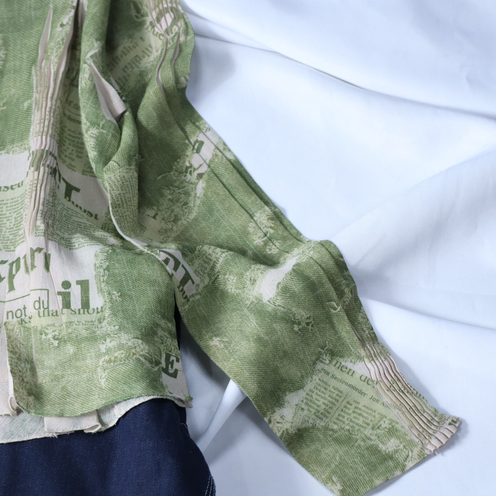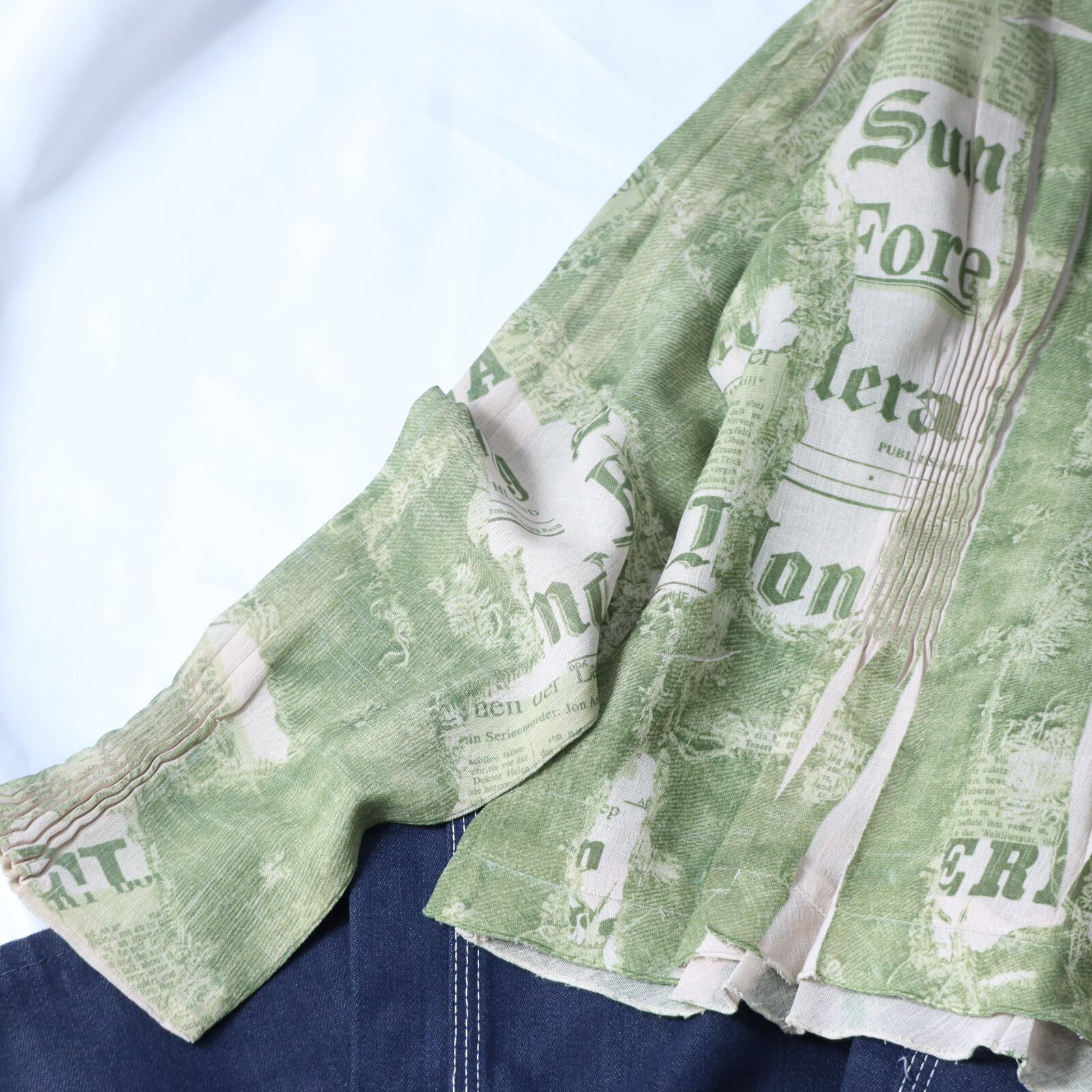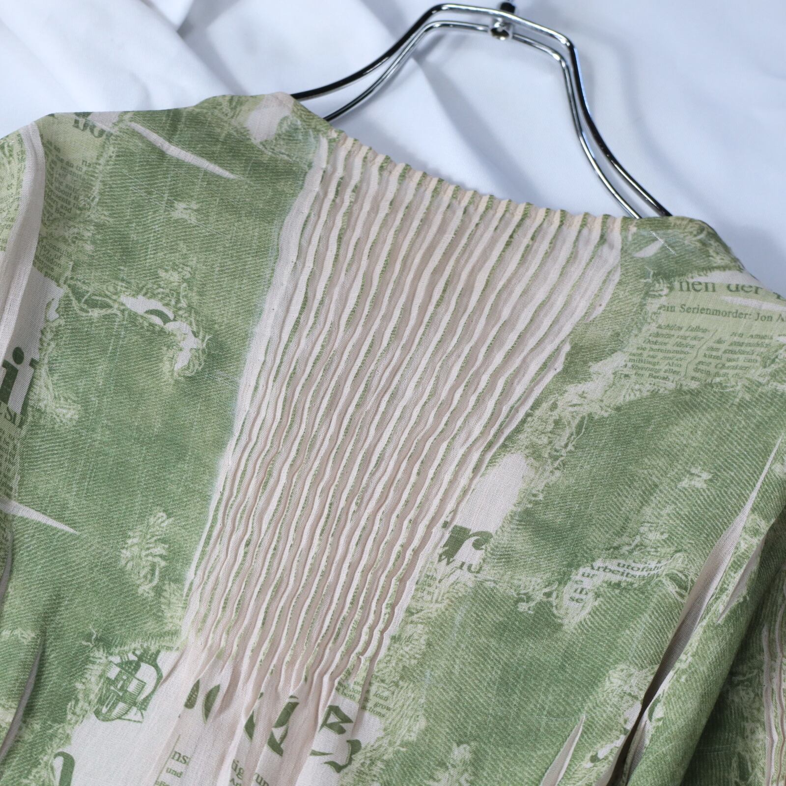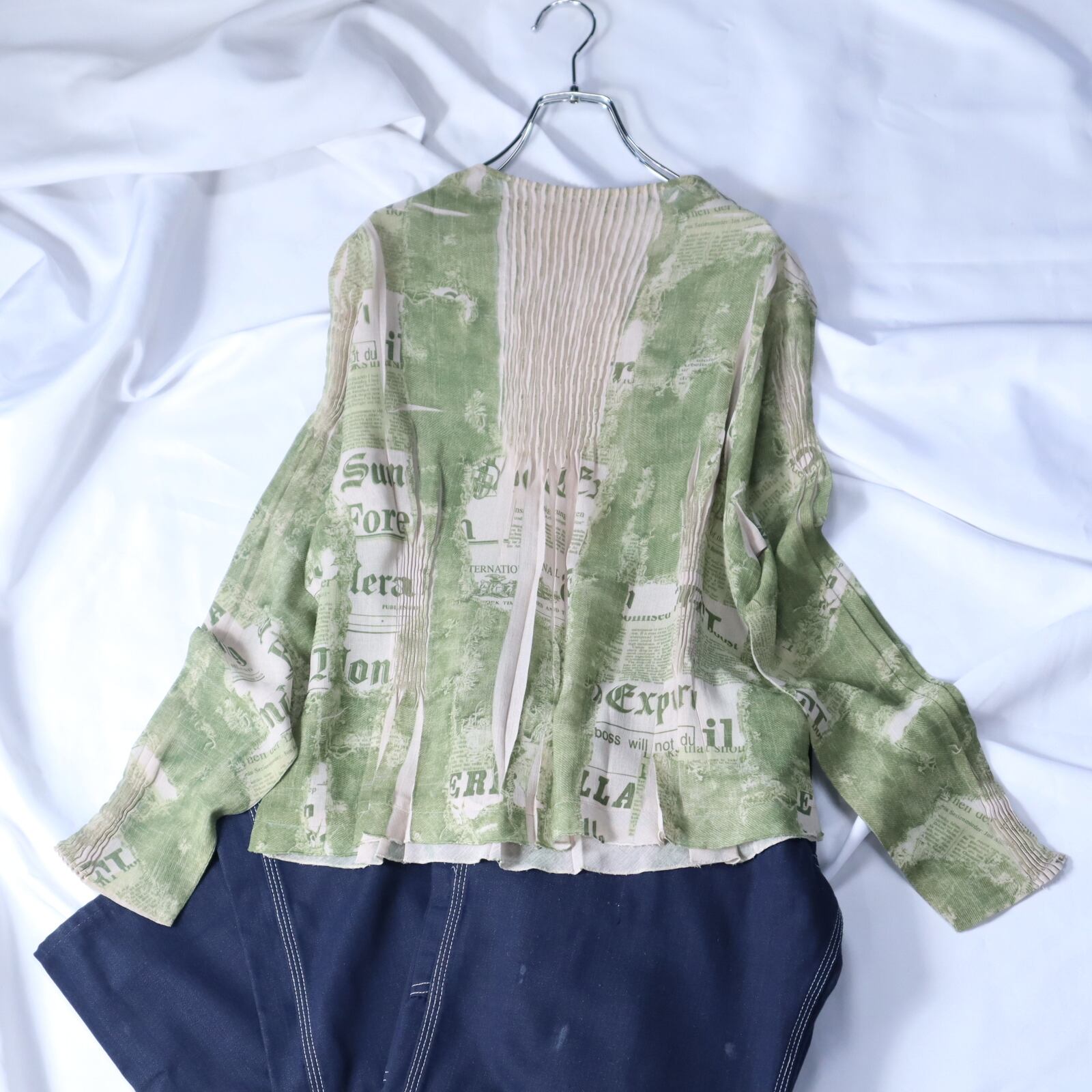 ▼Item / bottle neck random pleats design l/s sheer pullover