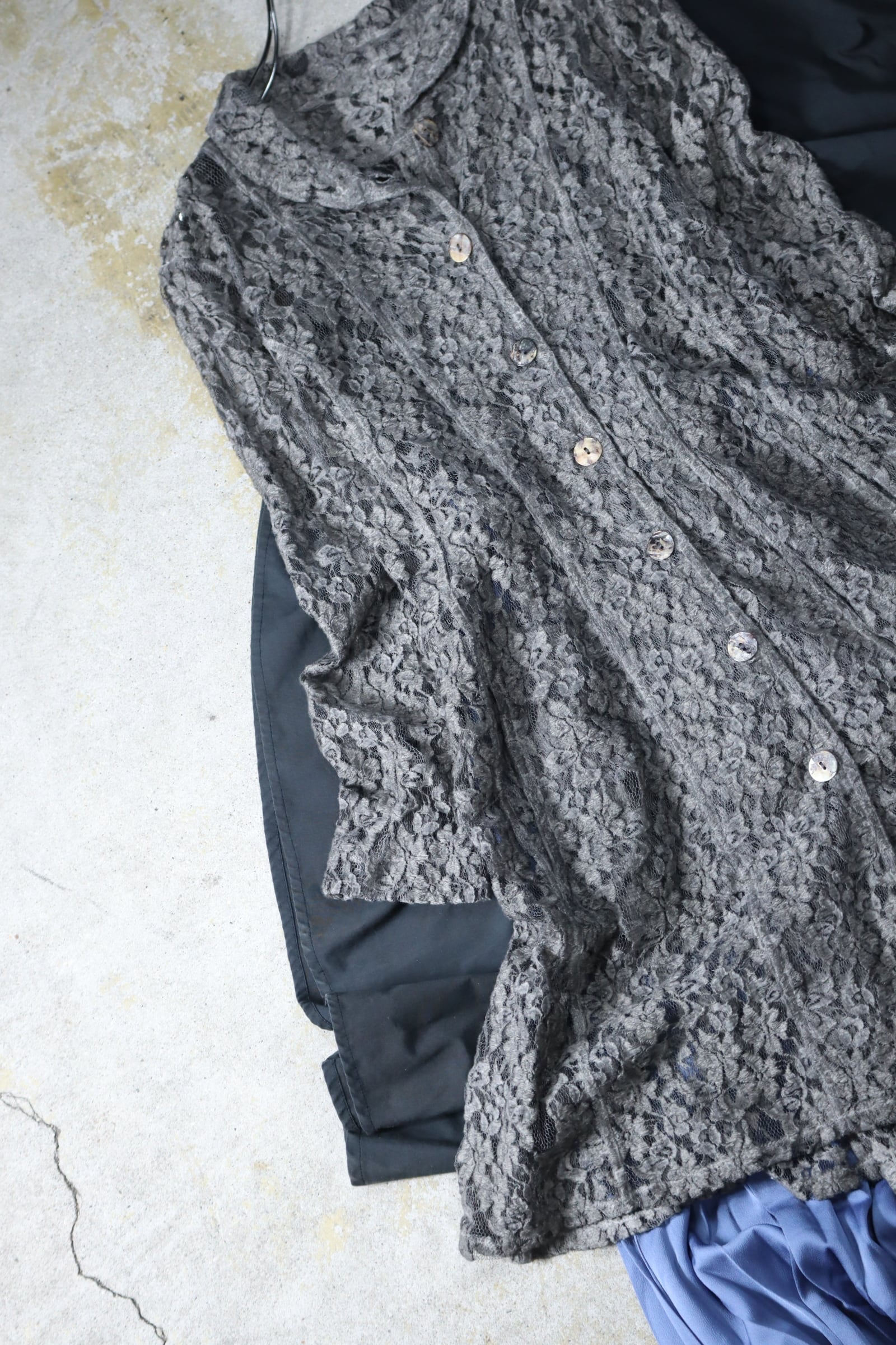 ▼Item / -1990s Euro, flower lace long length shirt jacket made in Italy