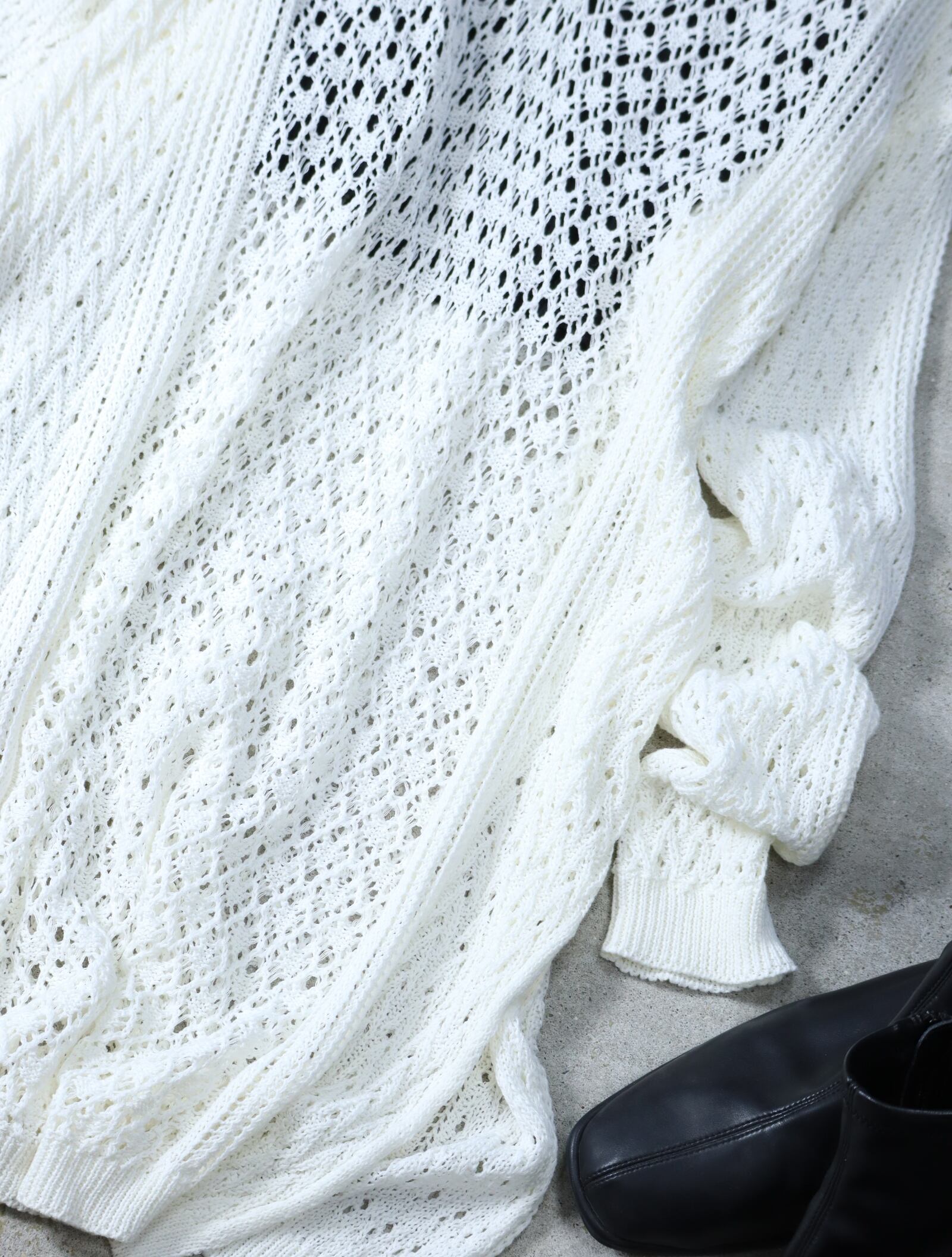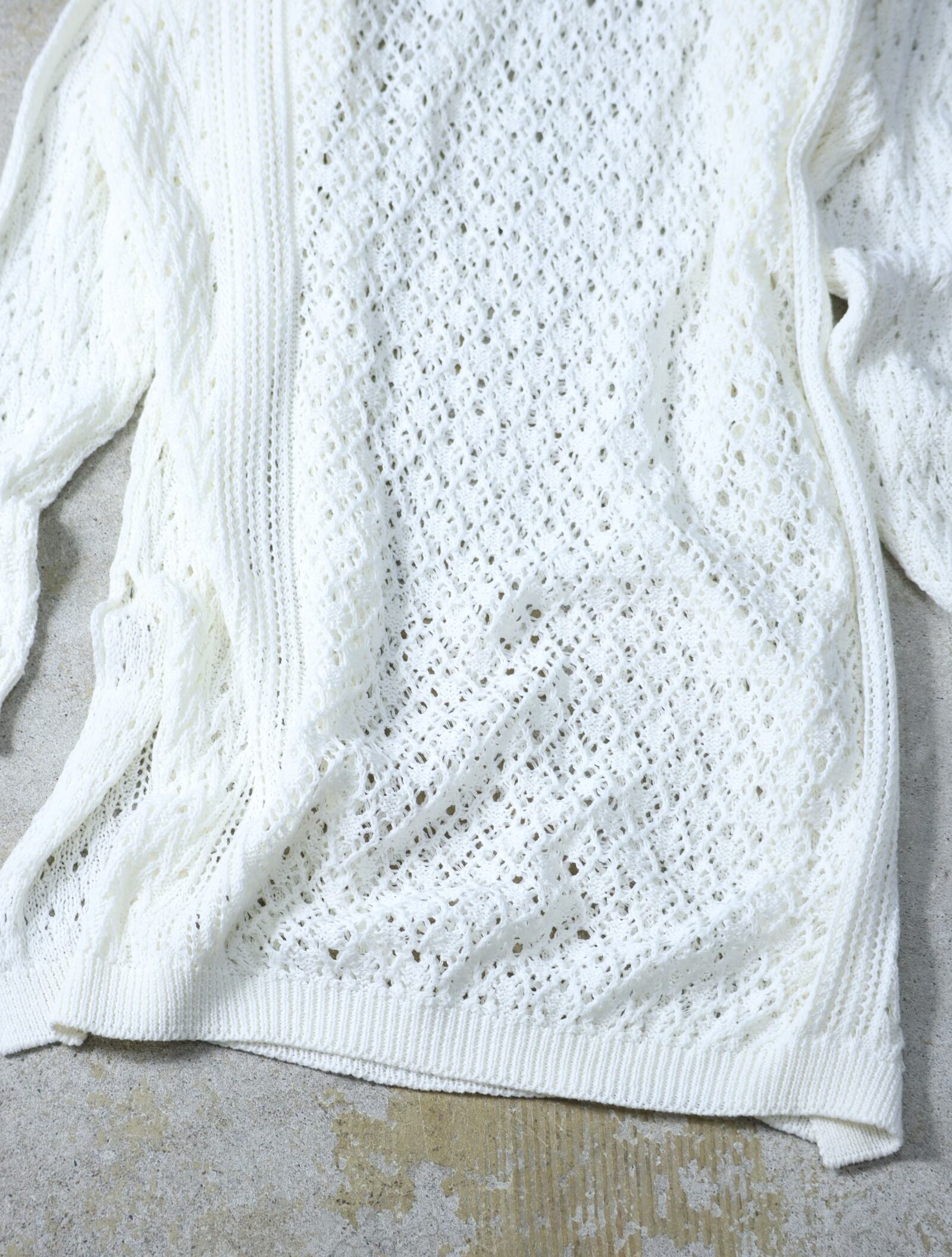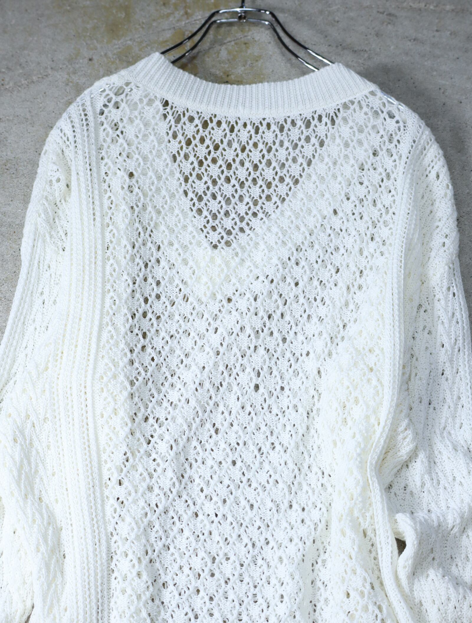 ▼Item / zakkuri mesh long length side slit knit white