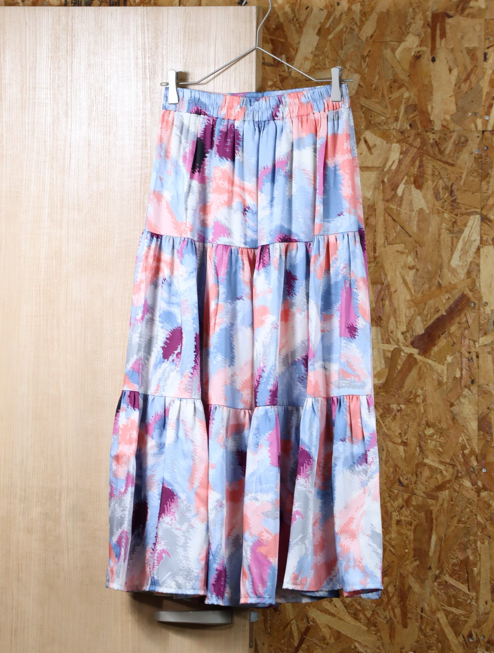 ▼Item / pale tone marble satin flare × tiered maxi skirt