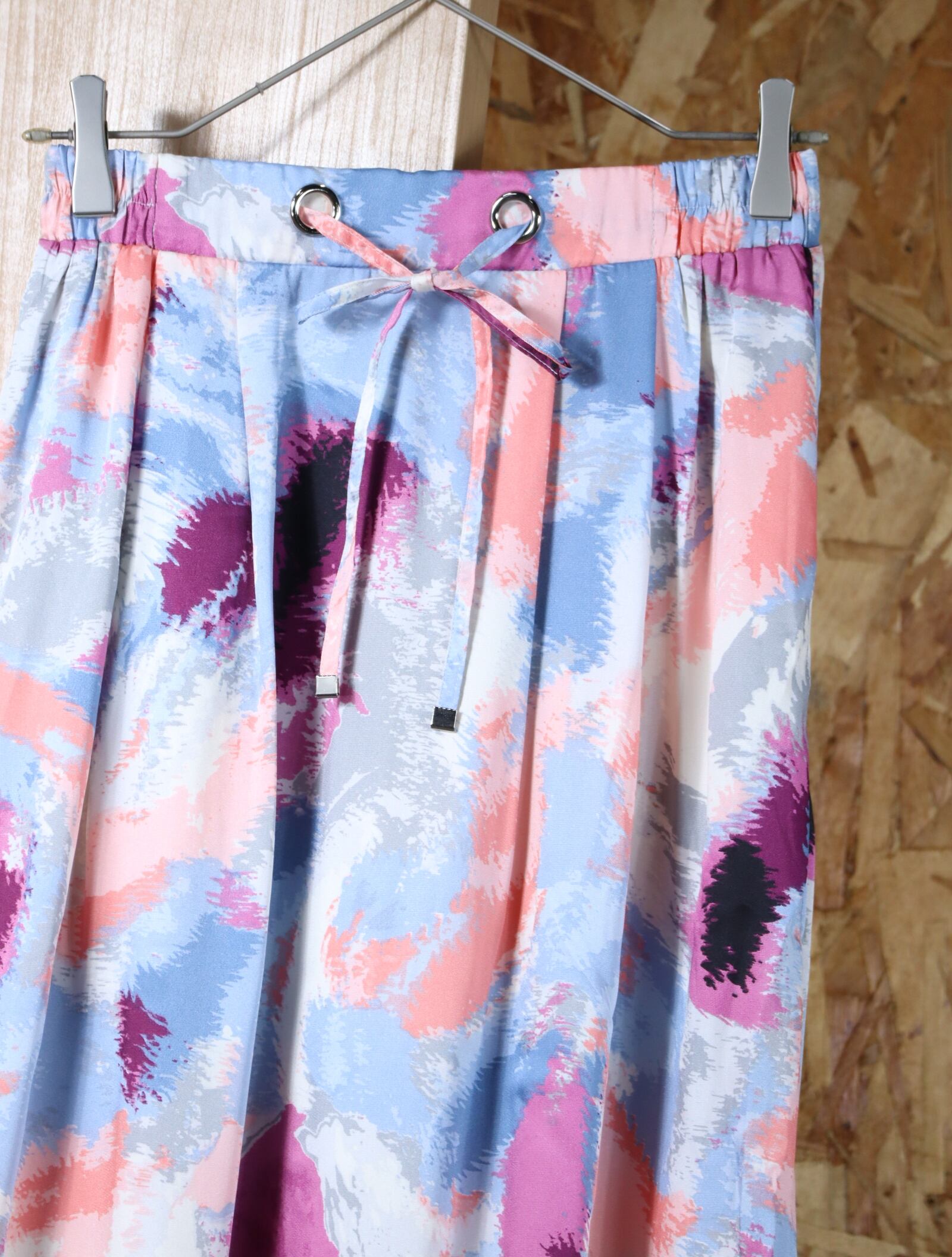 pale tone marble satin flare × tiered maxi skirt