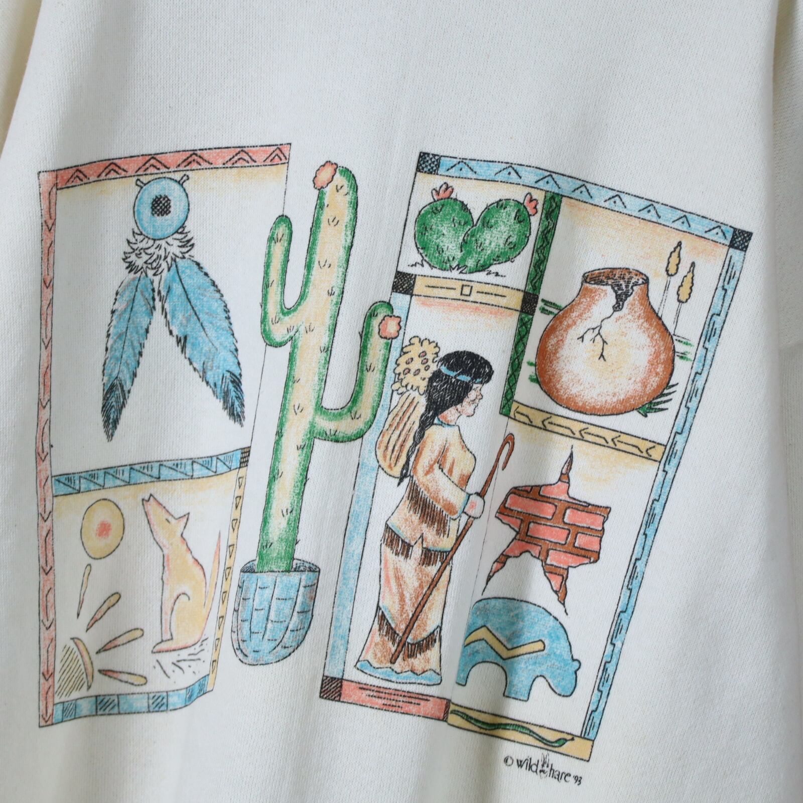▼Item / '93 tultex native art print sweatshirt ecru made in USA