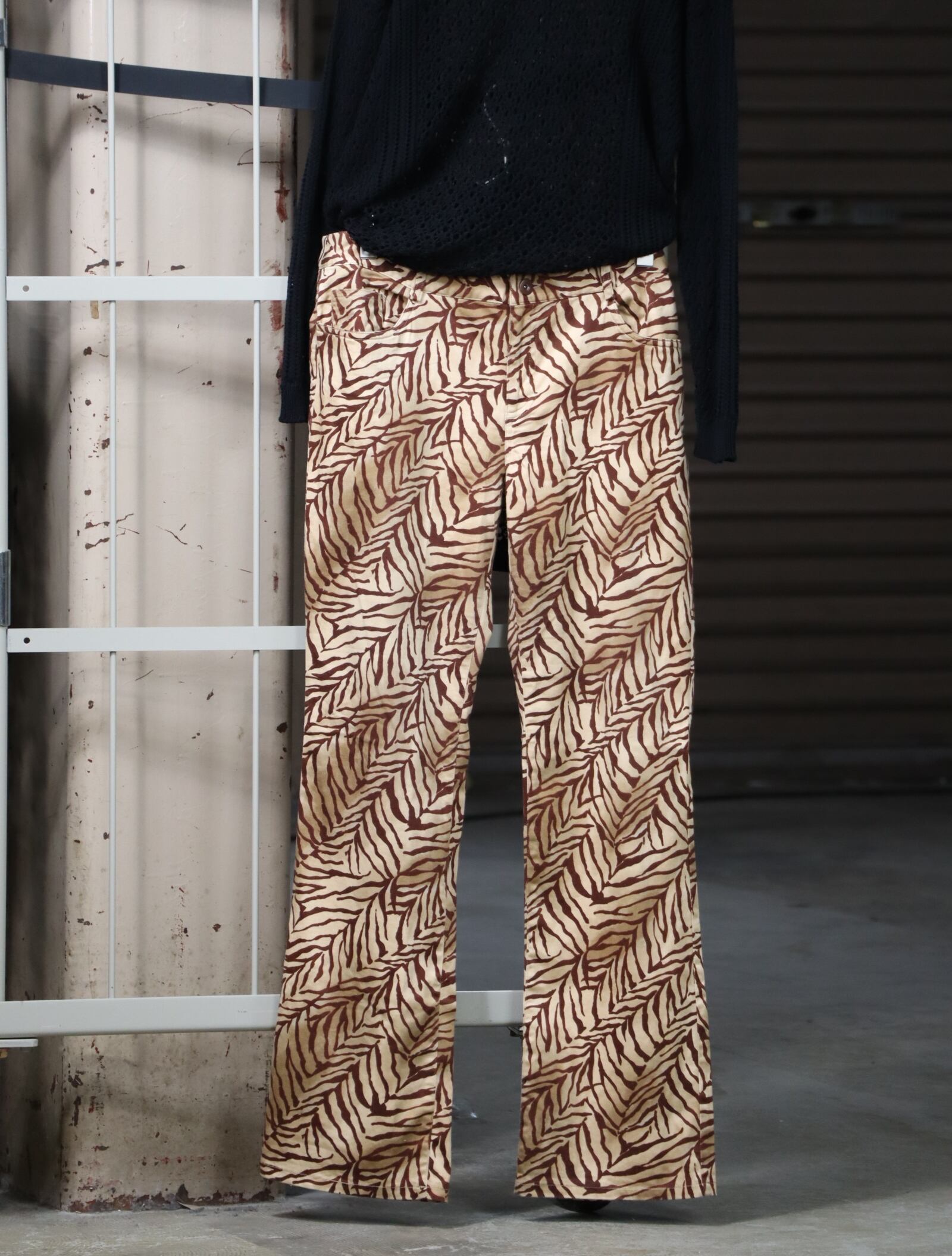 ▼Item / tiger print semi flare silhouette stretch slacks
