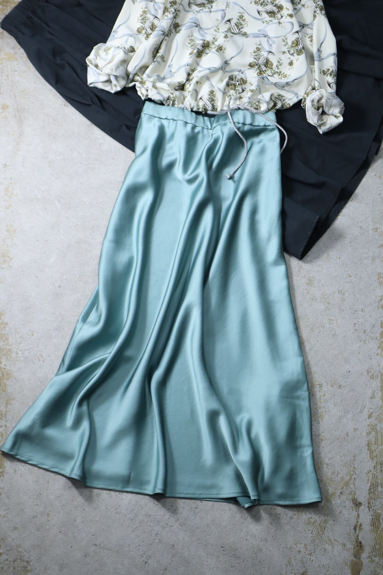 ▼Item / mint green satin flare silhouette maxi skirt