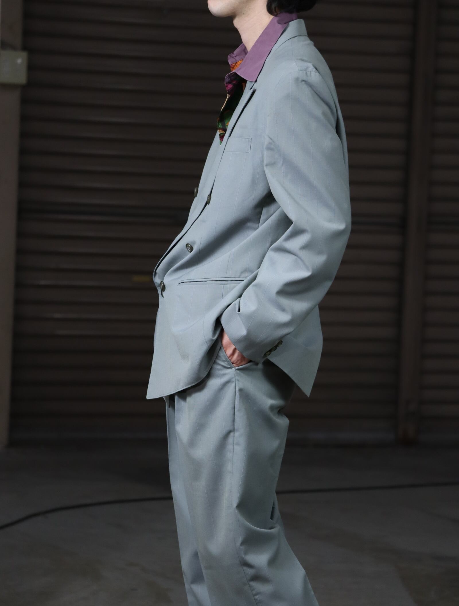 1990s- 2pieces set up, pinhead stripe double breasted × 2tuck slacks