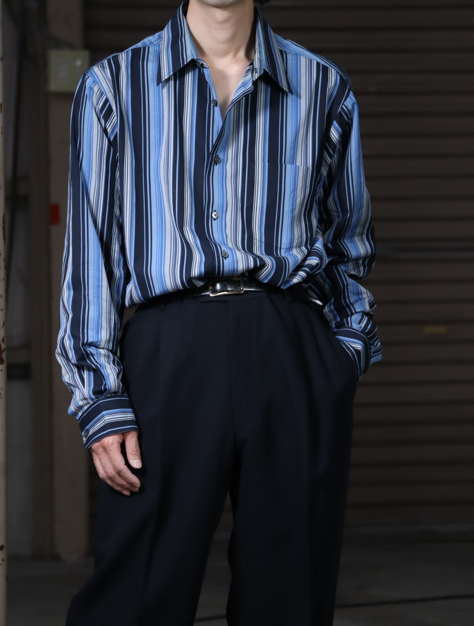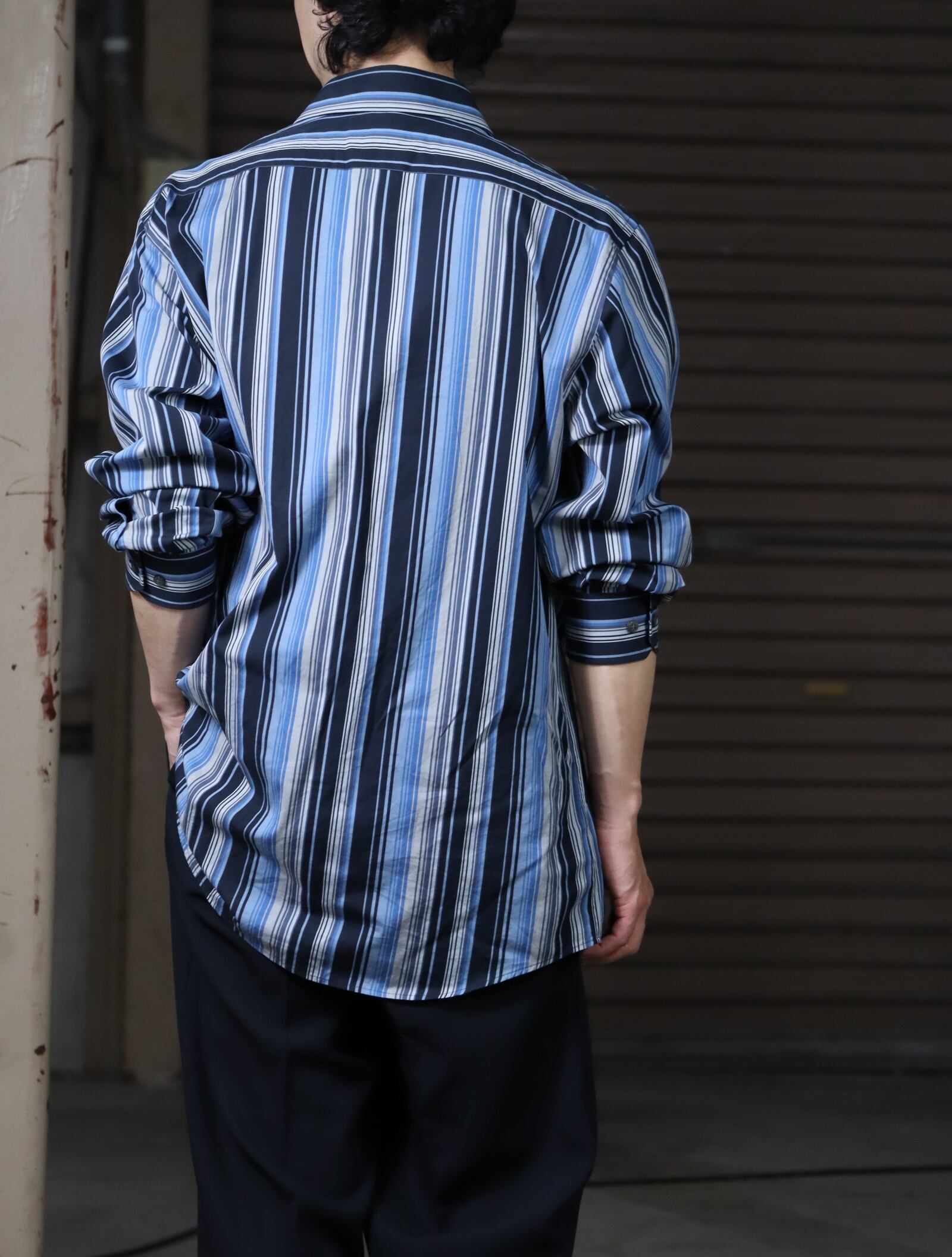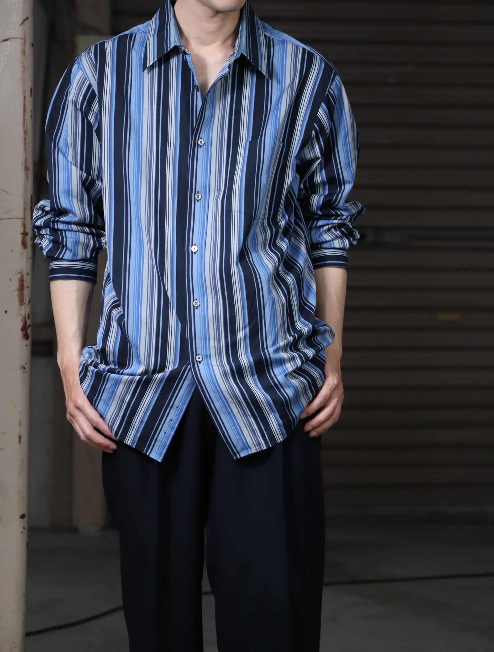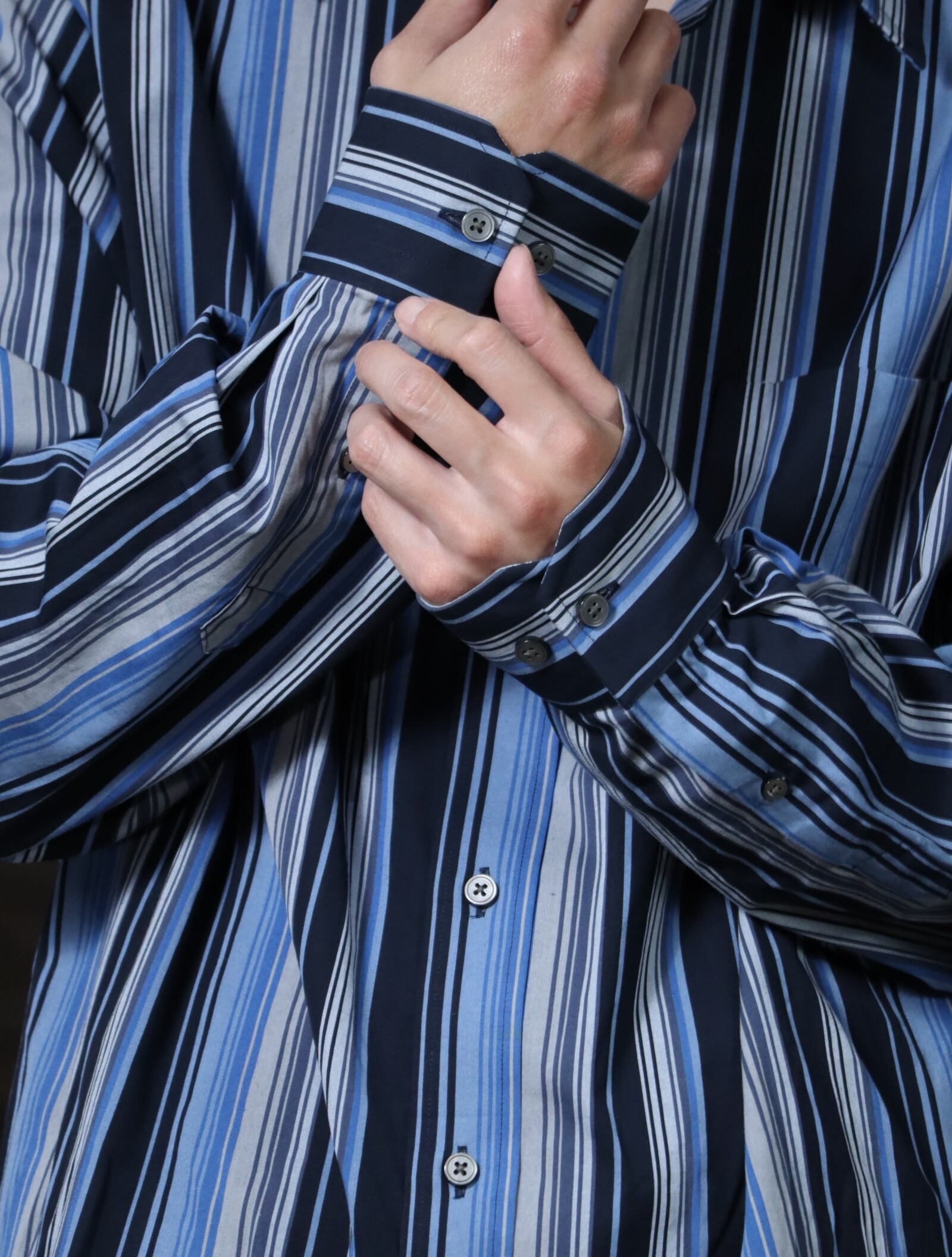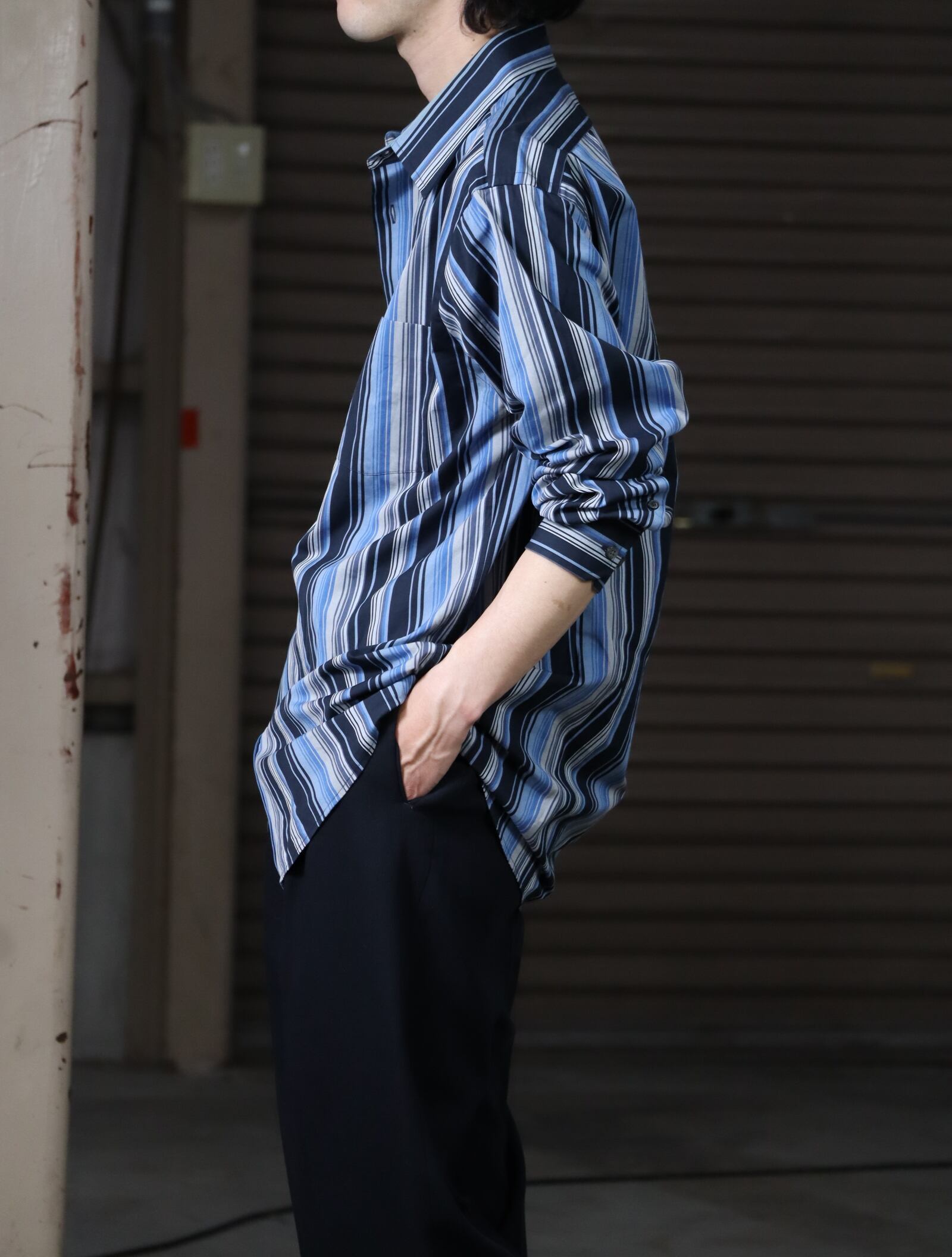 ▼Item / cold tone multi stripe cotton l/s shirt oversized