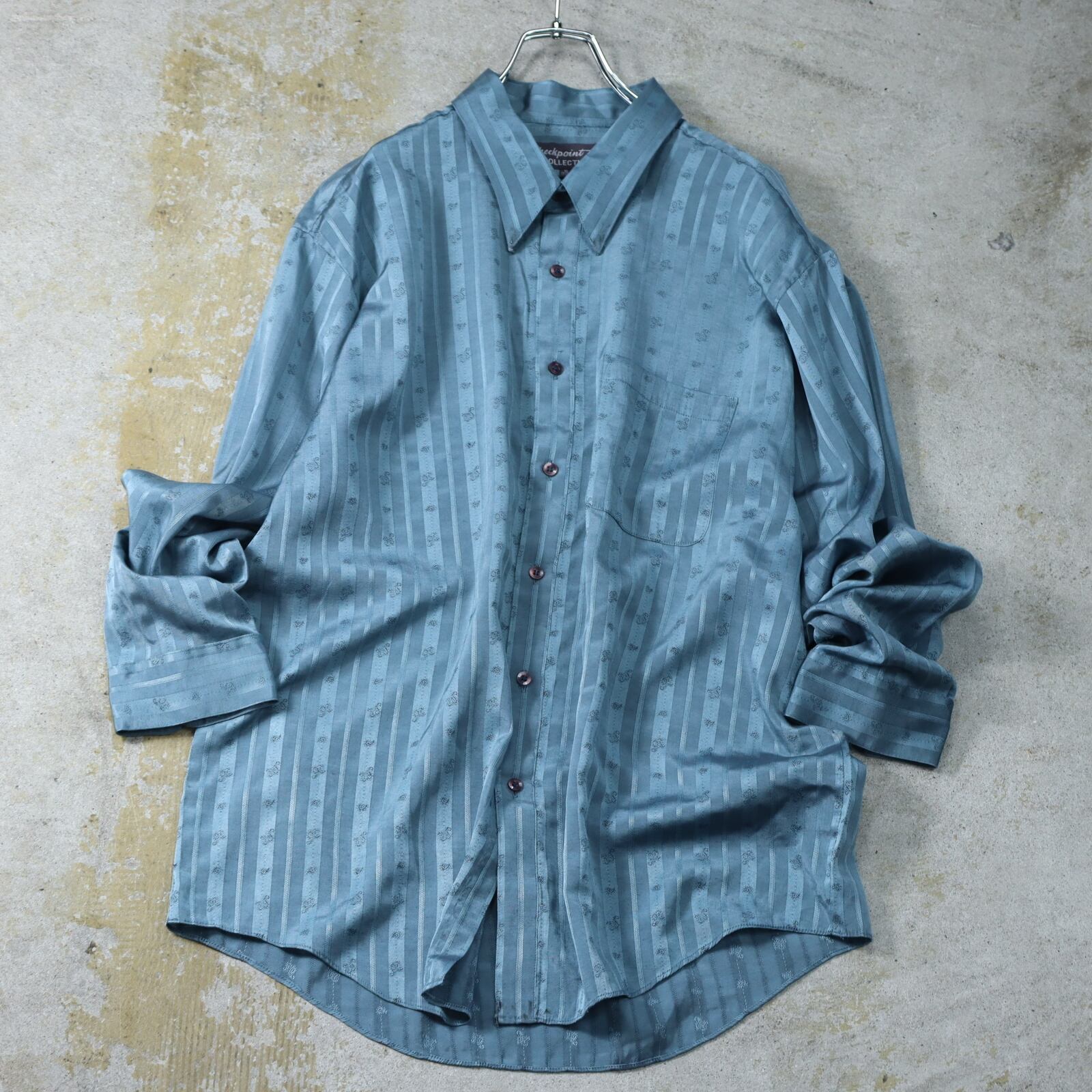 ▼Item / unique jacquard stripe toromi satin l/s shirt