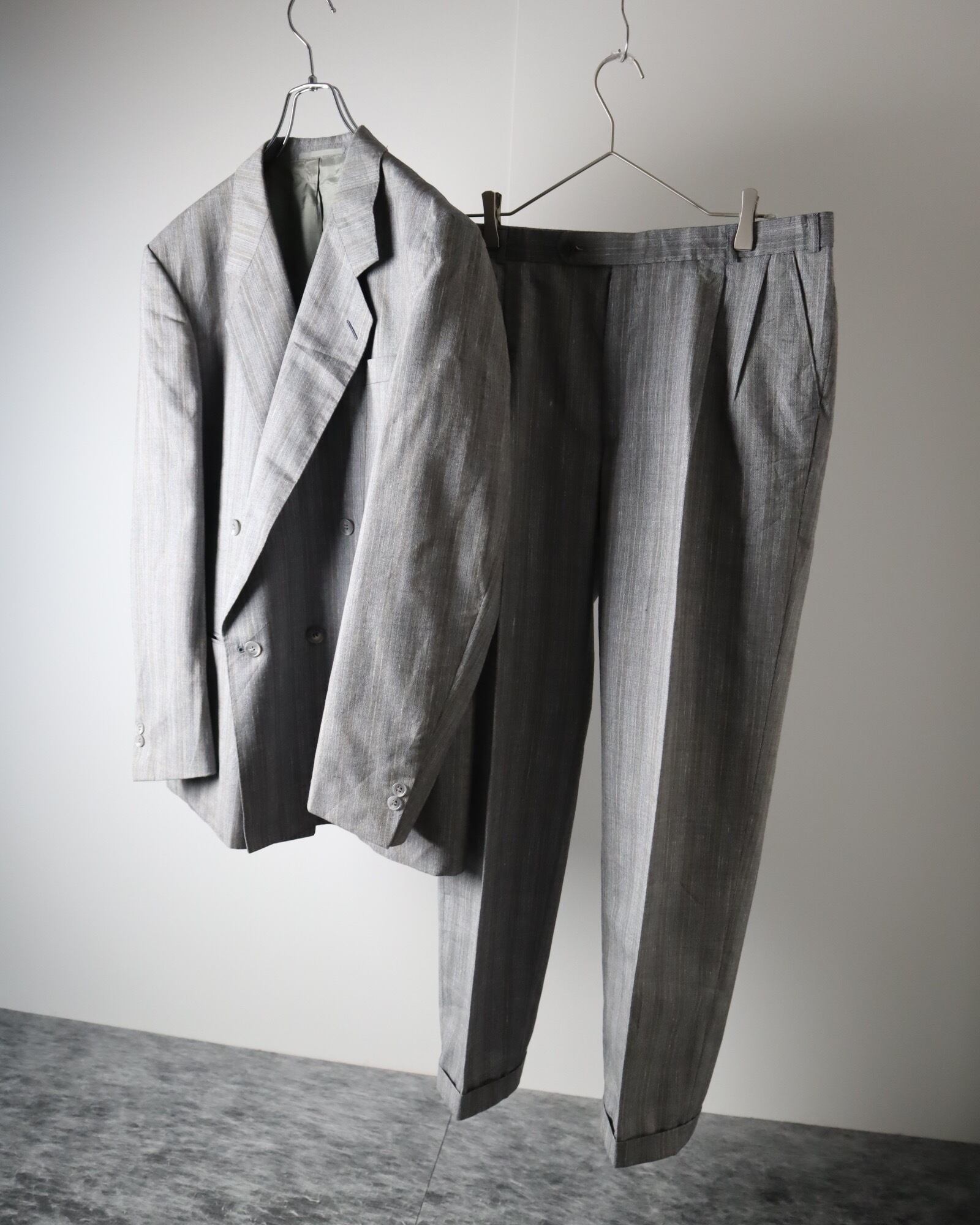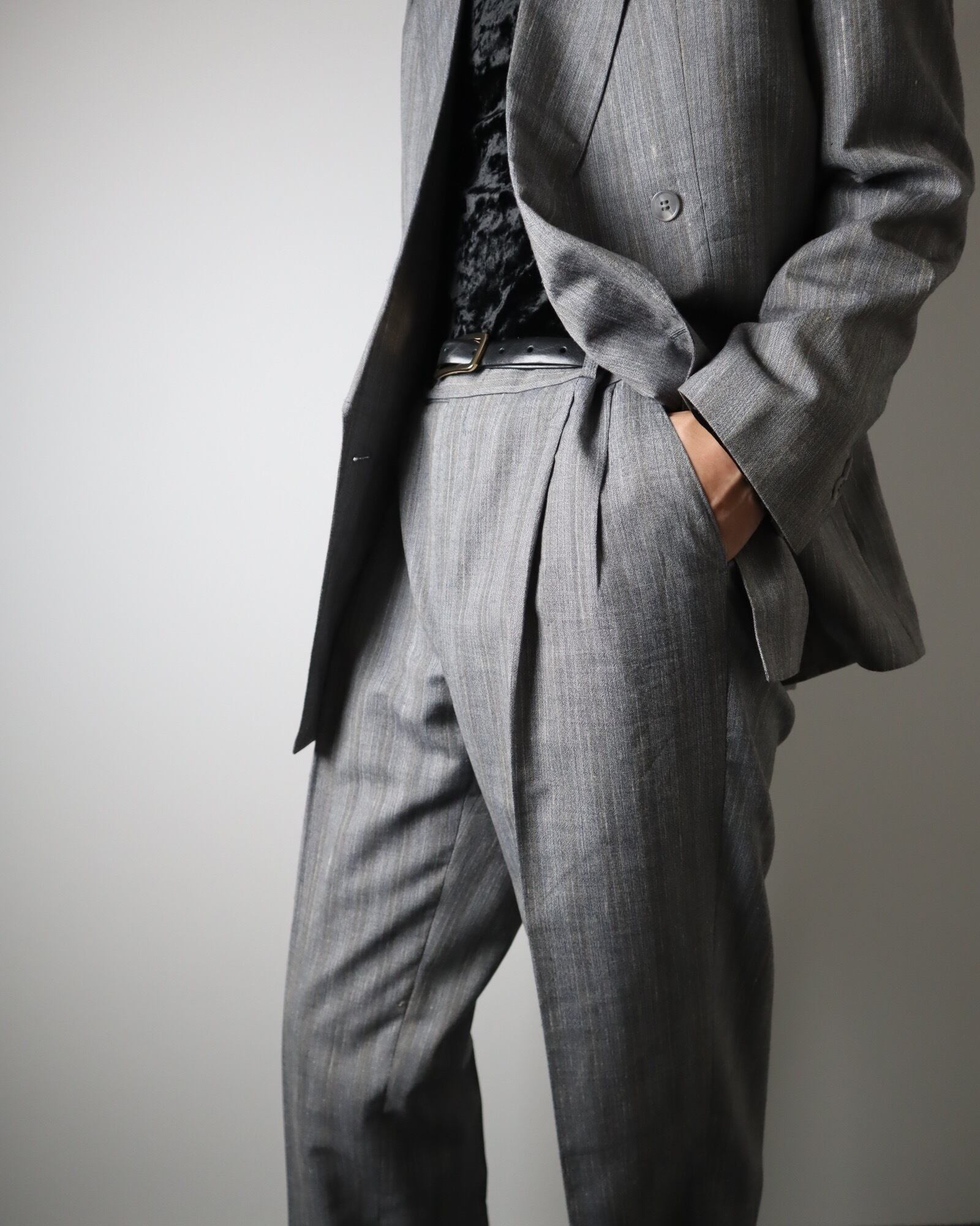 thick-and-thin stripe linen blend 2piece set up double breasted×2tuck slacks