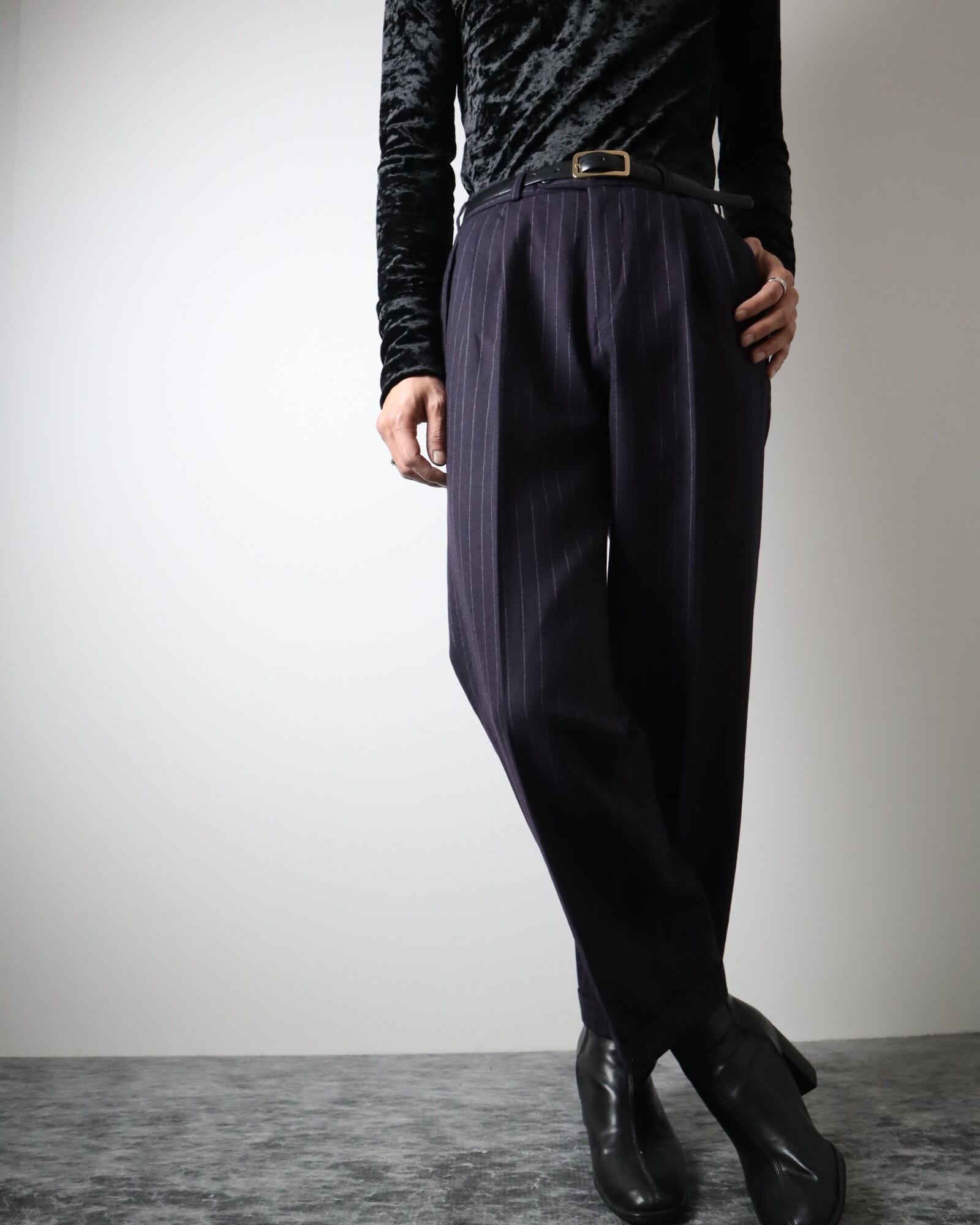 virgin wool flannel chalk stripe 2piece set up double breasted×2tuck slacks