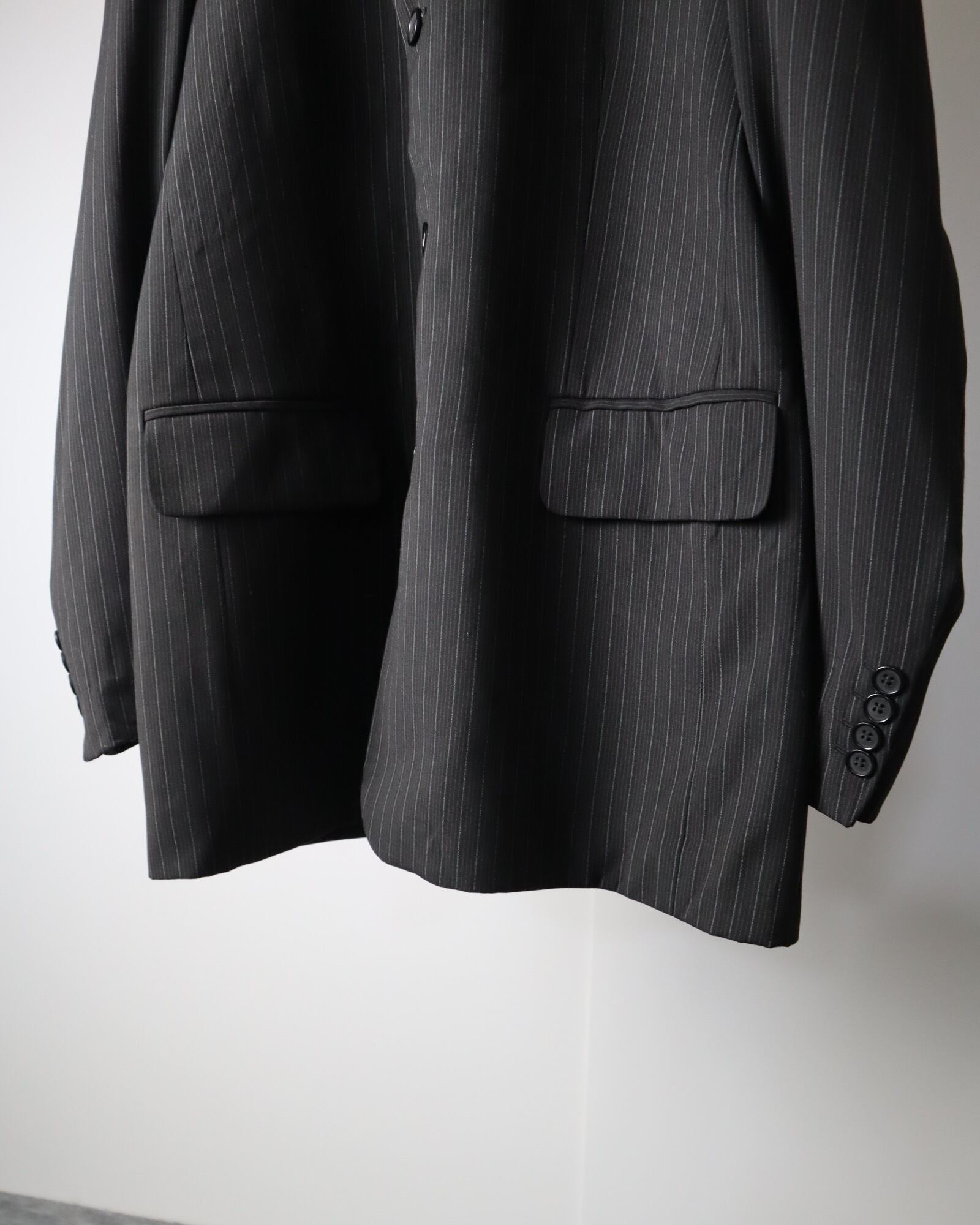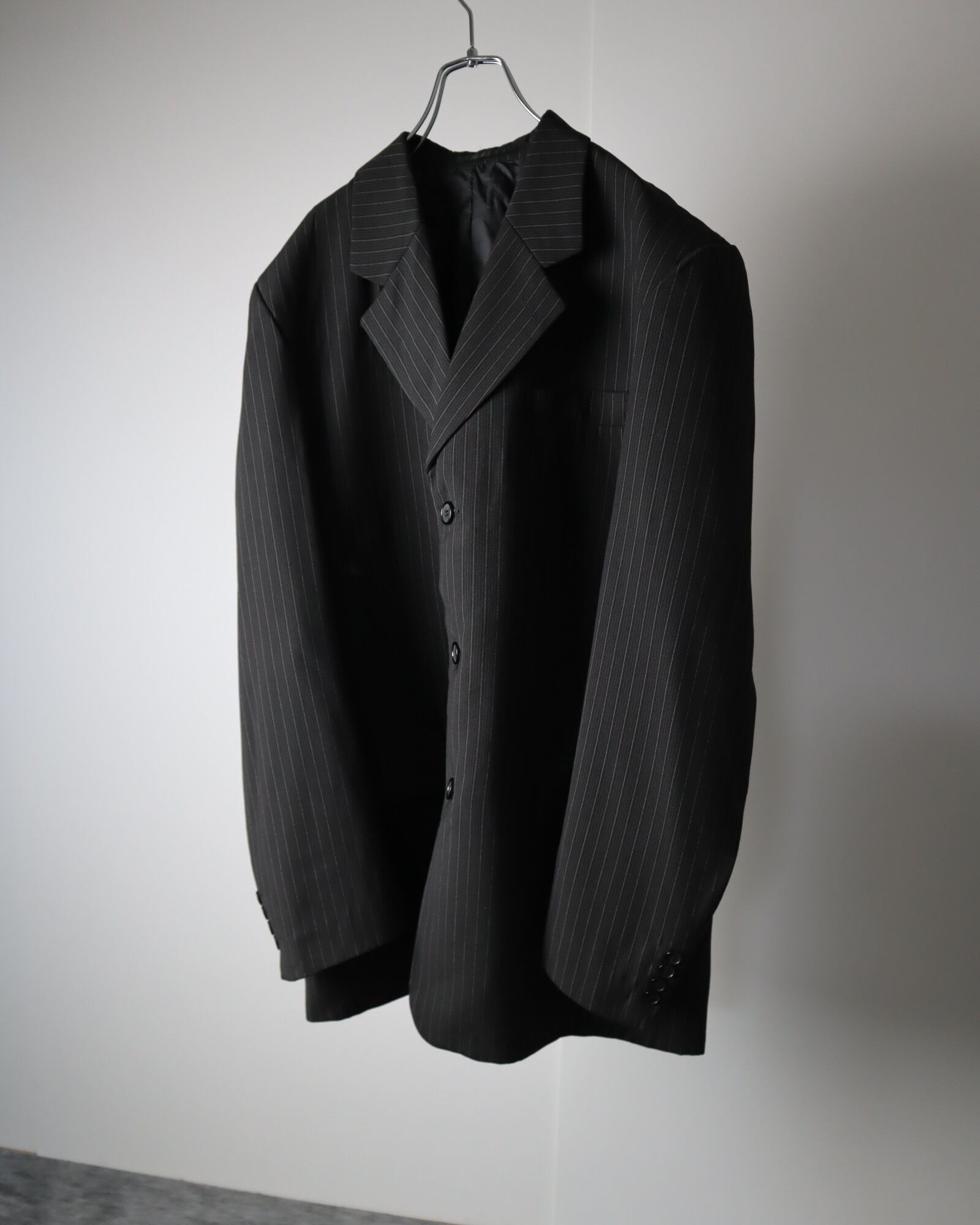 2piece set up tailored jacket×1tuck slacks over stripe black