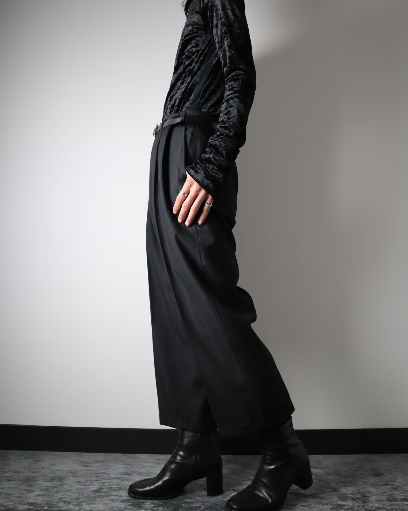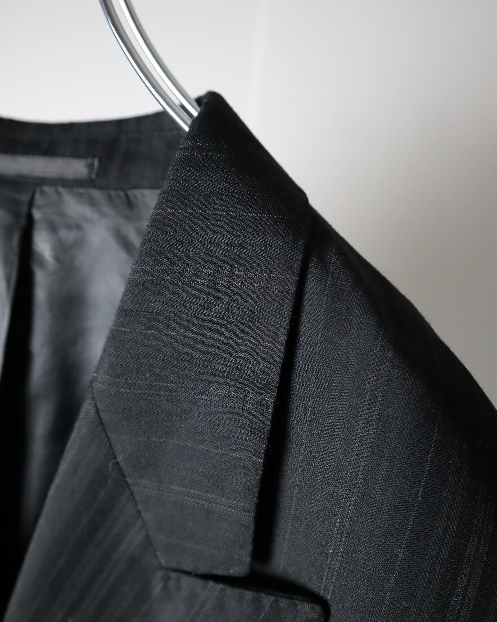 2piece set up double breasted×2tuck slacks shadow multi stripe