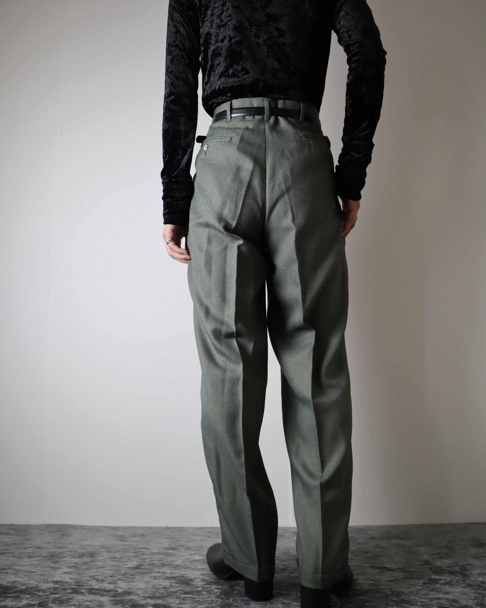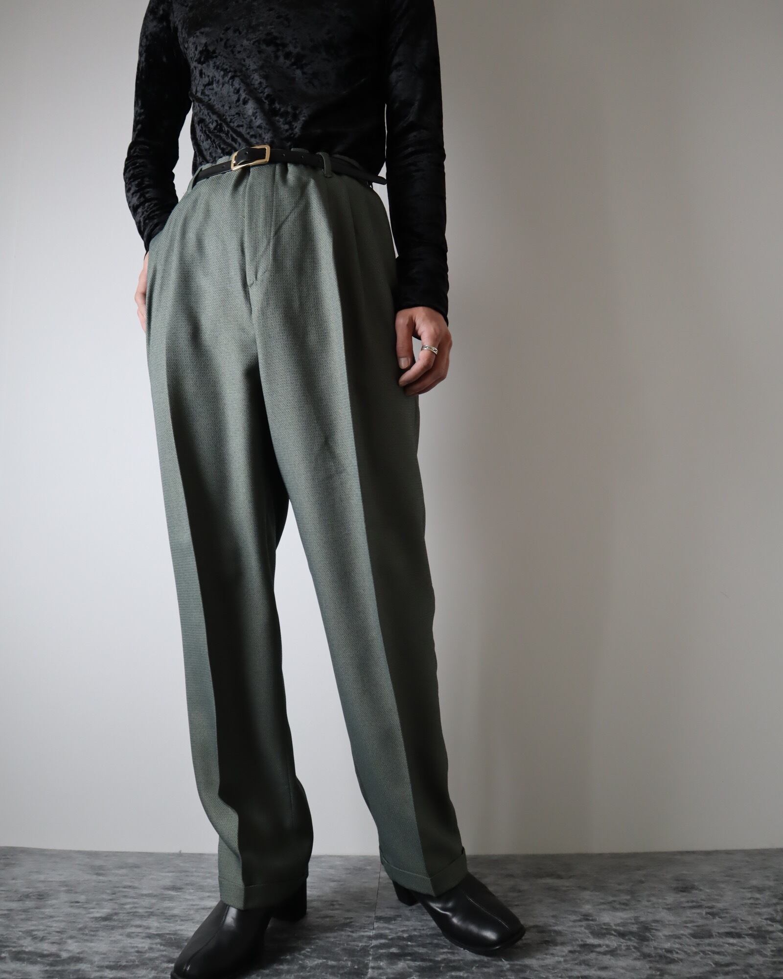 3tuck jacquard dobby wide slacks dull green