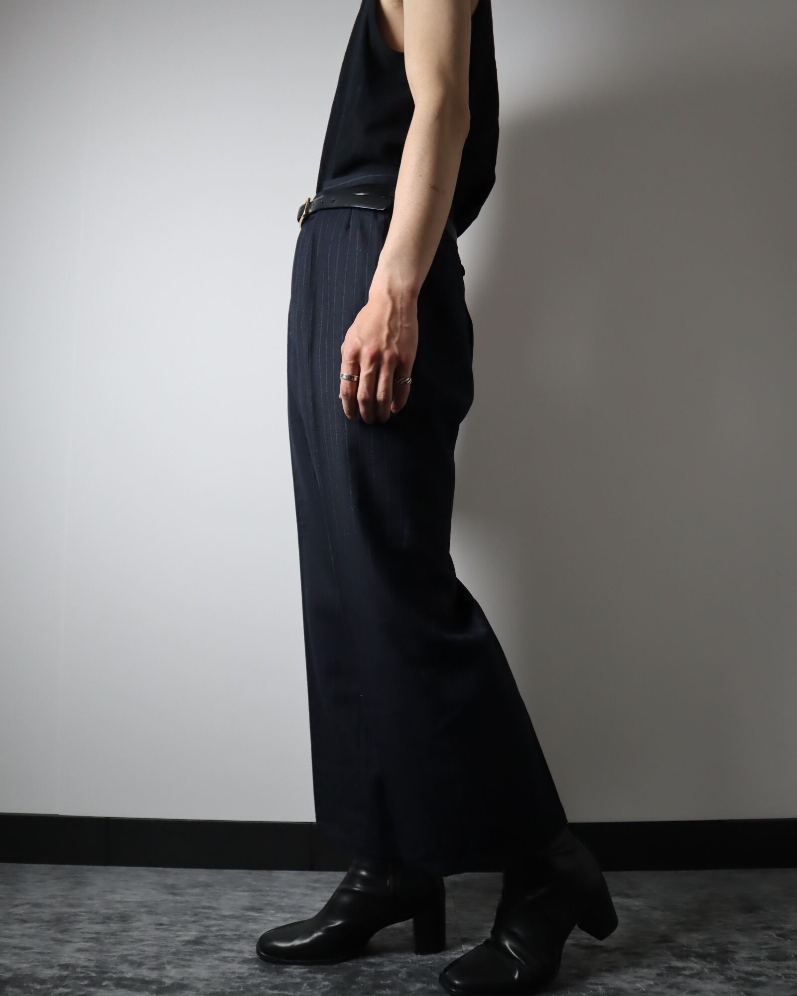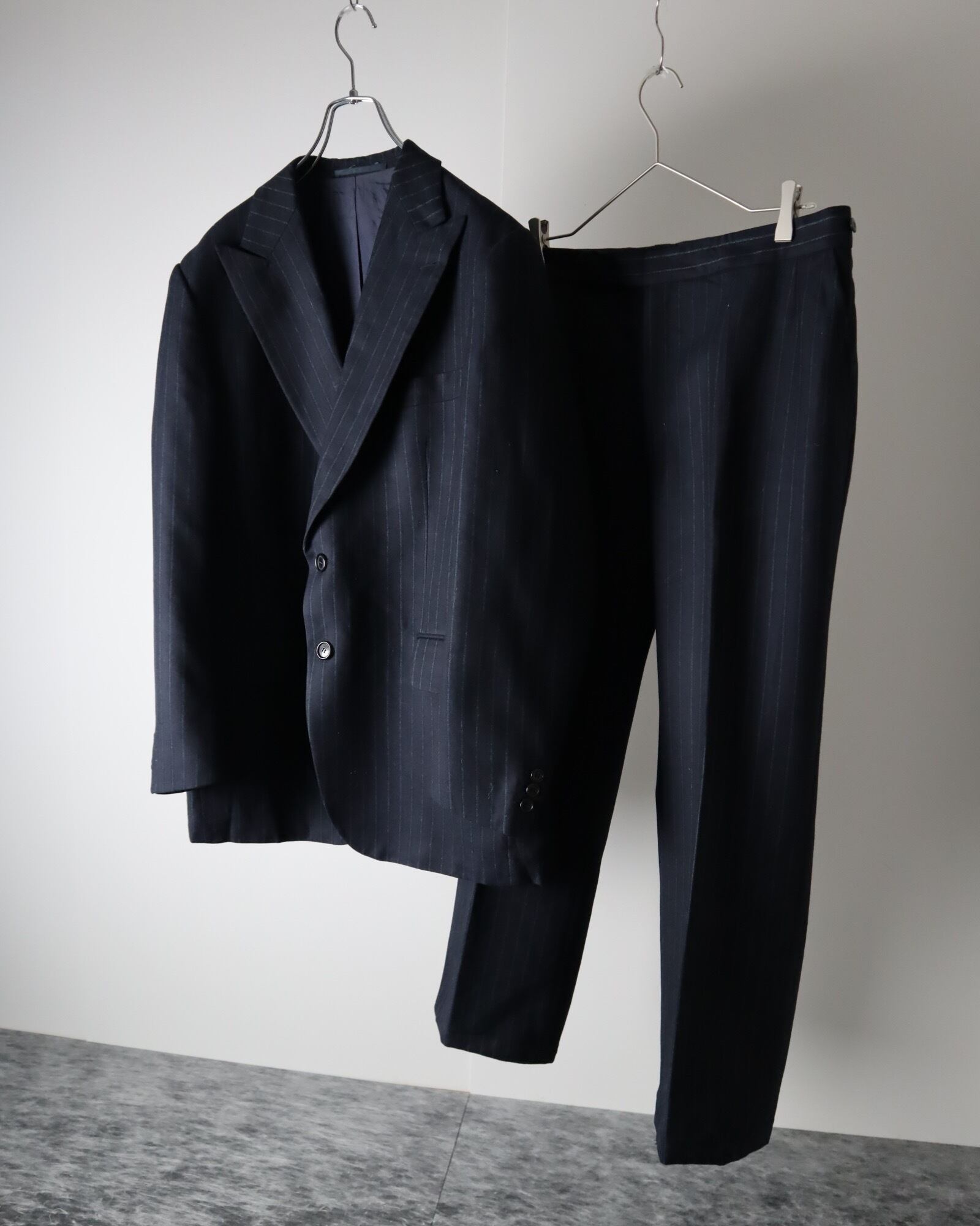 2piece set up virgin wool tailored jacket×1tuck slacks double stripe navy