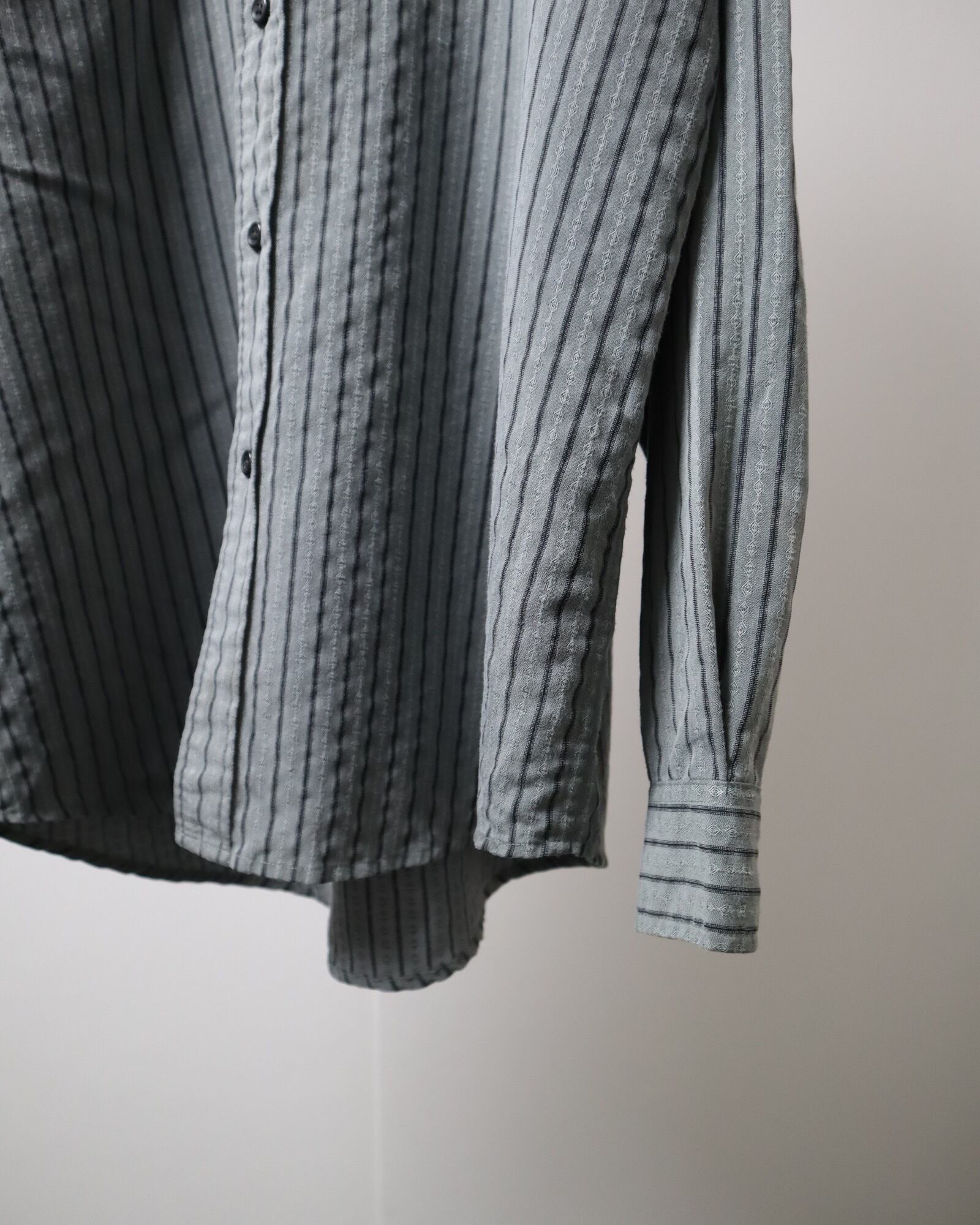 ▼Item / embroidery×jacquard stripe button-down shirt