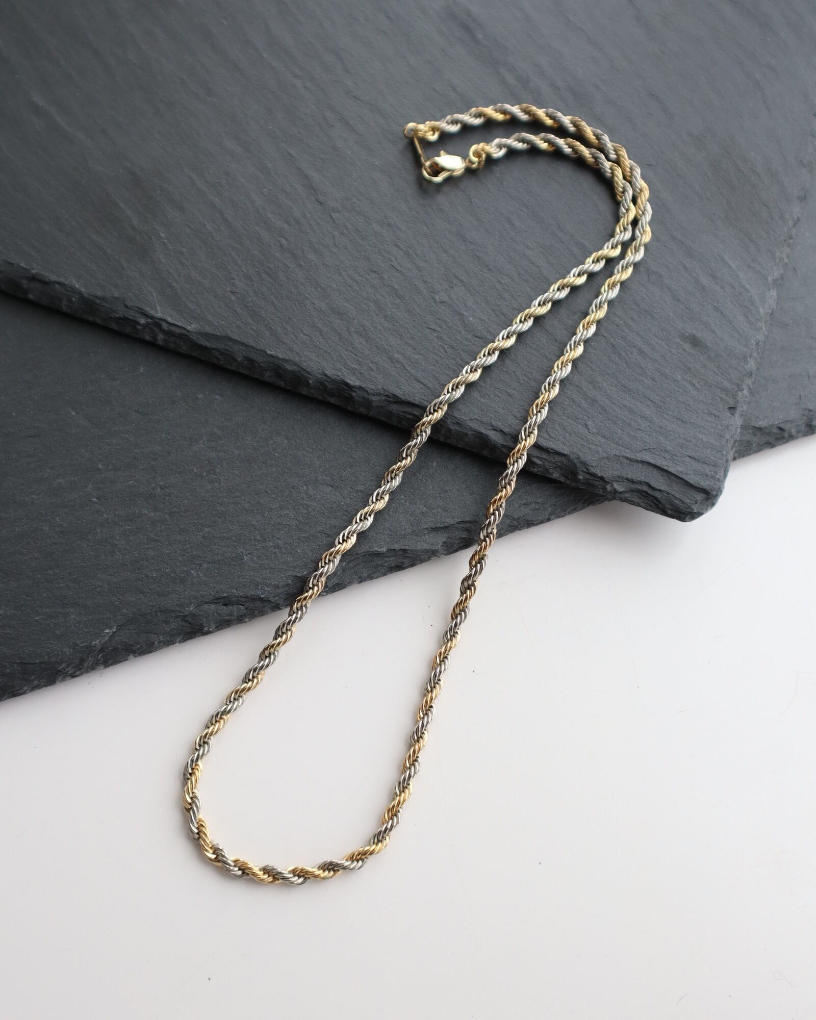 ▼Item / bicolor screw pope chain vintage necklace silver×gold