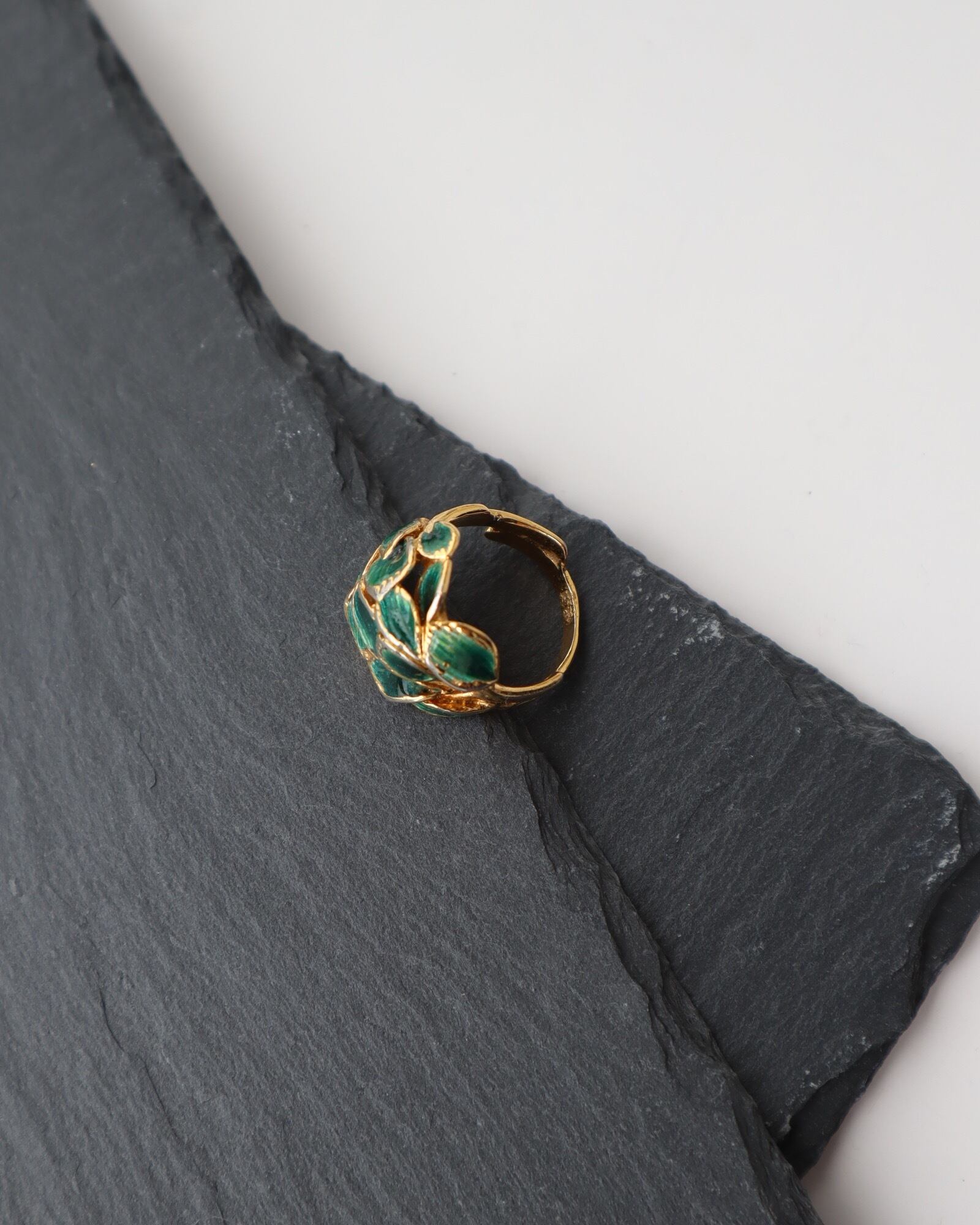 leaf motif bicolor vintage ring