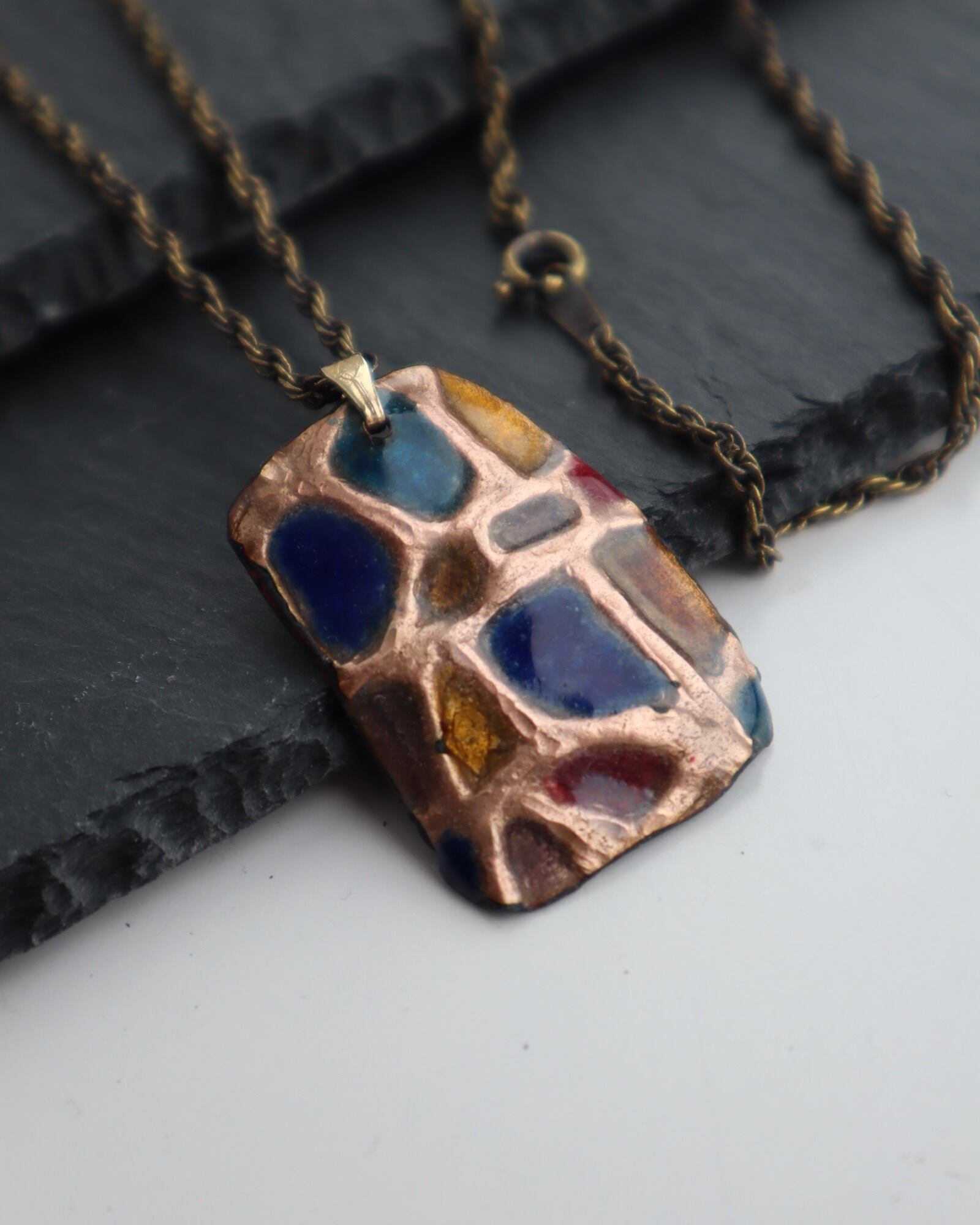 lattice-shaped multi color plate vintage necklace