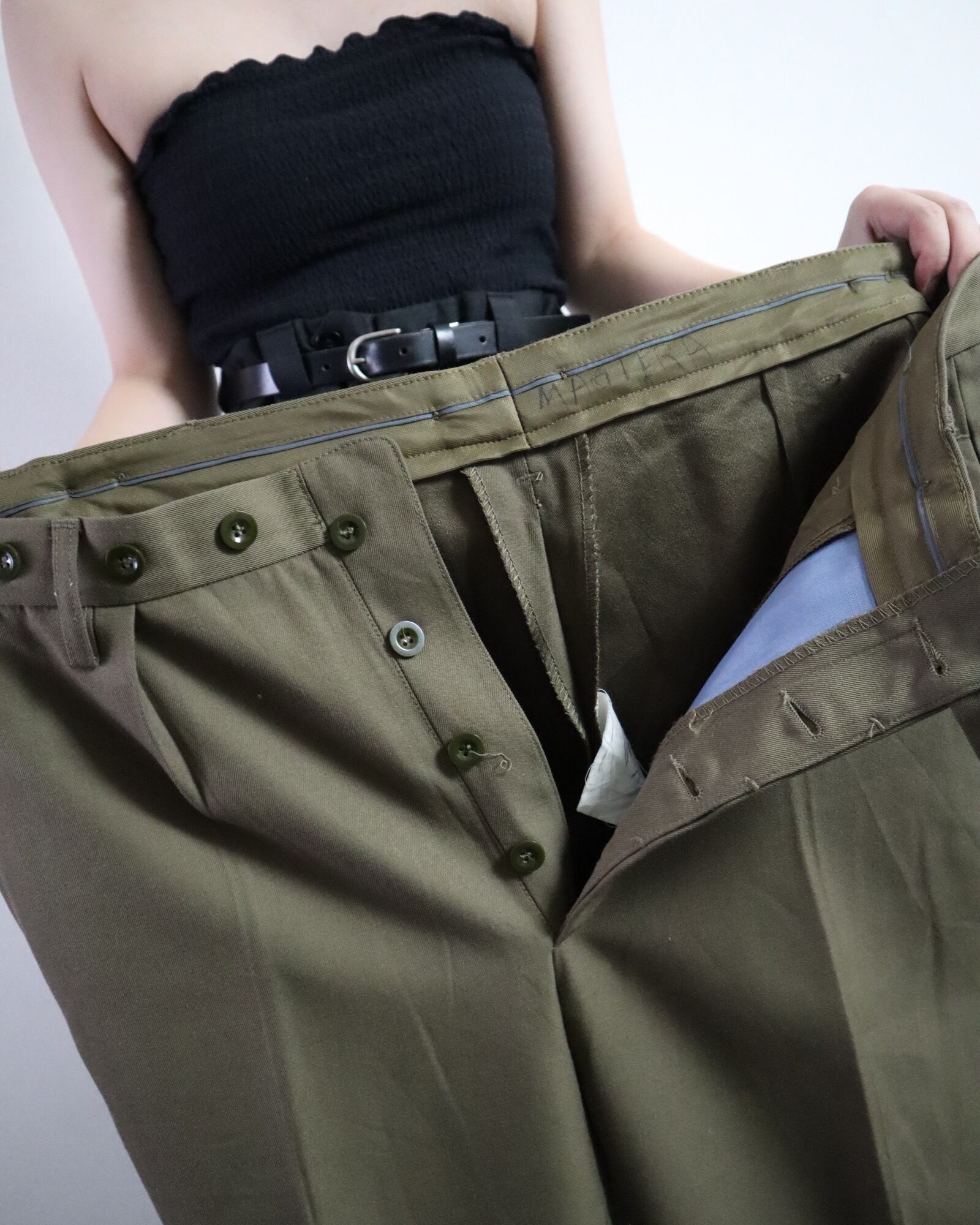 ▽Detail / 1タック、アジャスター、サスペンダーボタン、フラップポケット、ボタンフライ