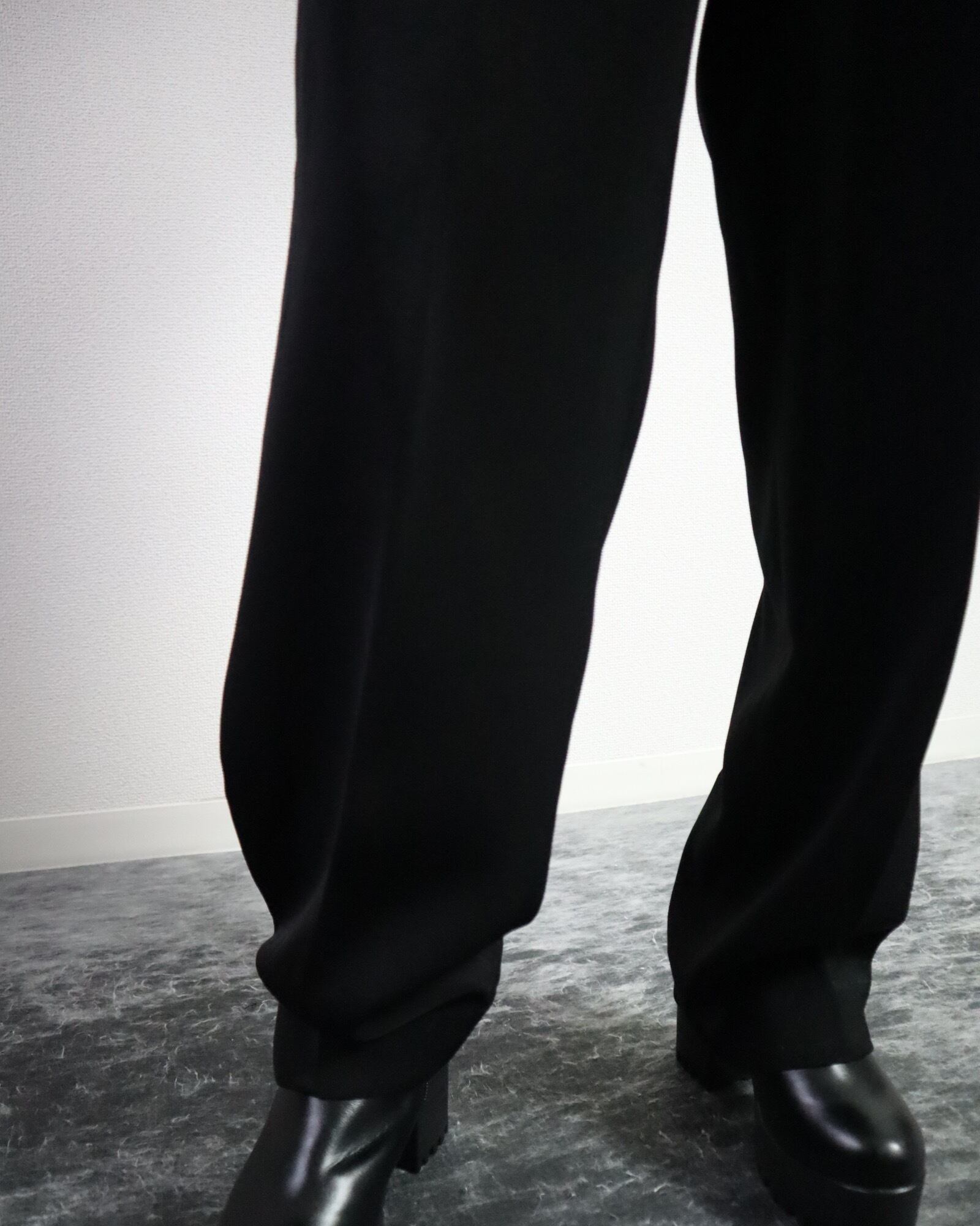 ▼Item / velour like satin toromi 2tuck wide slacks black