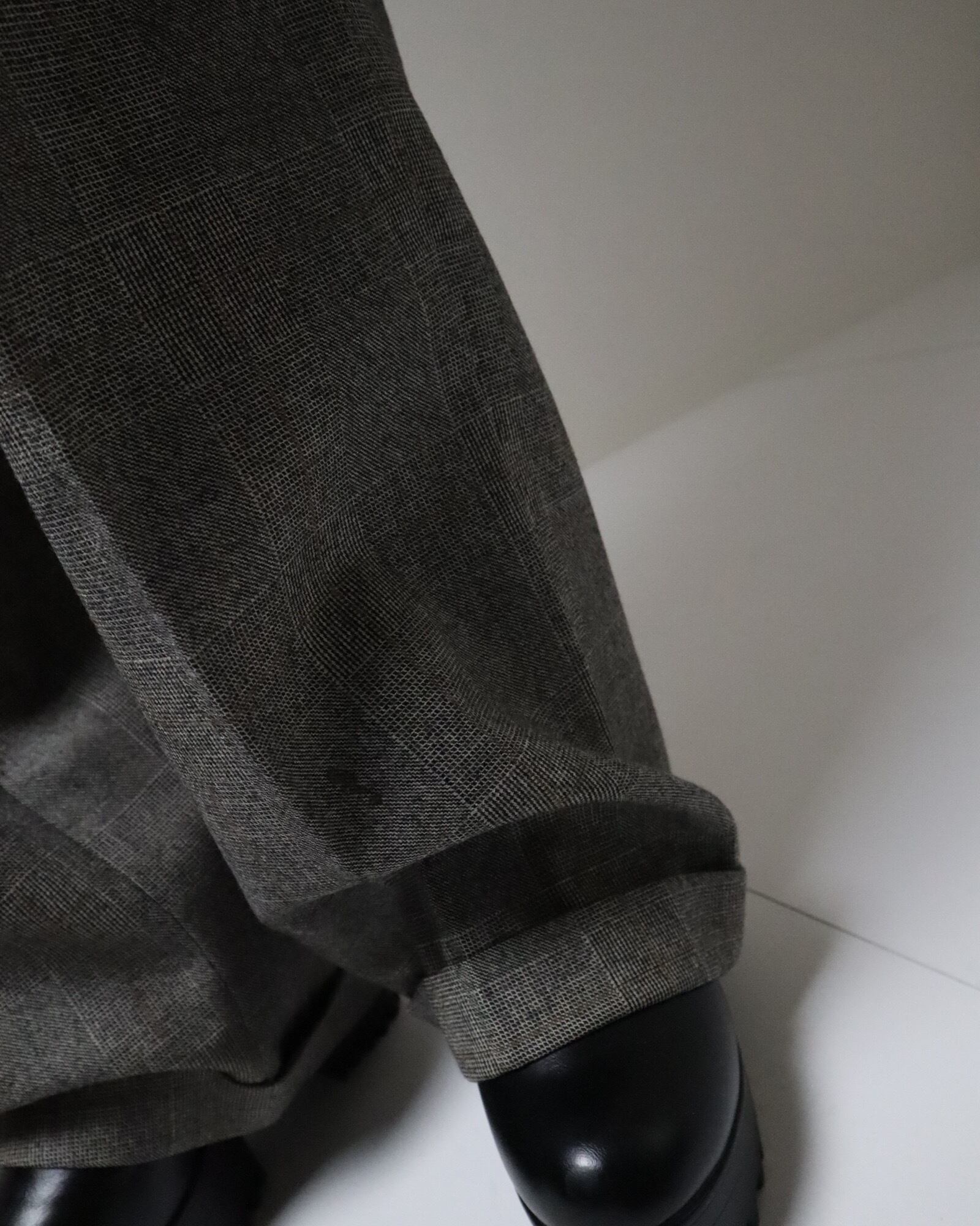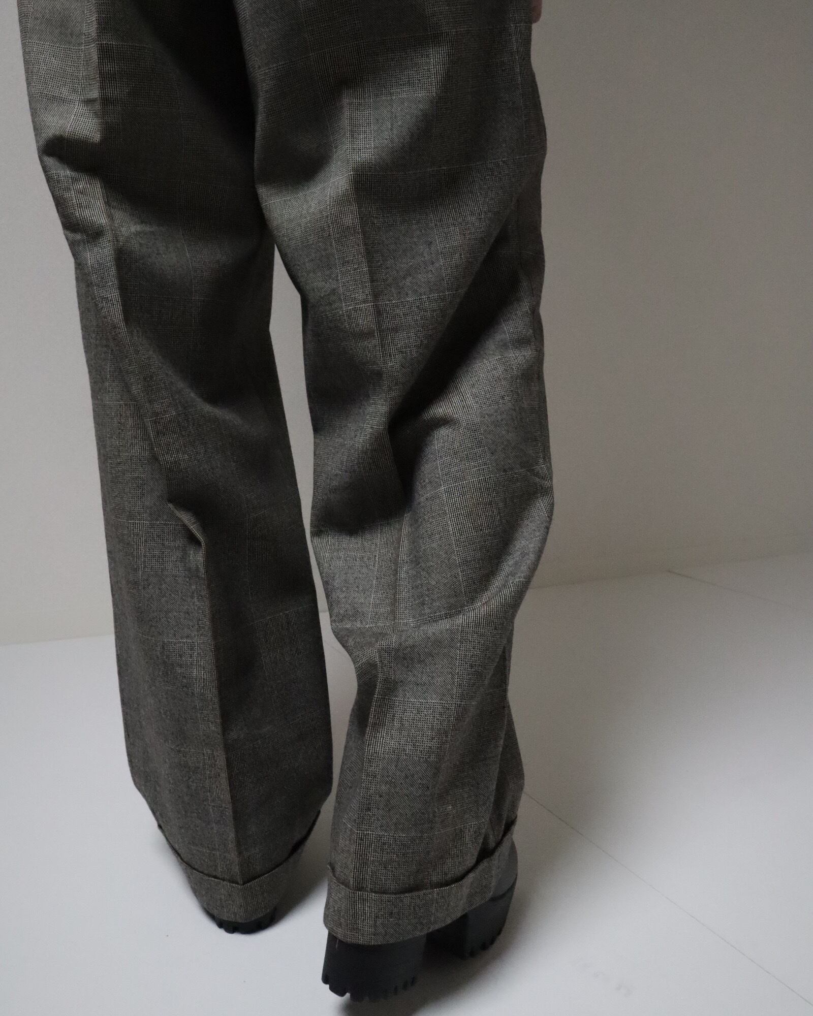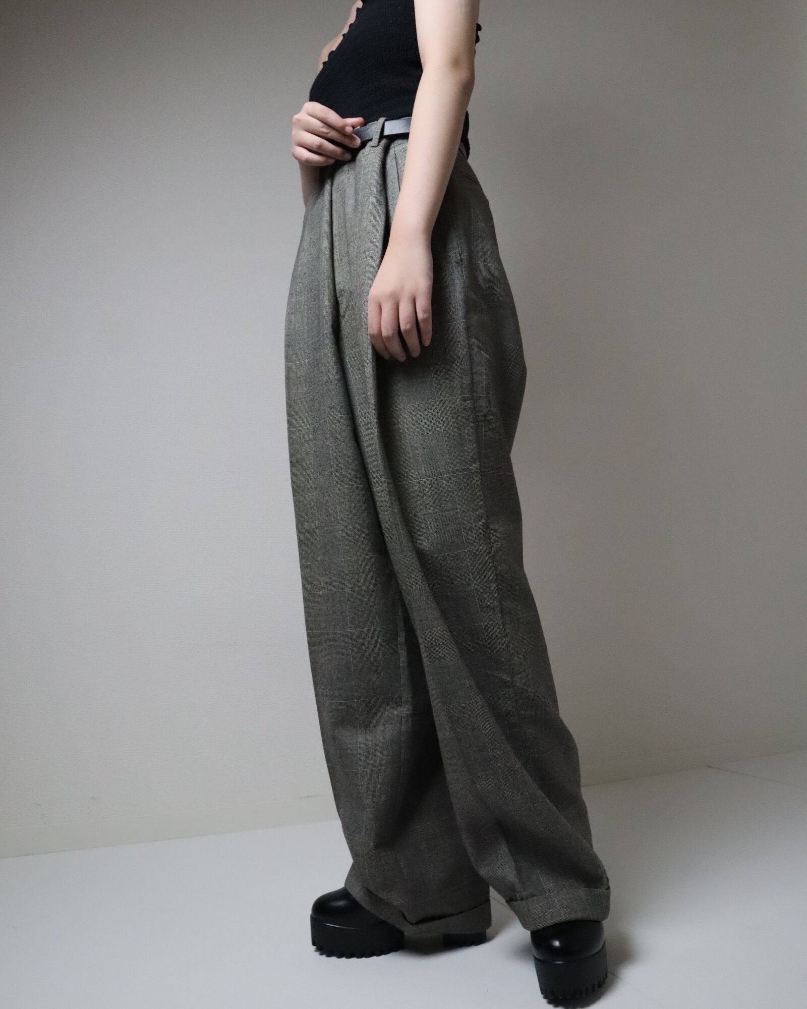 ▼Item / 1980s glen check 2tuck wide slacks gray