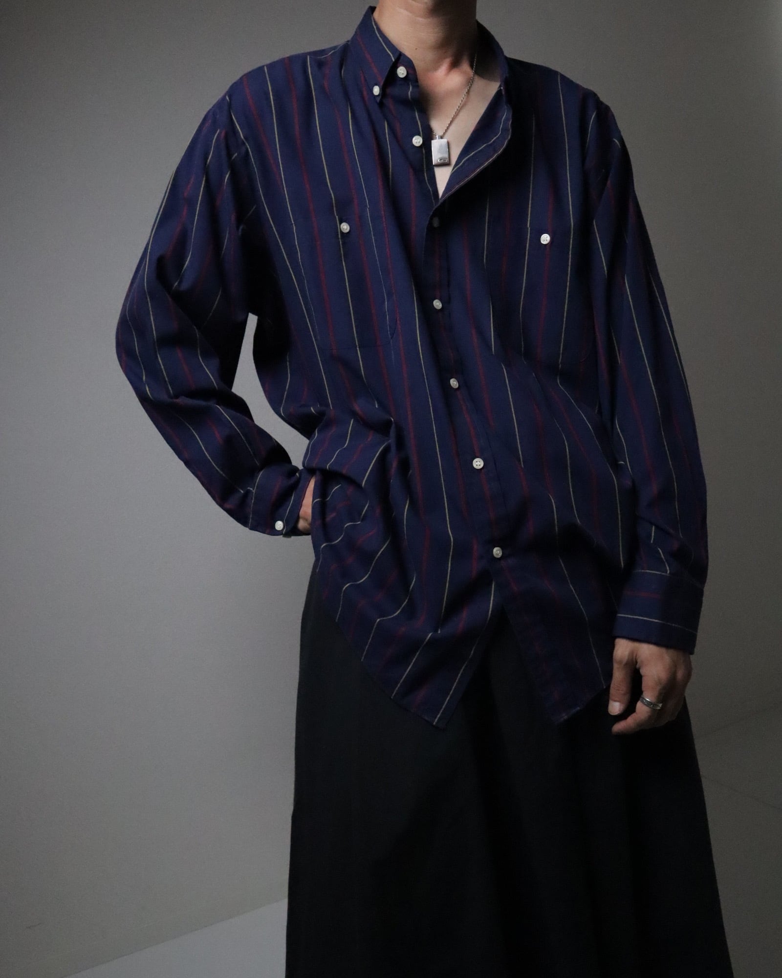 ▼Item / multi color pencil stripe button-down oversized L/S shirt
