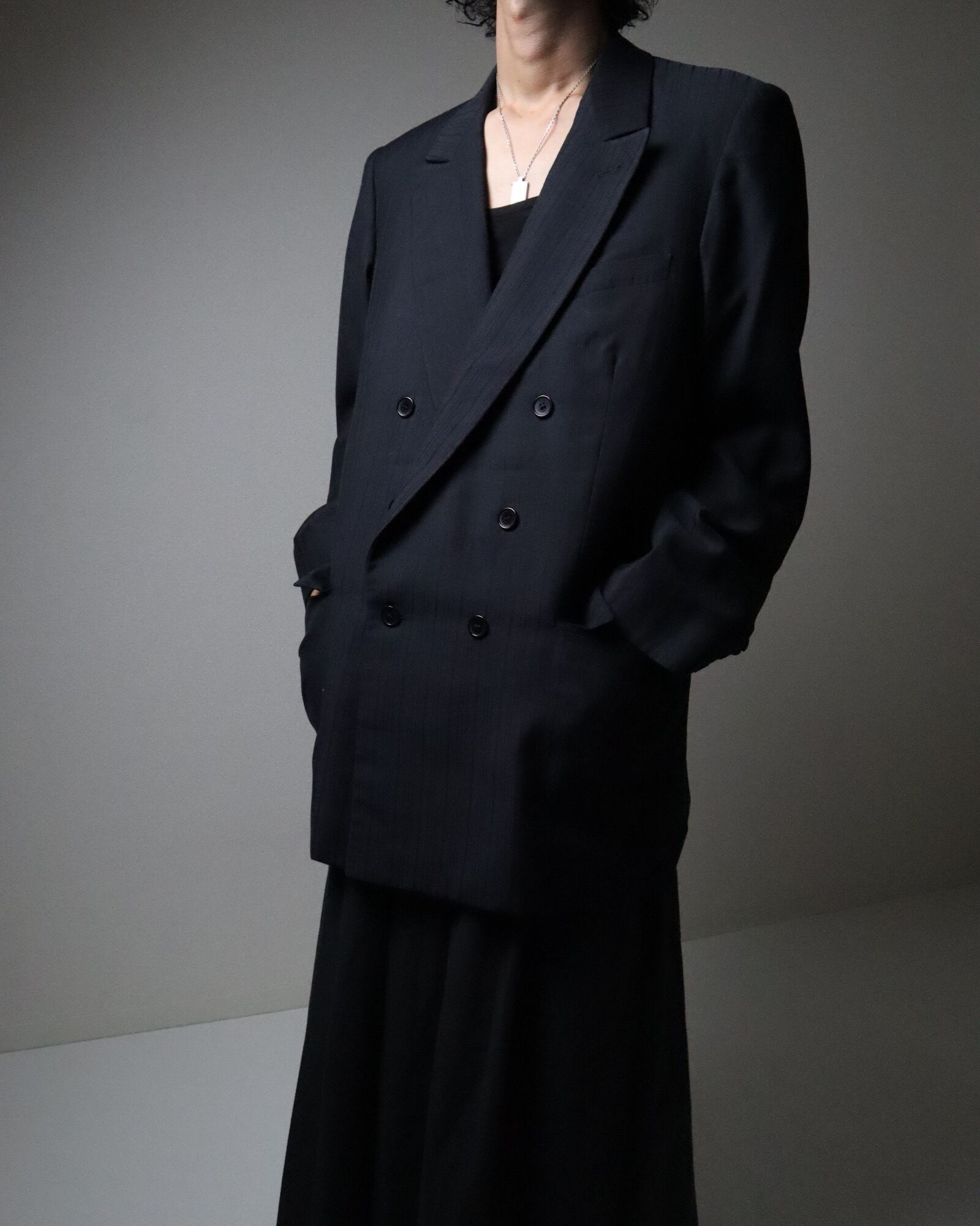 ▼Item / shadow stripe double breasted tailored jacket blue black