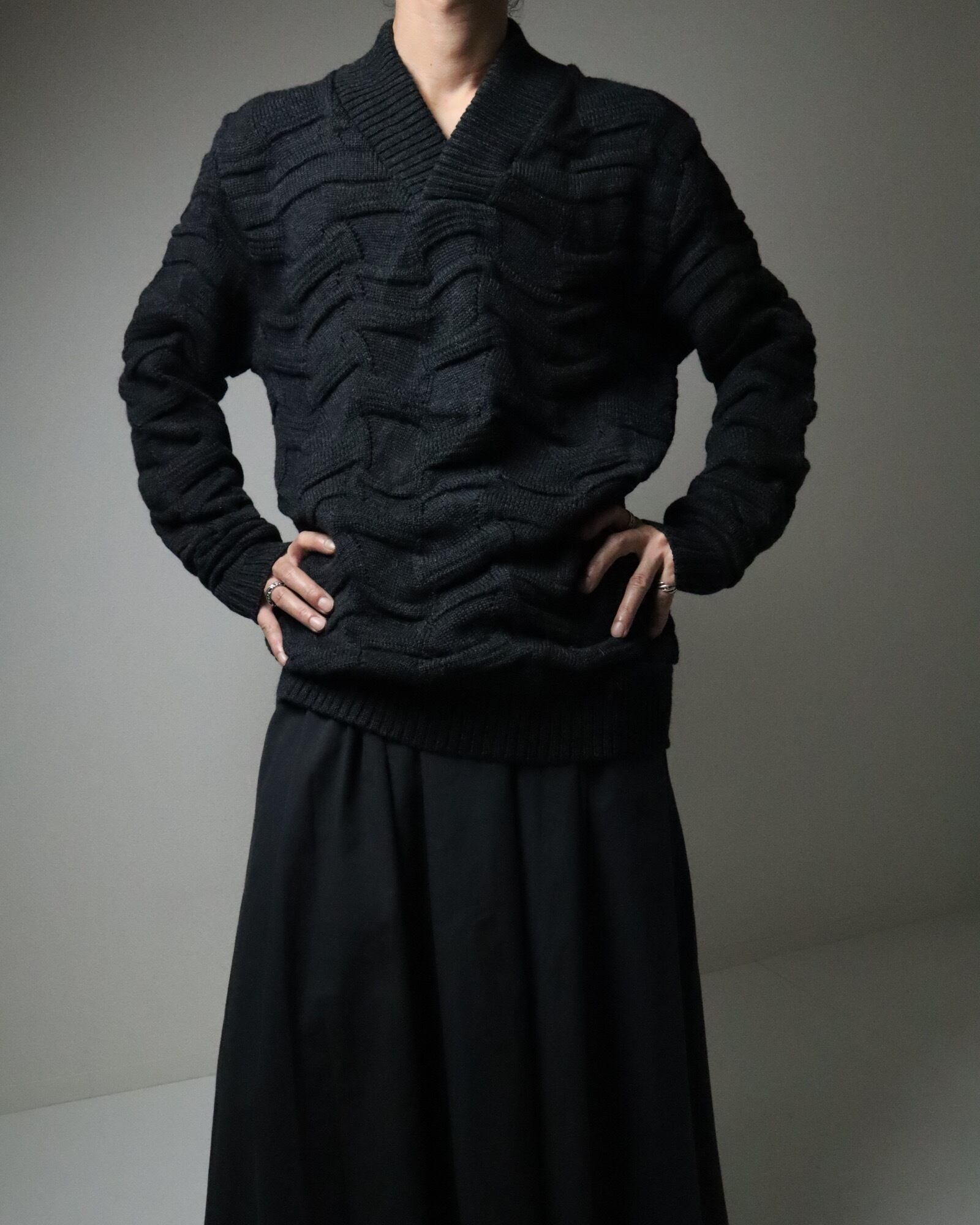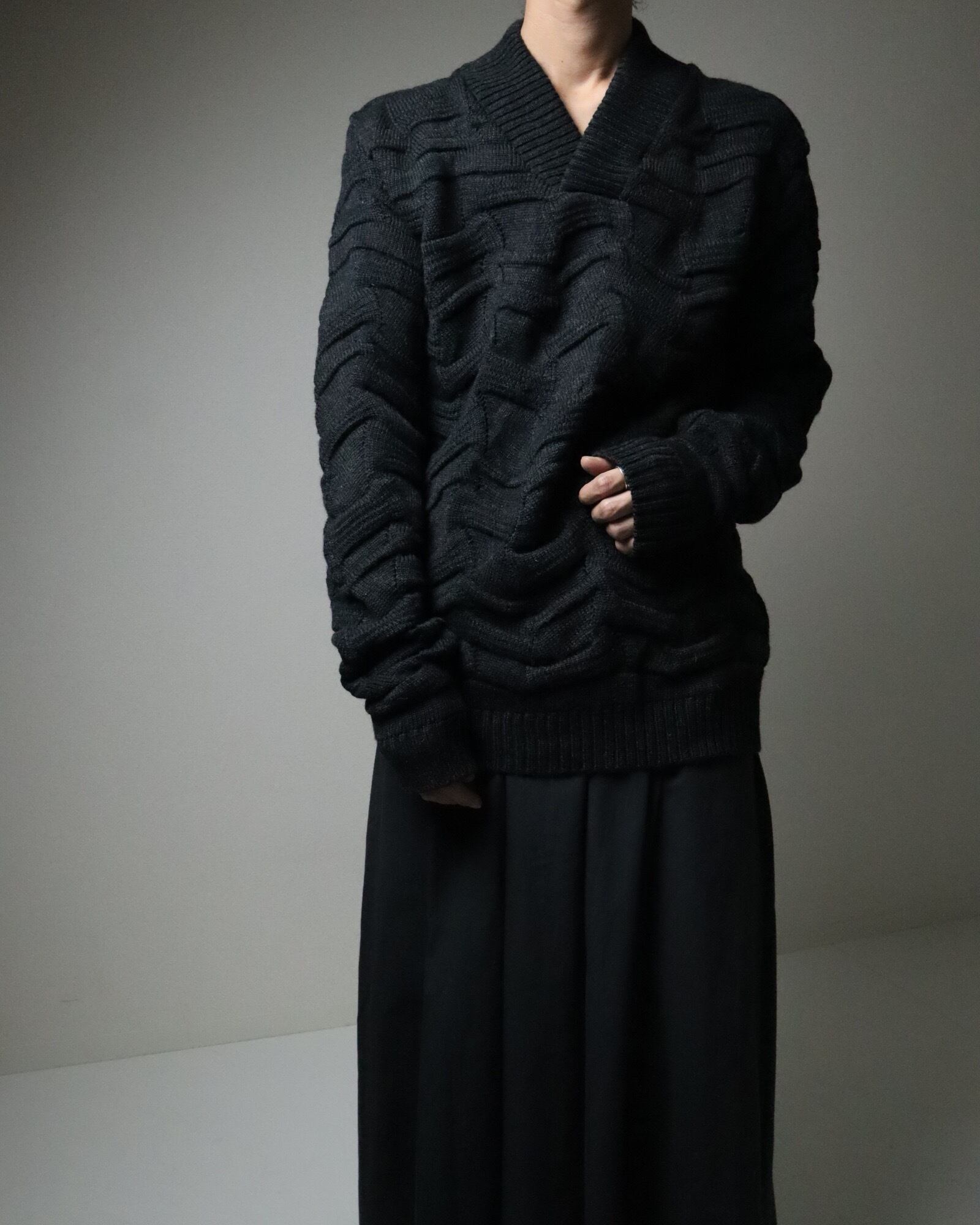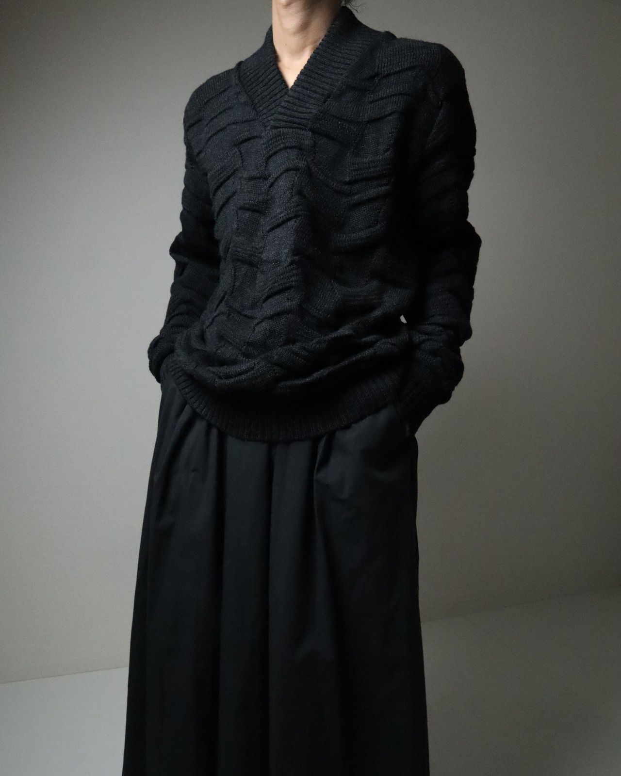▽Detail / Vネック、ユニークケーブル編み、袖・裾リブ