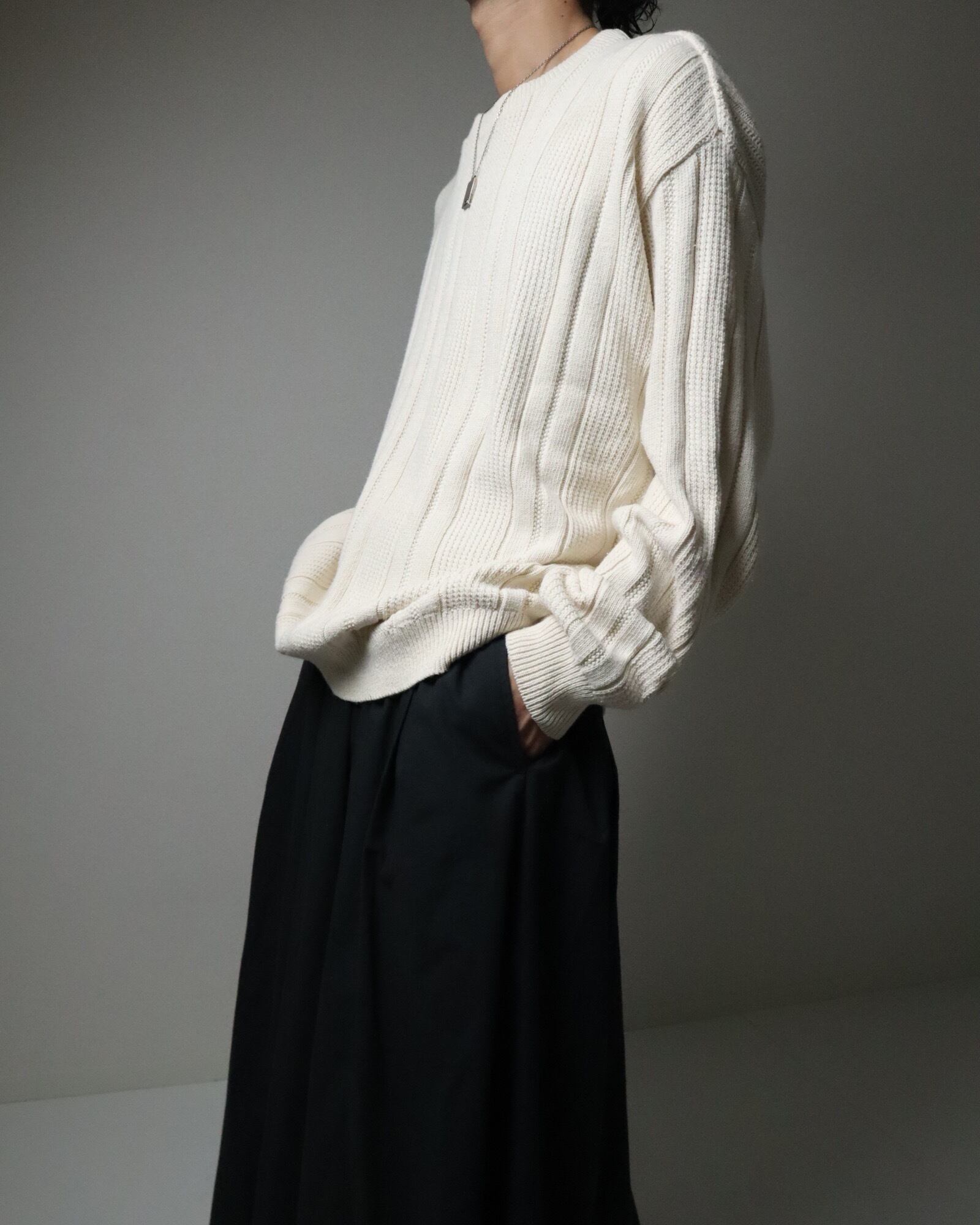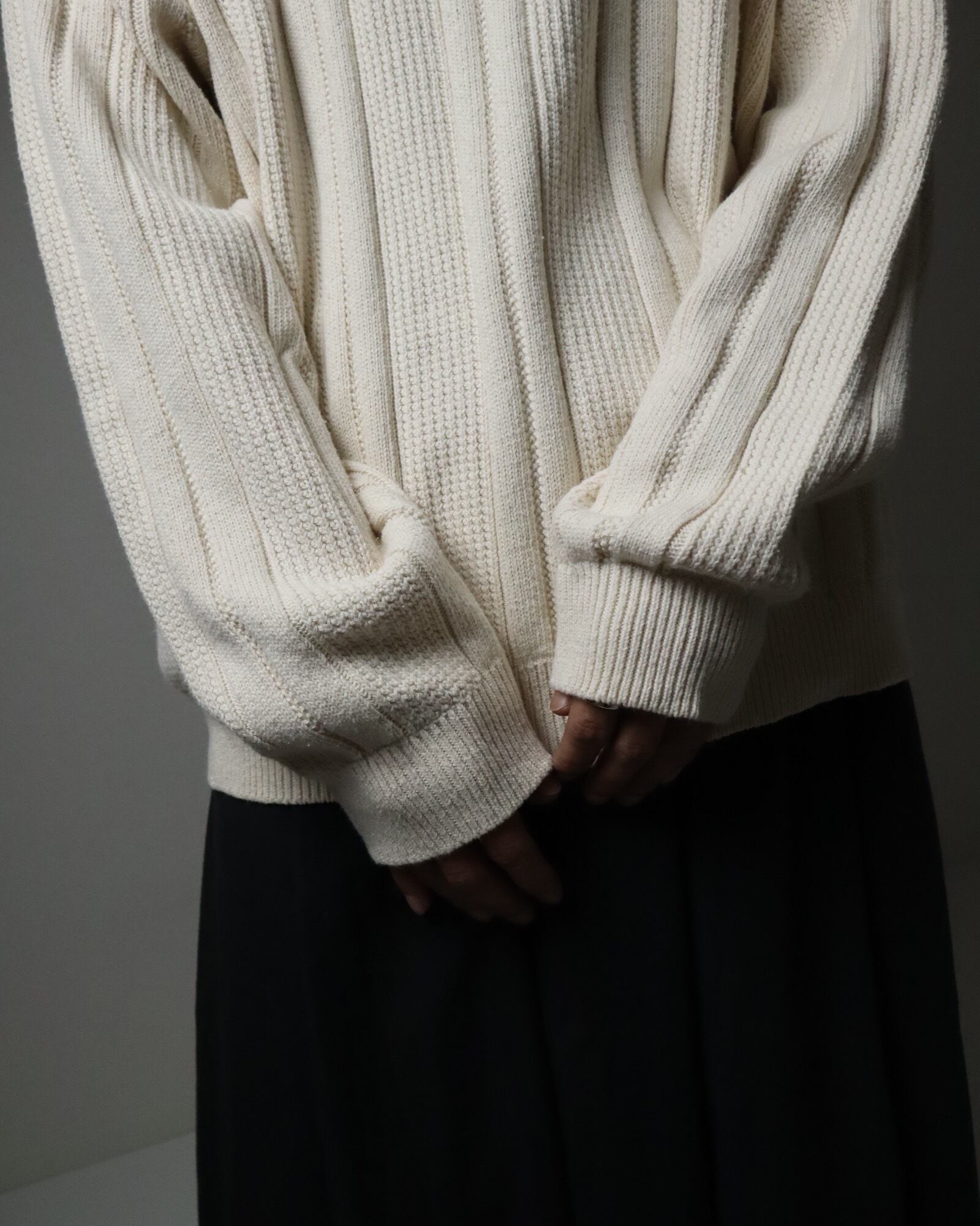 ▼Item / oversized chunky wide rib cotton knit sweater écru
