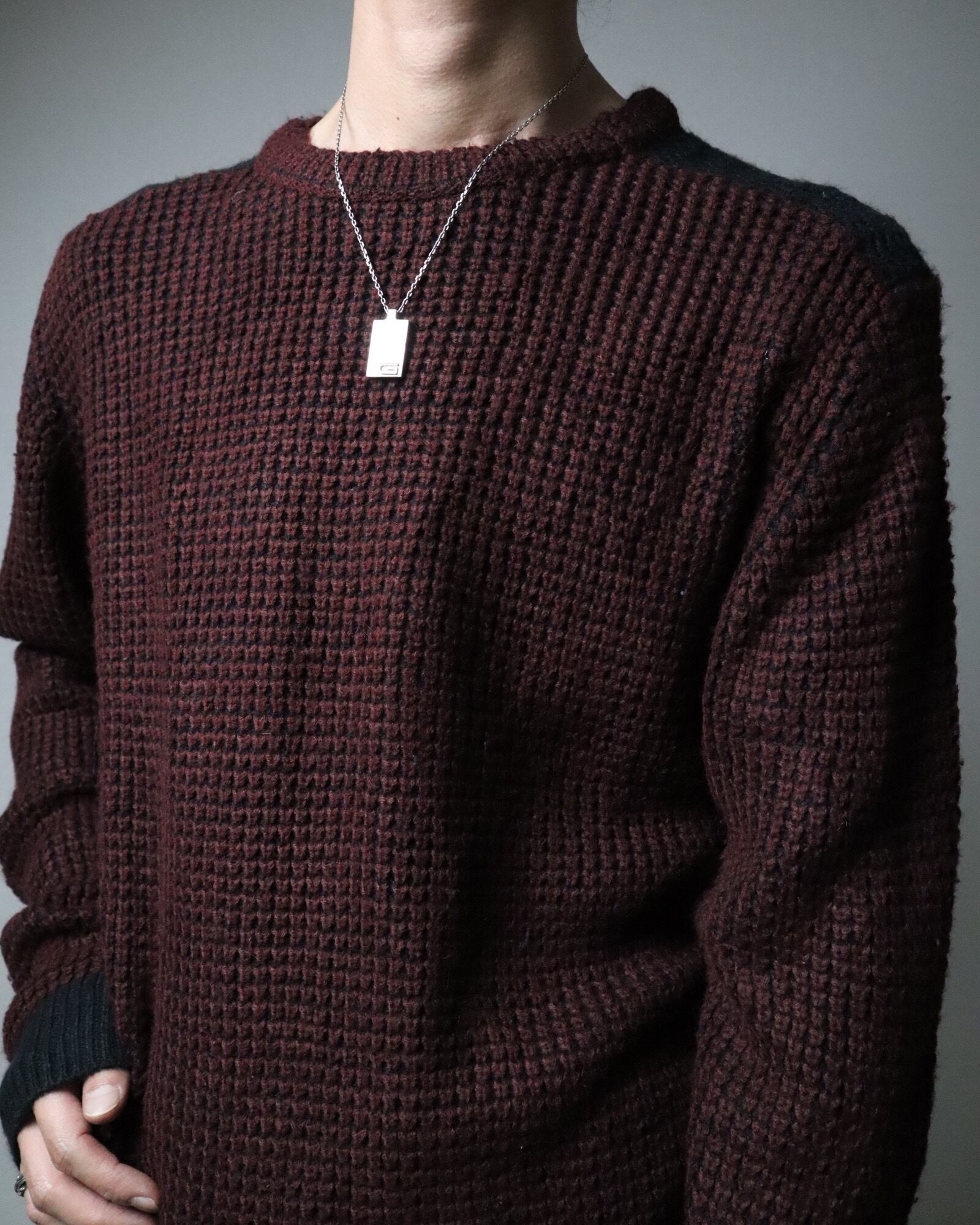 ▼Item / bicolor waffle knit sweater bordeaux × black