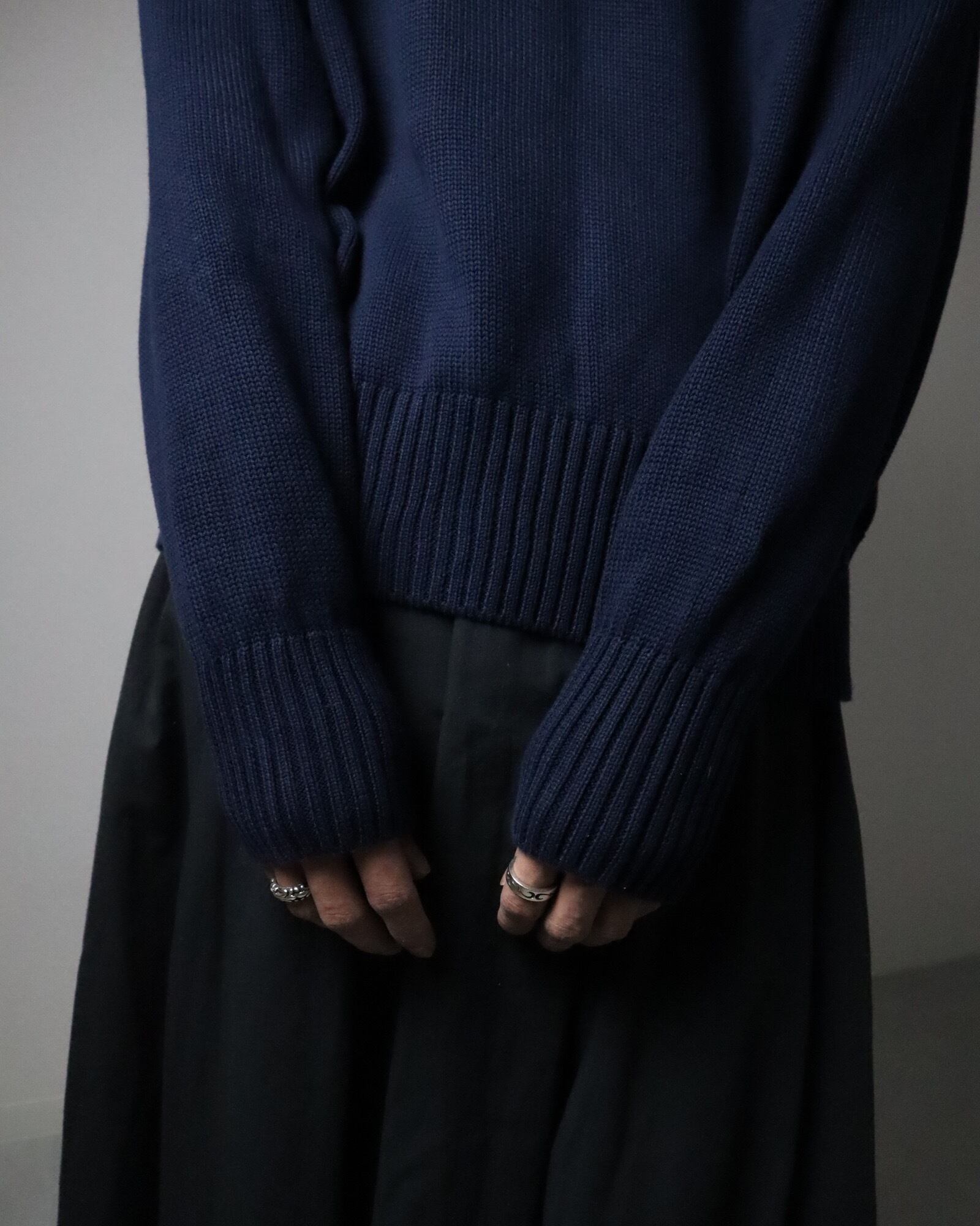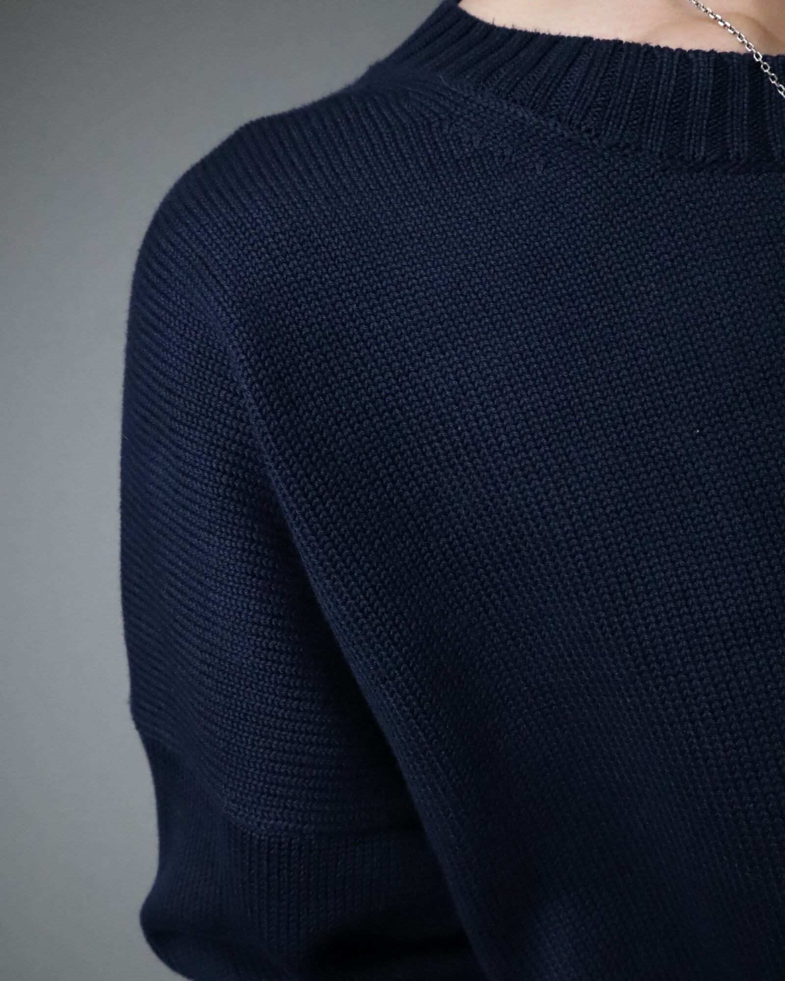 ▼Item / box silhouette cotton knit sweater navy
