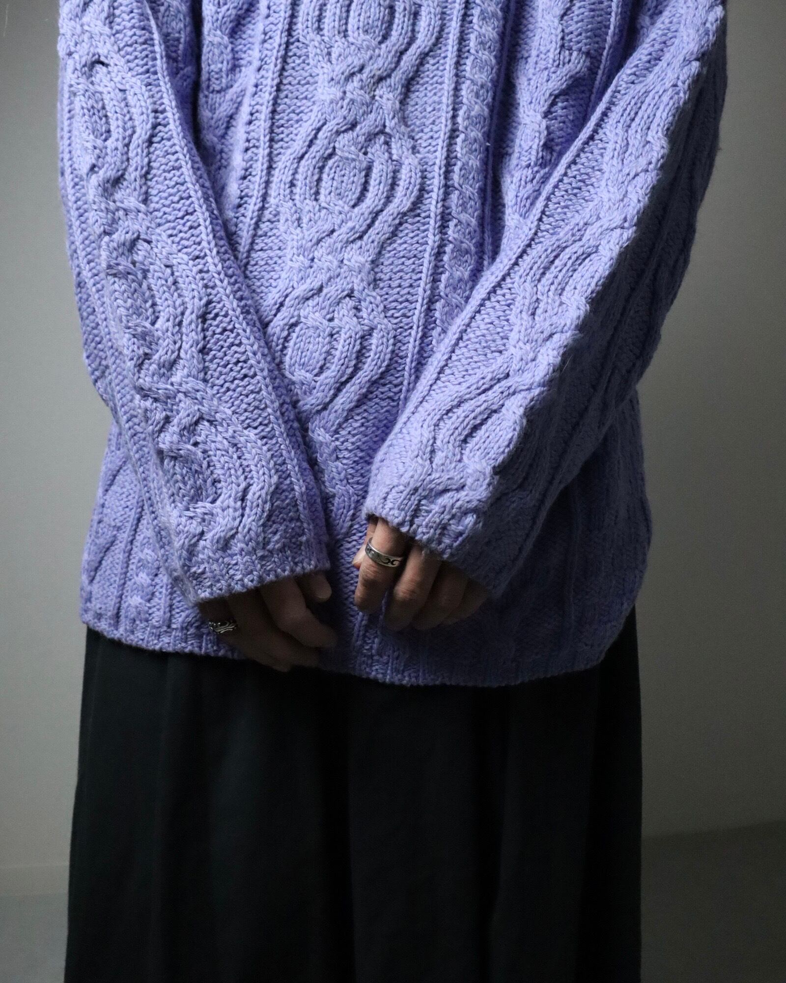 ▼Item / Ireland made merino wool fisherman aran knit sweater blue lavender