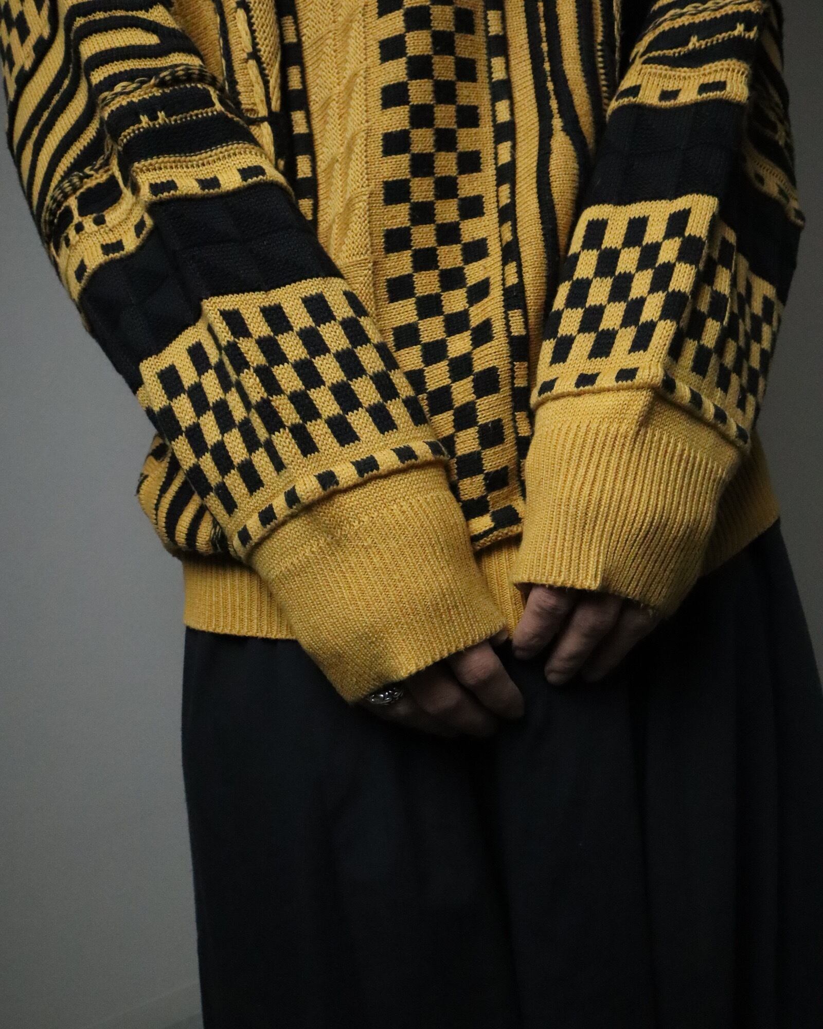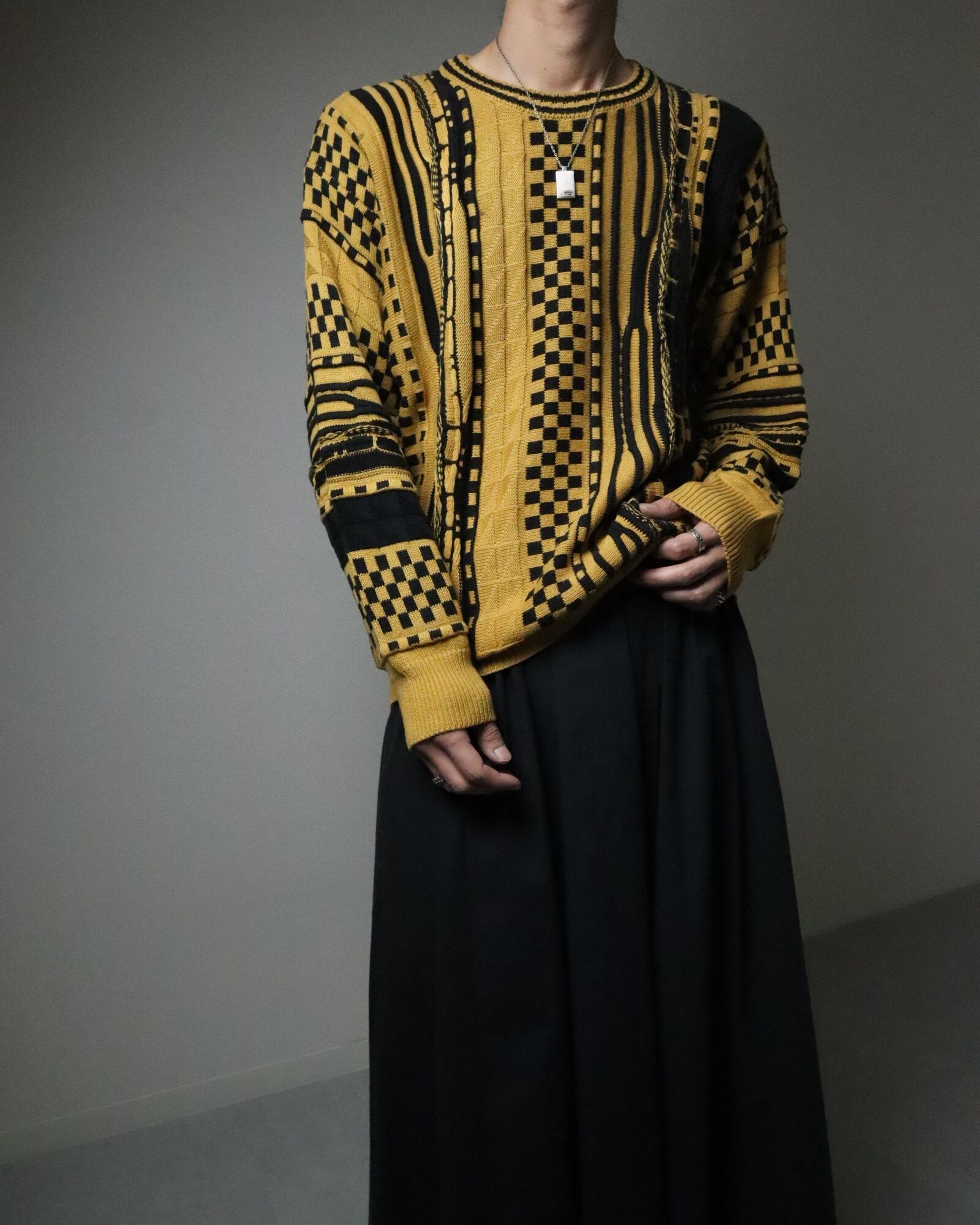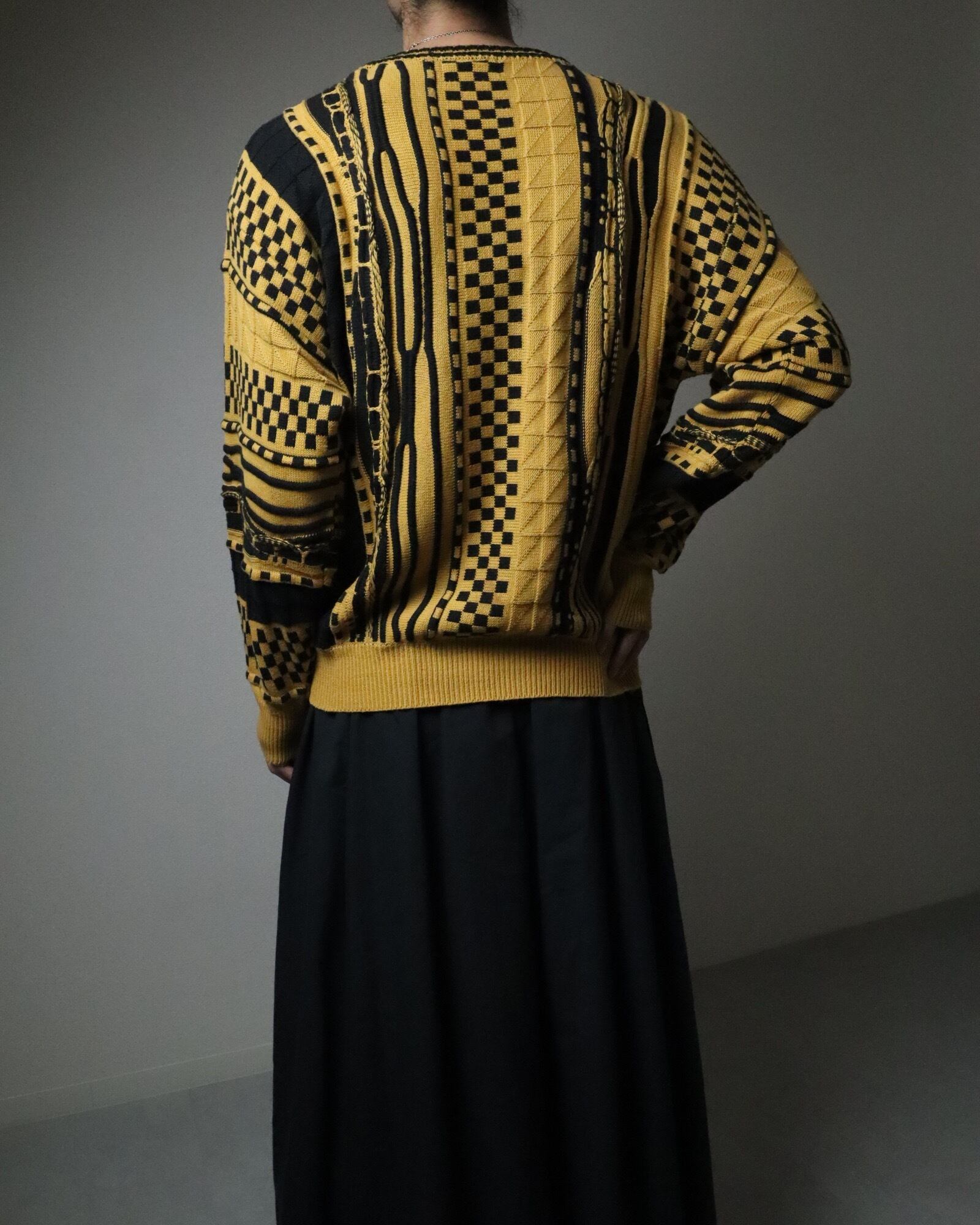 ▼Item / atomic jacquard bicolor 3D knit sweater