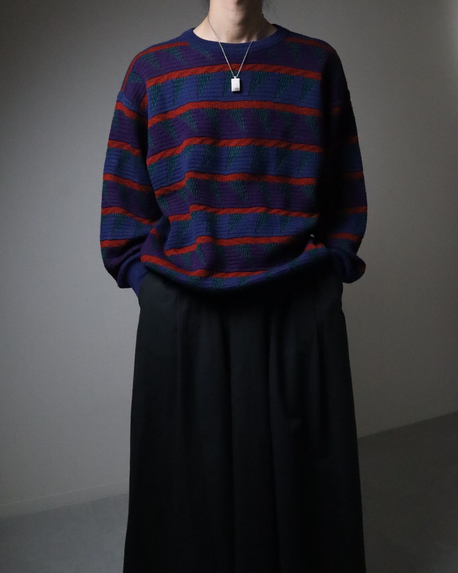 ▼Item / atomic stripes jacquard multicolored knit sweater