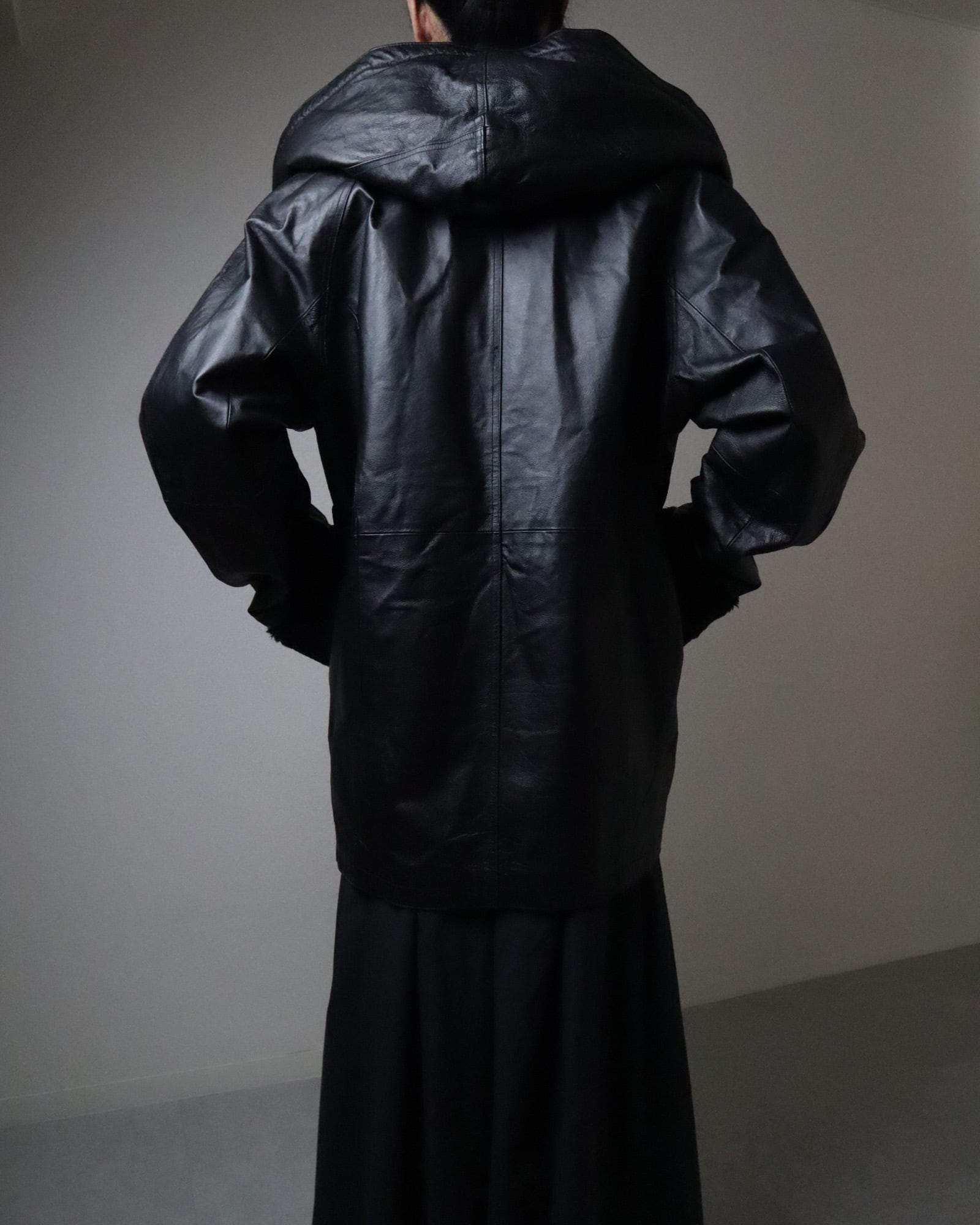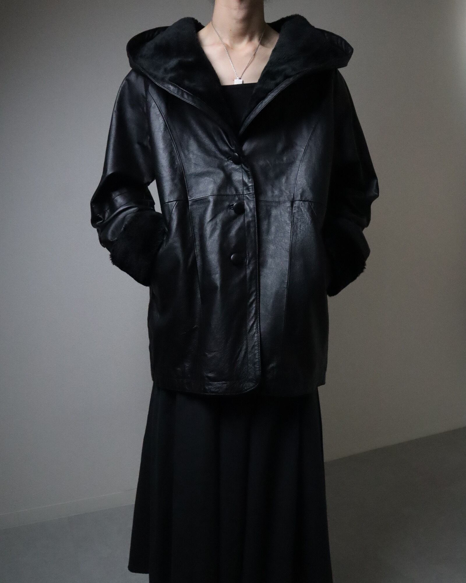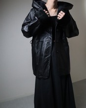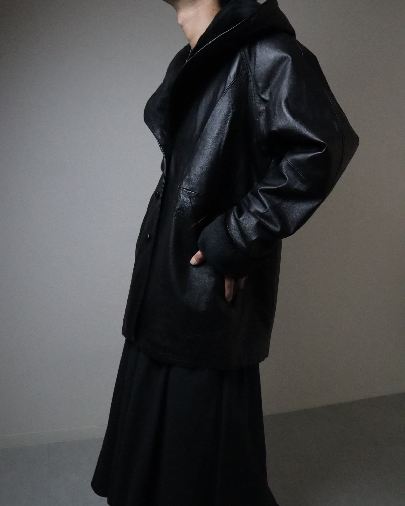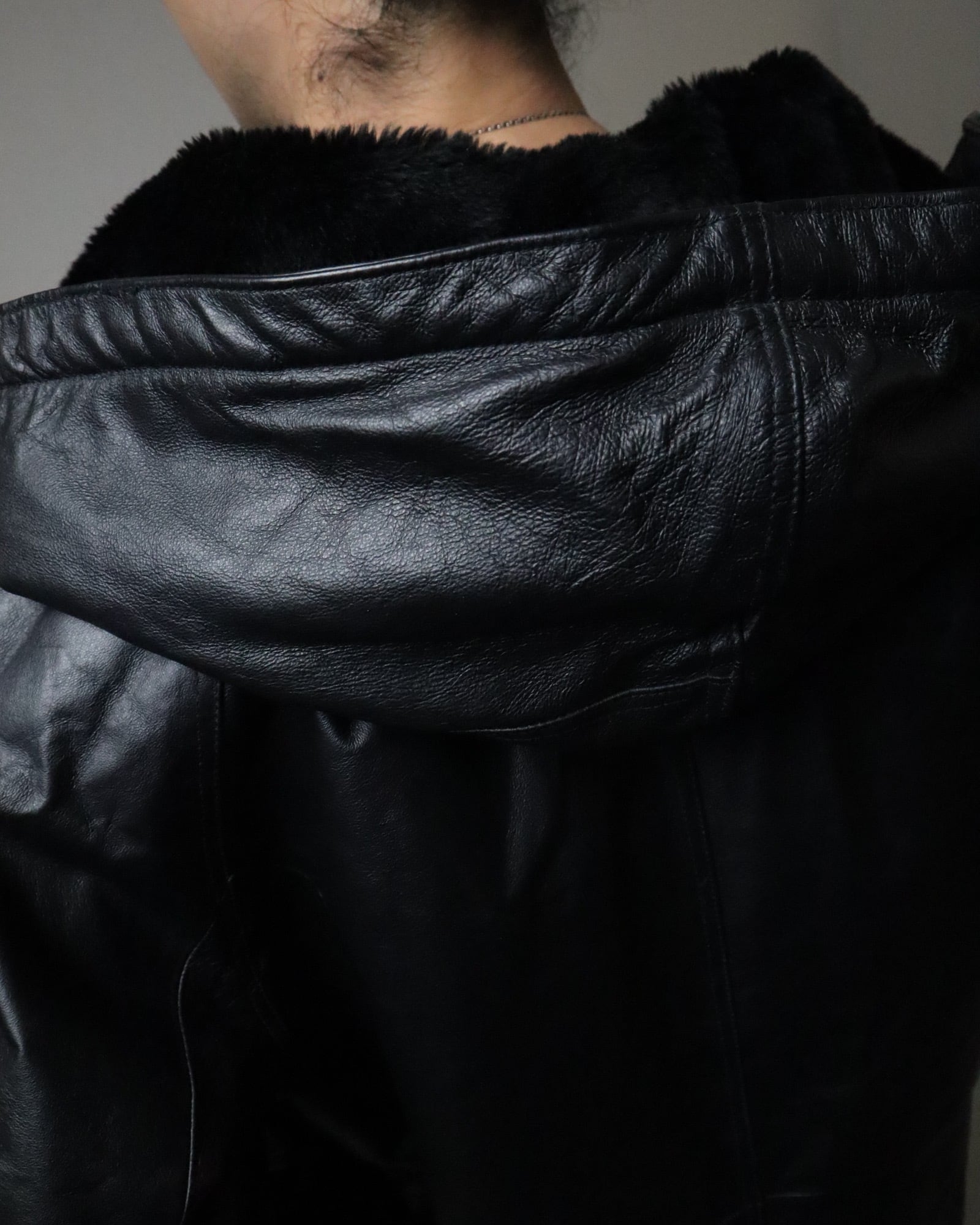 ▼Item / USA made buffalo leather × fur hooded blouson oversized