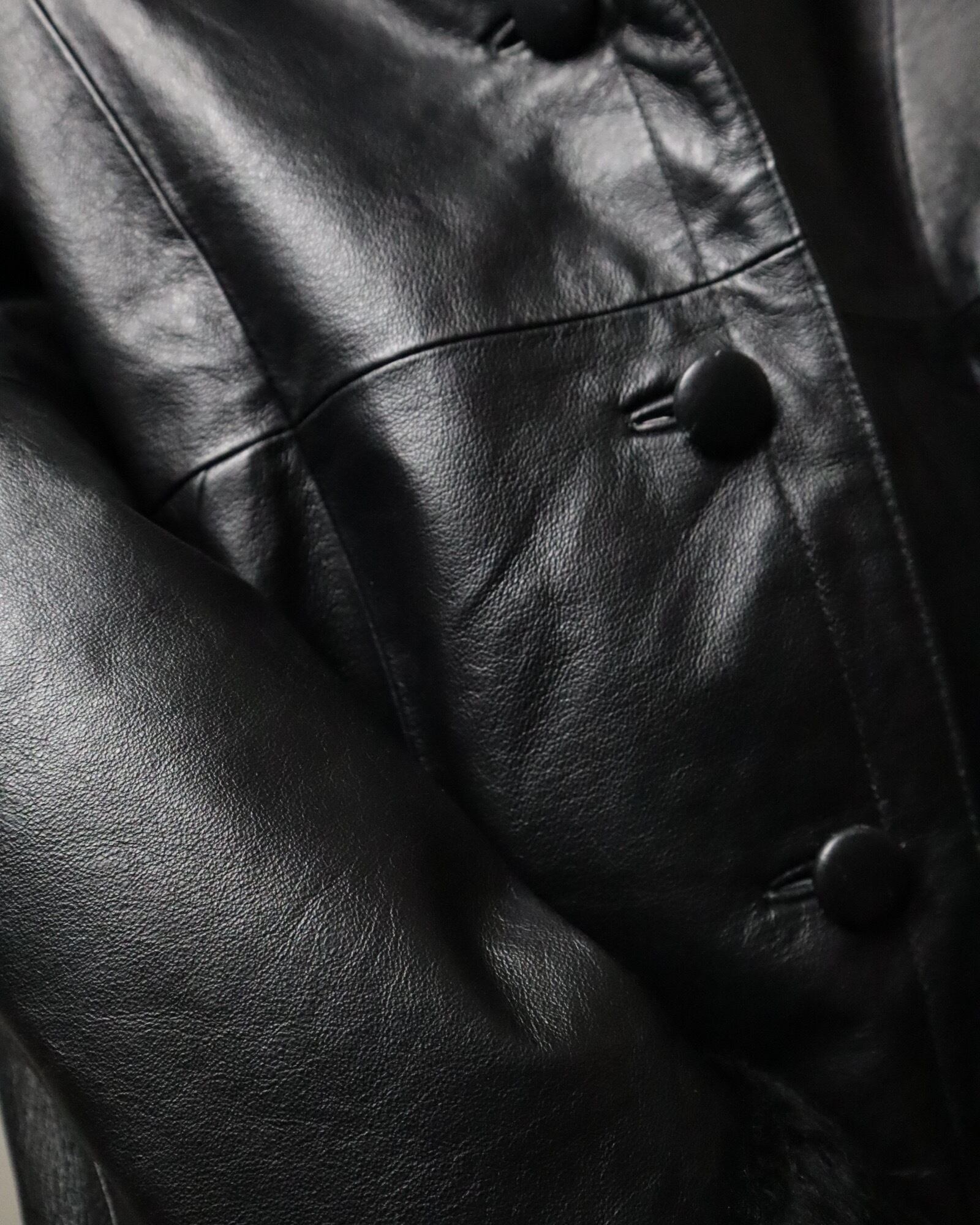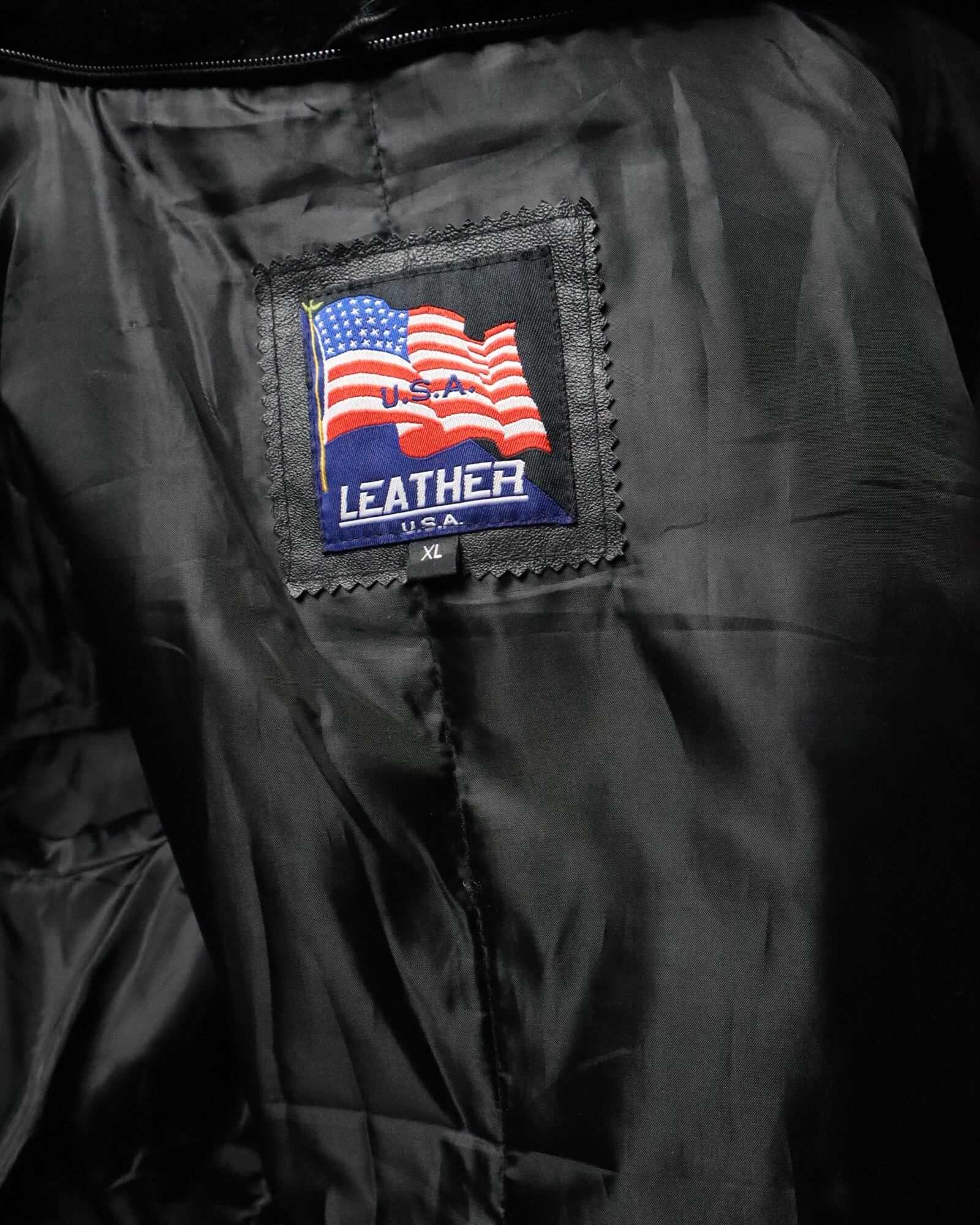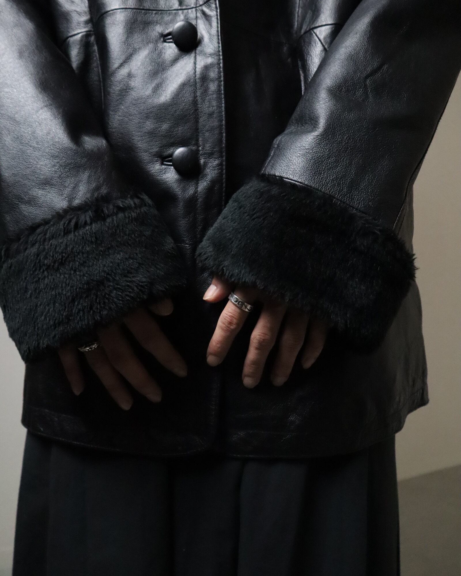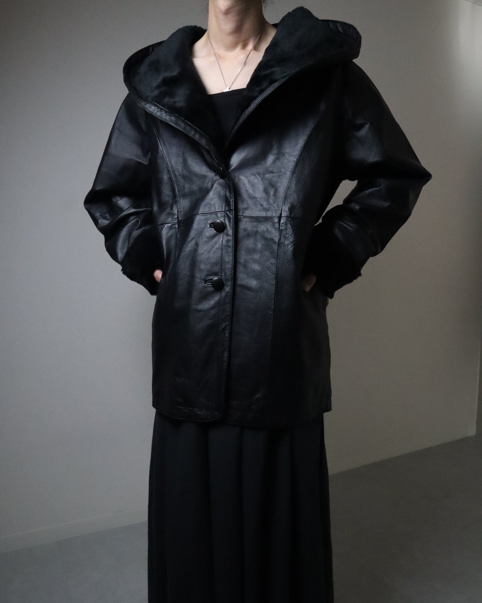 ▼Item / USA made buffalo leather × fur hooded blouson oversized