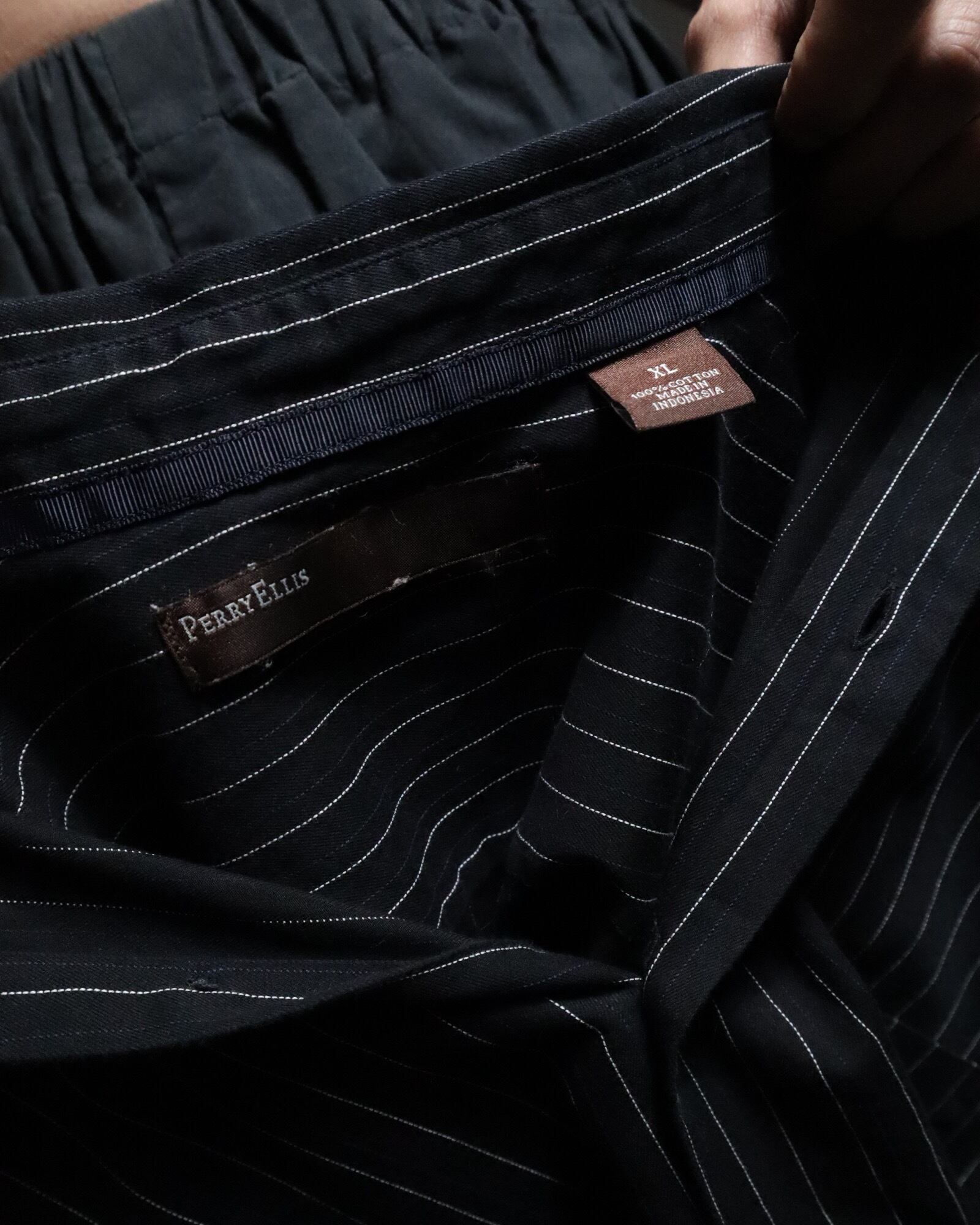 ▼Item / Perry Ellis pinhead stripe oversized l/s shirt black