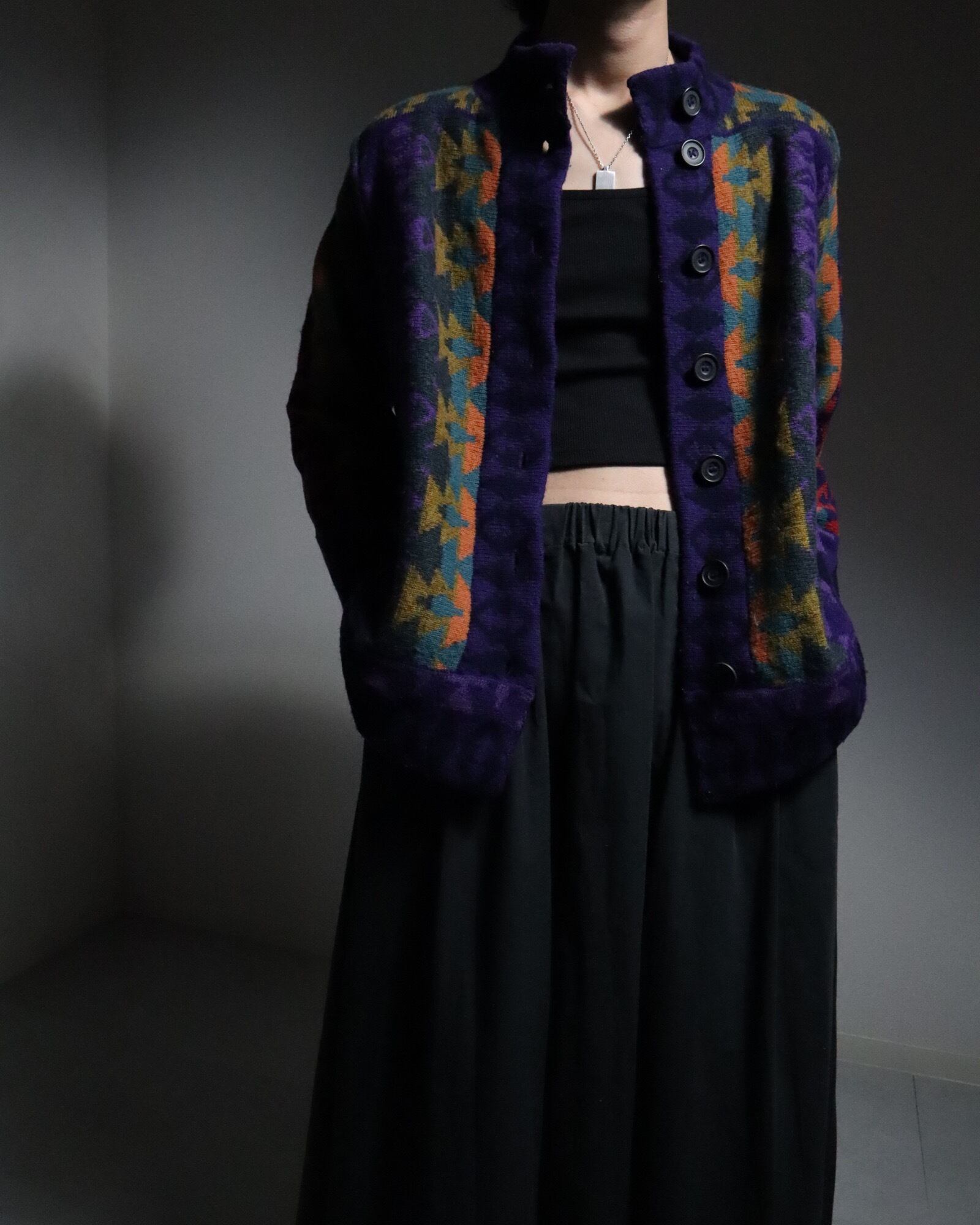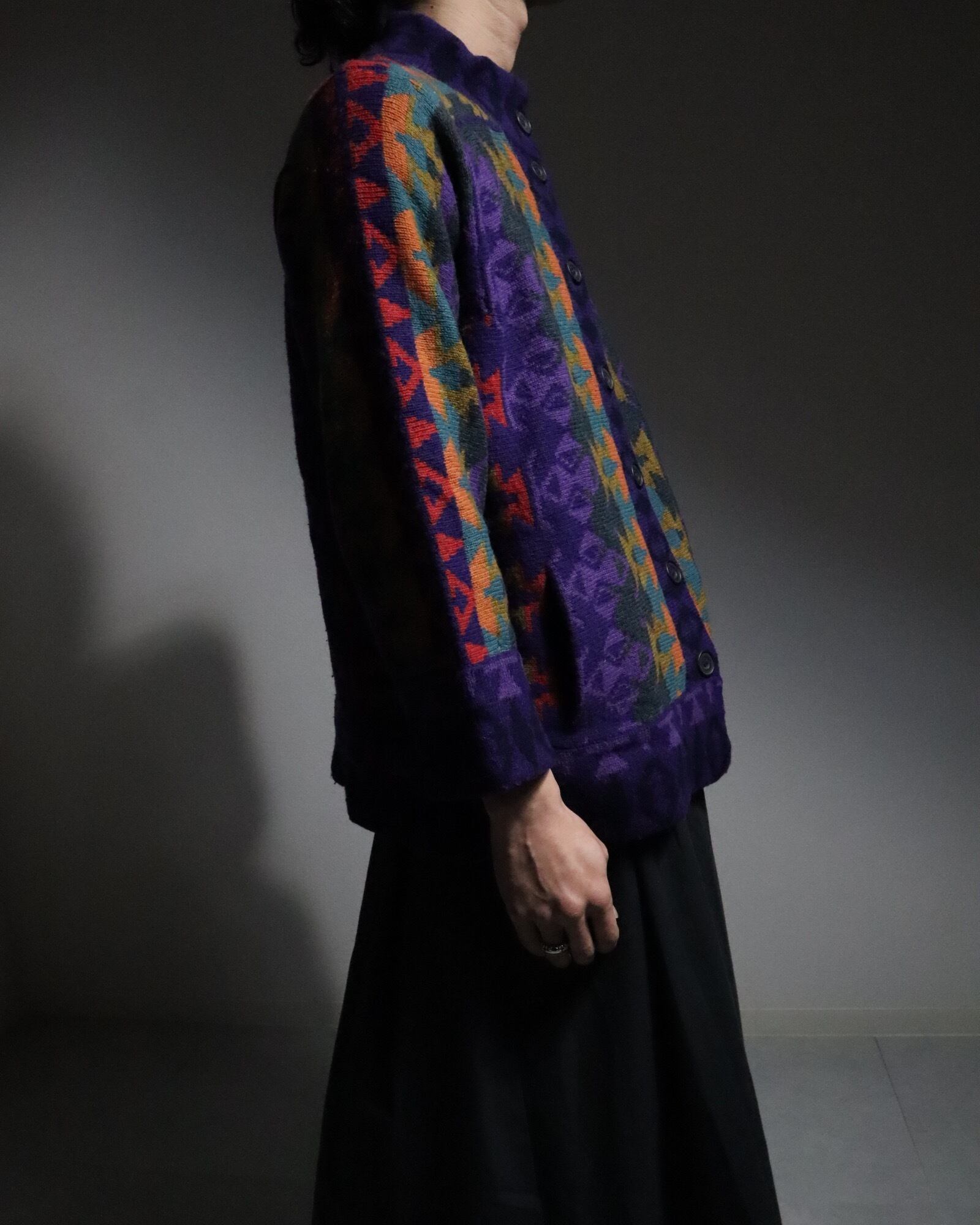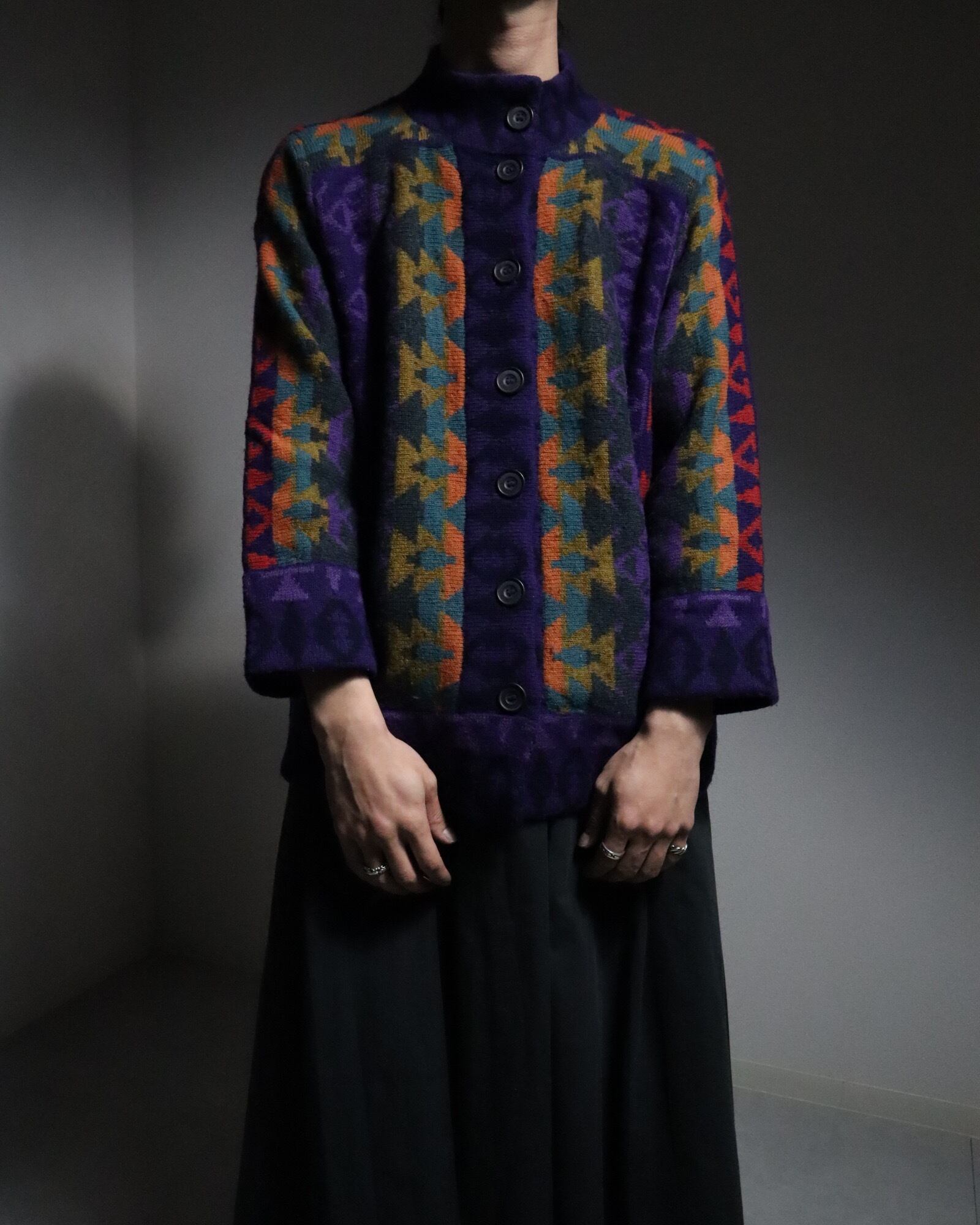 ▼Item / Scotland made atomic high neck knit cardigan virgin wool